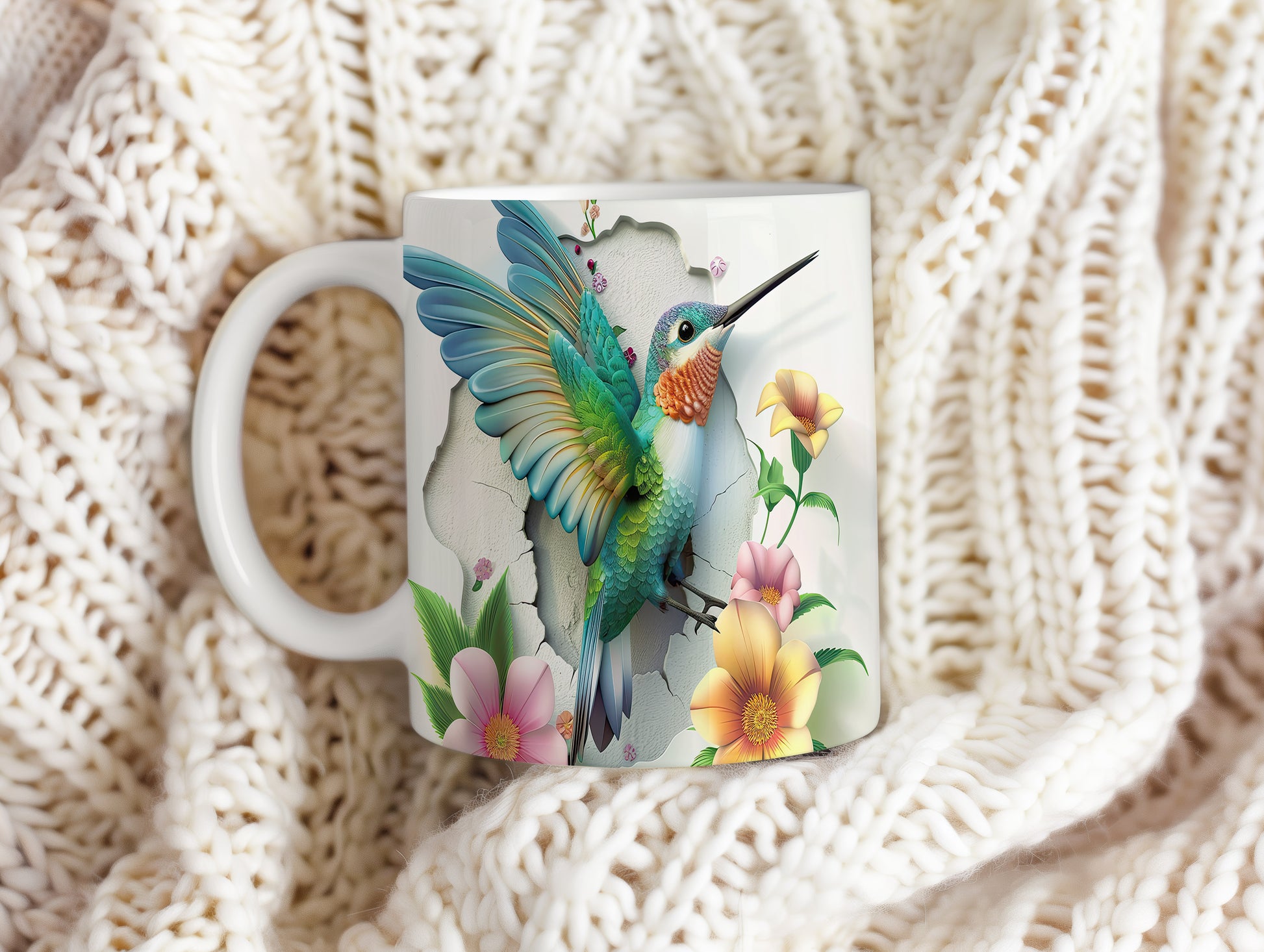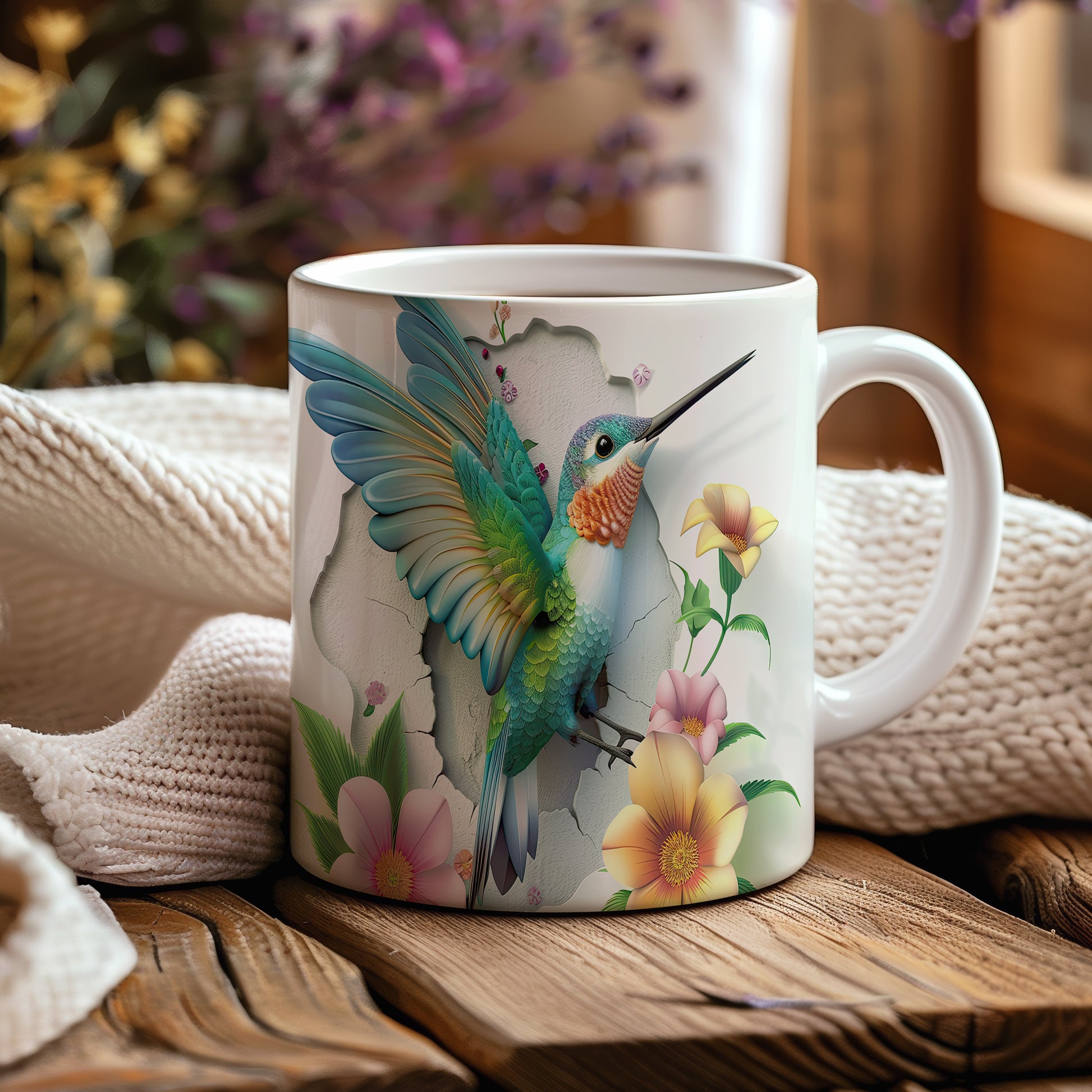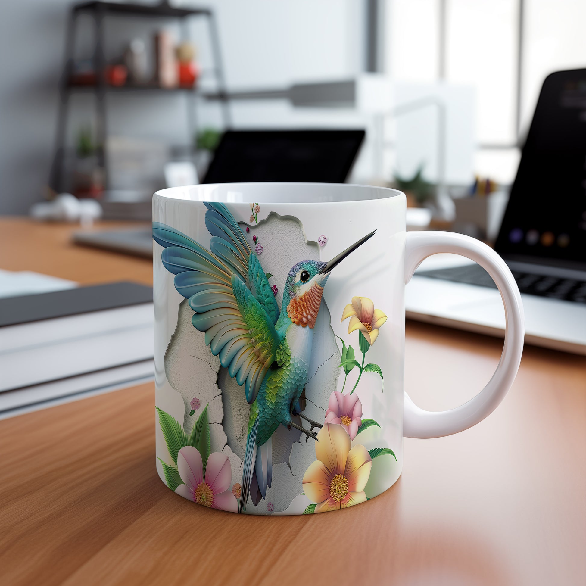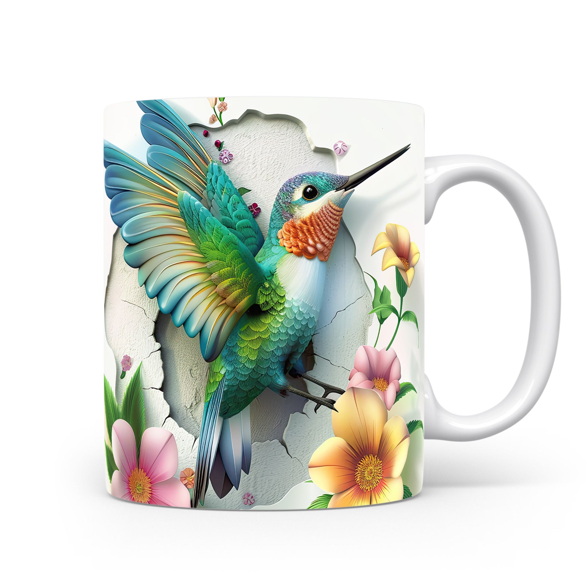 Hrnek s kolibříkem a květinami – kontrastním vzhledem