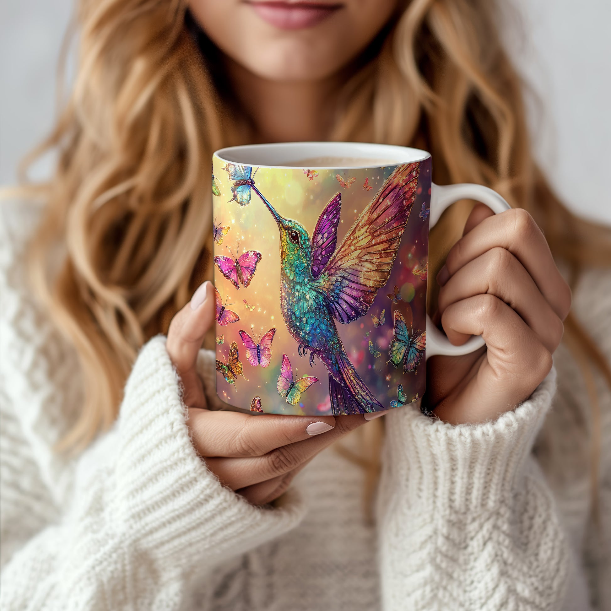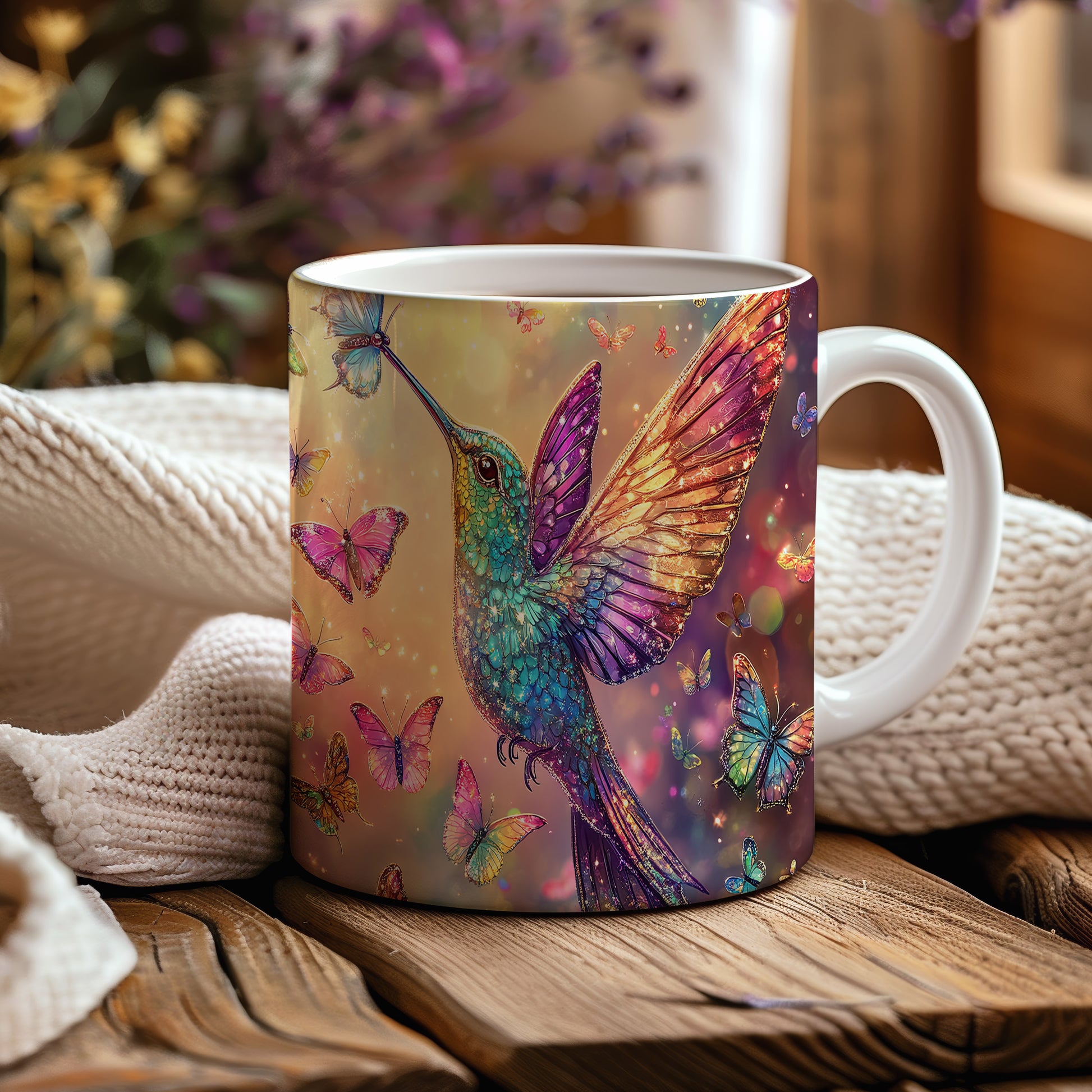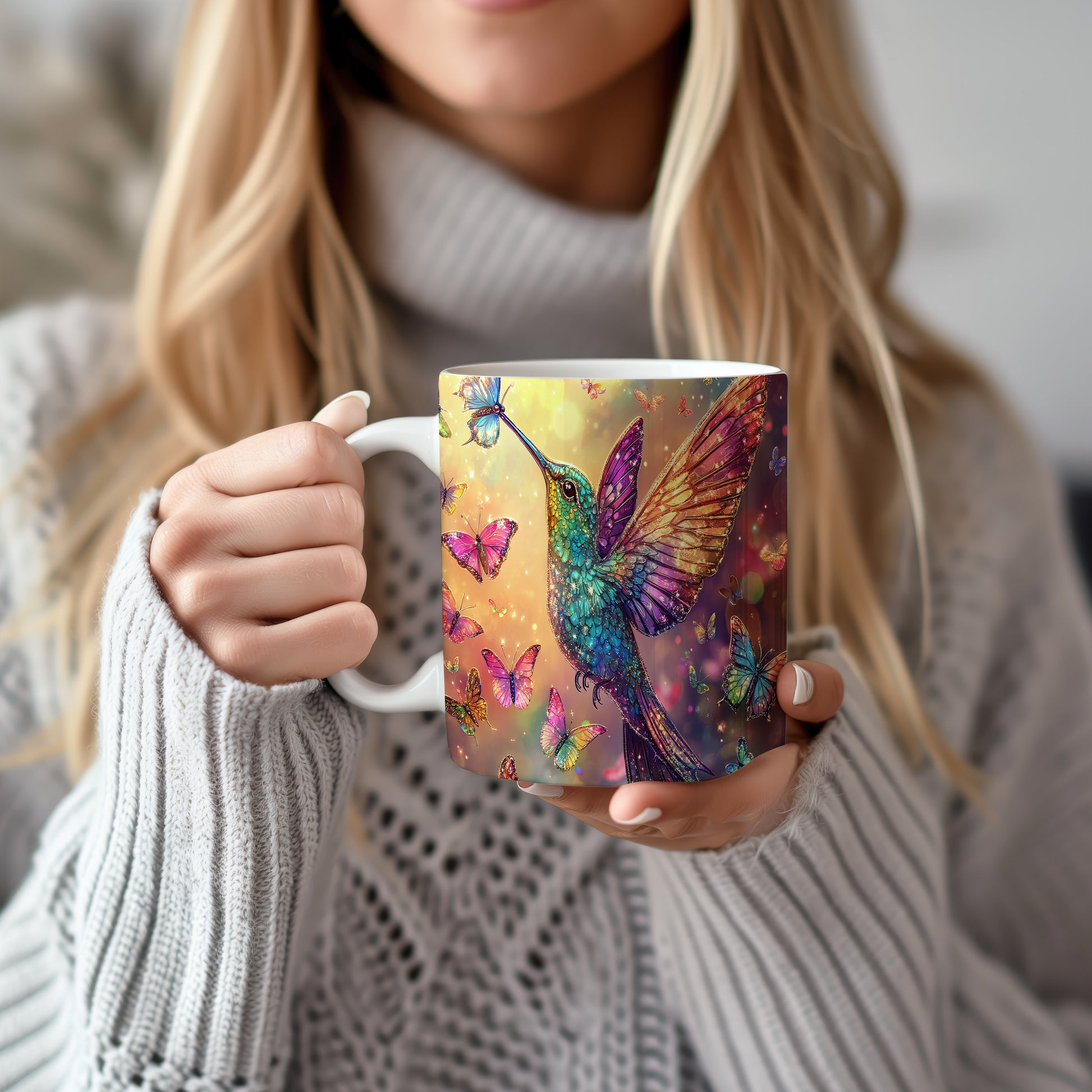 Tento hrnek s kolibříkem a motýly přináší do vašeho každodenního pití barevnou radost. Je ideální pro milovníky přírody a skvělým dárkem pro každého, kdo ocení krásu těchto fascinujících tvorů. Materiál: keramika. Objem: 330 ml. Vhodné do myčky i mikrovlnky. Díky svému designu s 3D efektem dodá každému doušku nádech elegance.