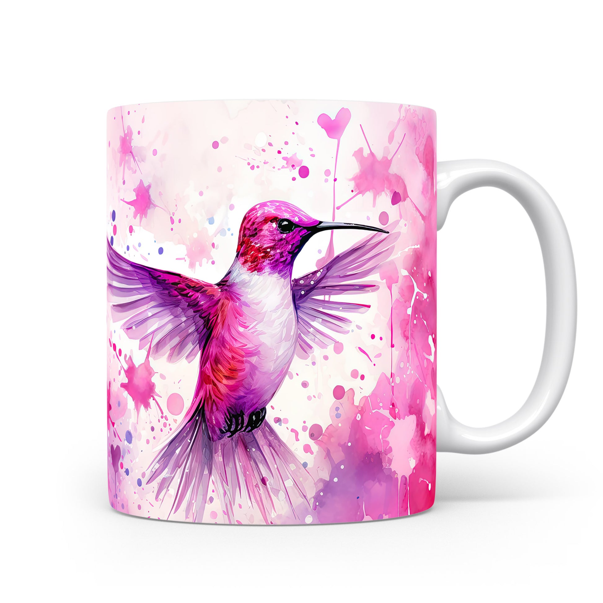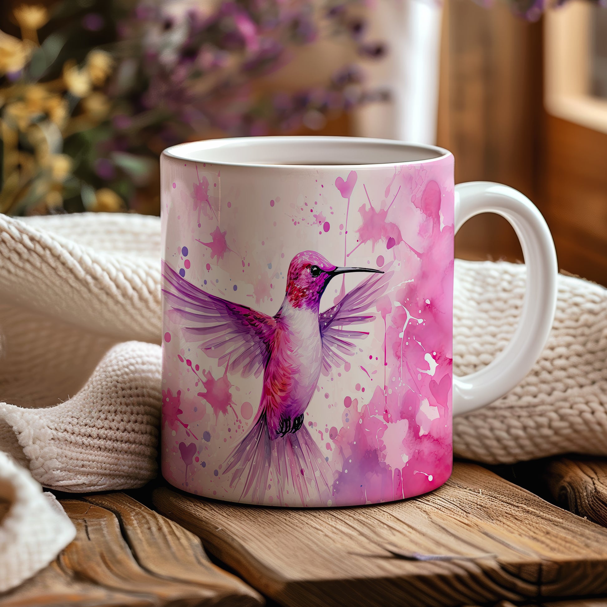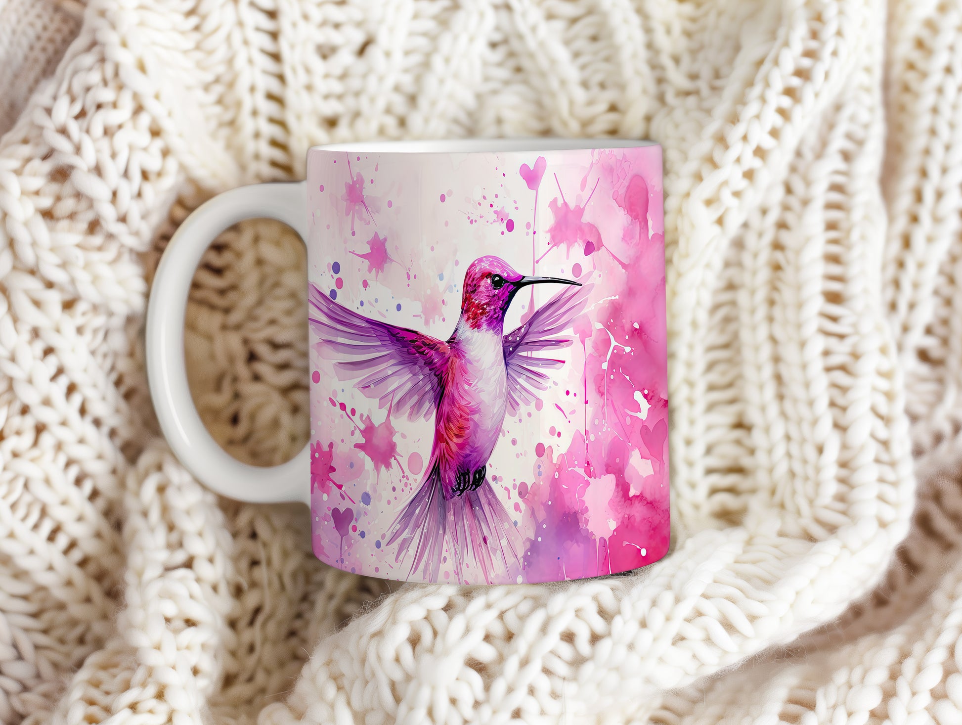 Hrnek s kolibříkem na růžovém pozadí – modrými detaily