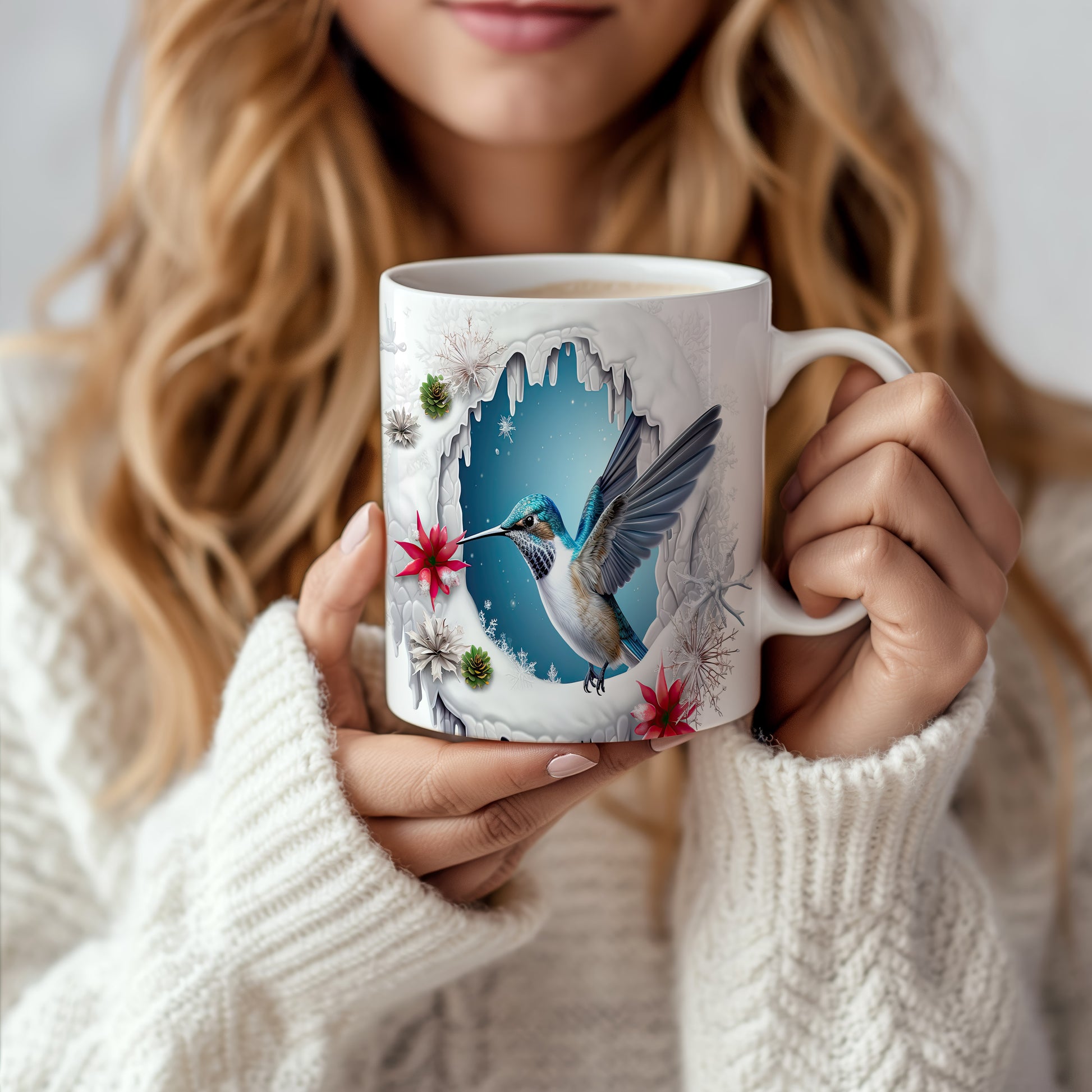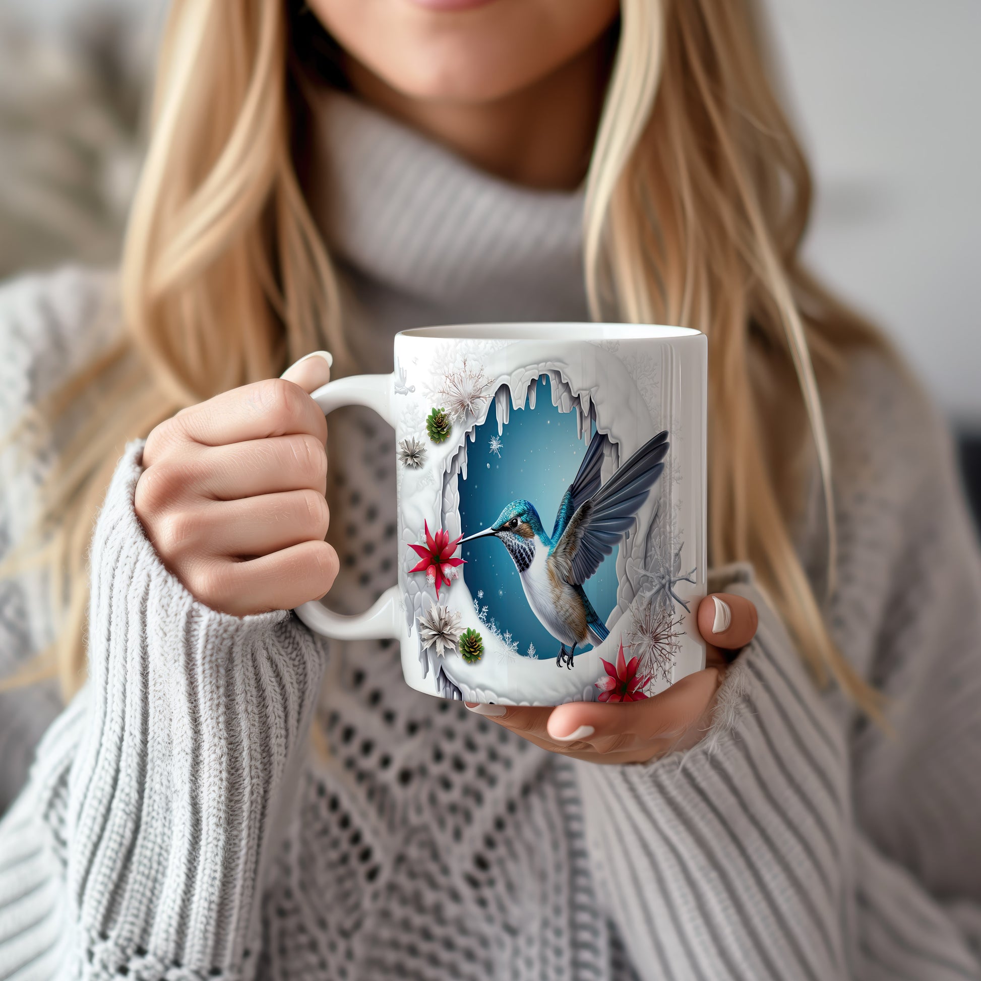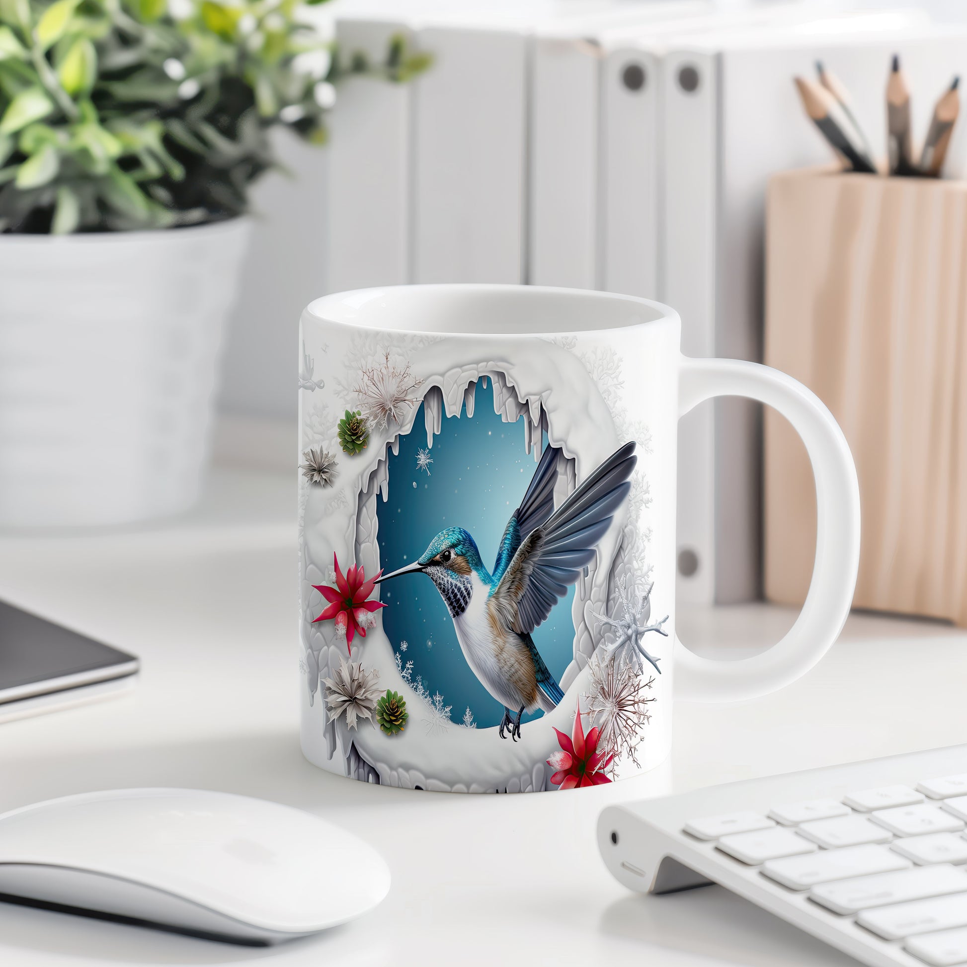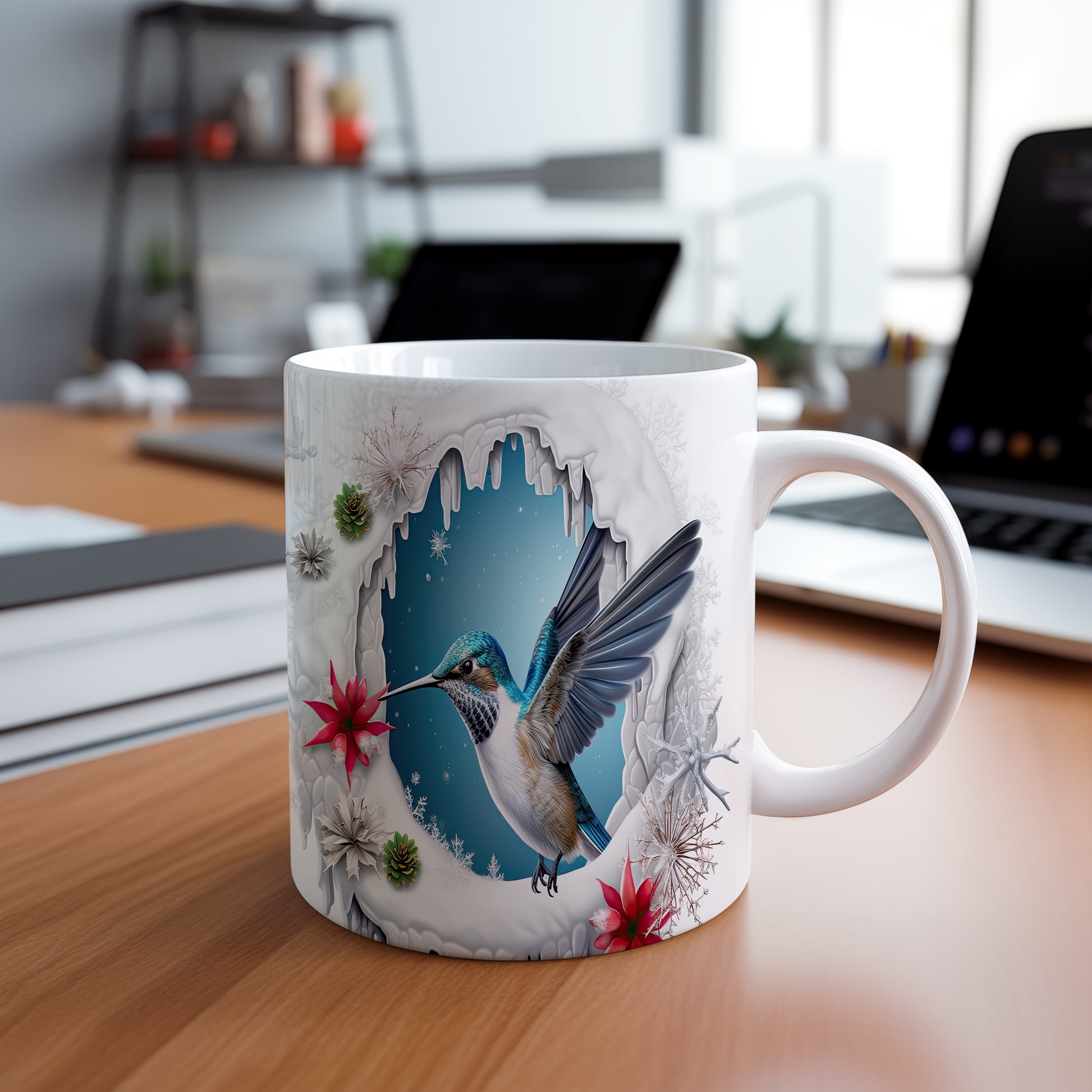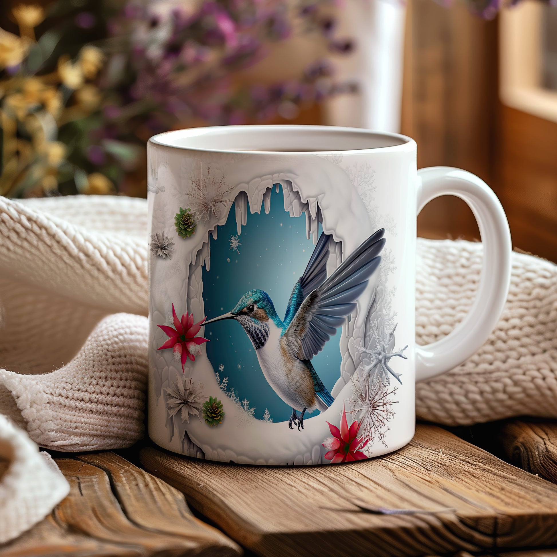 Elegantní hrnek s motivem kolibříka v zimní krajině. Tento hrnek je ideální pro milovníky přírody a ptáků, skvělý tip na dárek pro každého, kdo ocení krásu zimních scenérií. Materiál: keramika. Objem: 330 ml. Vhodné do myčky i mikrovlnky. Užívejte si svůj oblíbený nápoj s nádechem přírody.