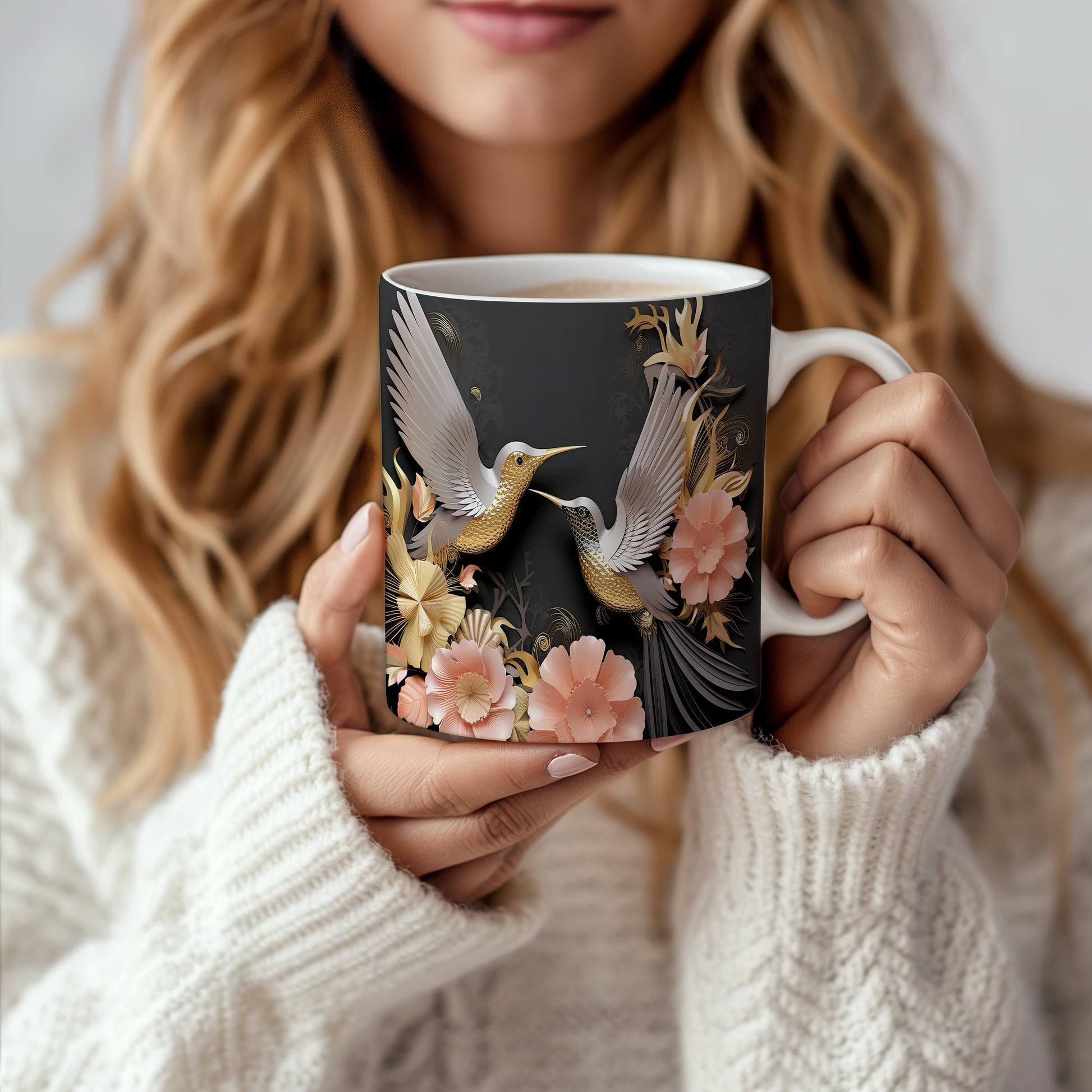 Hrnek s motivem kolibříků a květin je skvělým kouskem pro milovníky přírody a botanických motivů. Tento hrnek potěší každého, kdo ocení krásu přírody, a je ideálním dárkem pro přátele nebo rodinu. Materiál: keramika. Objem: 330 ml. Vhodné do myčky i mikrovlnky. Užívejte si svůj oblíbený nápoj s nádechem přírody.