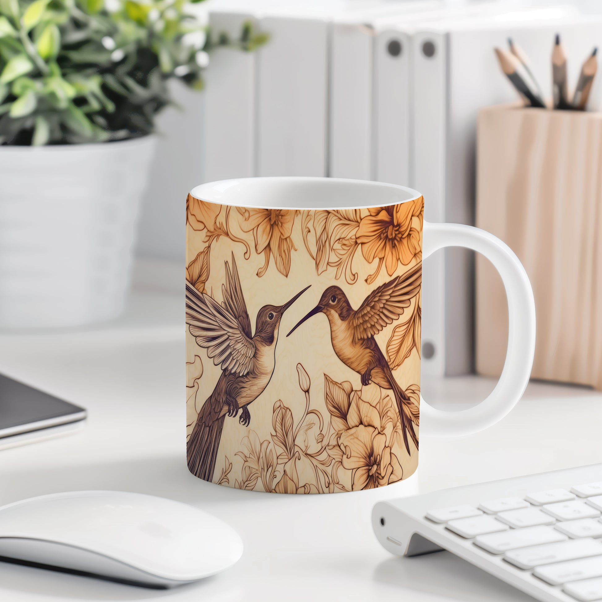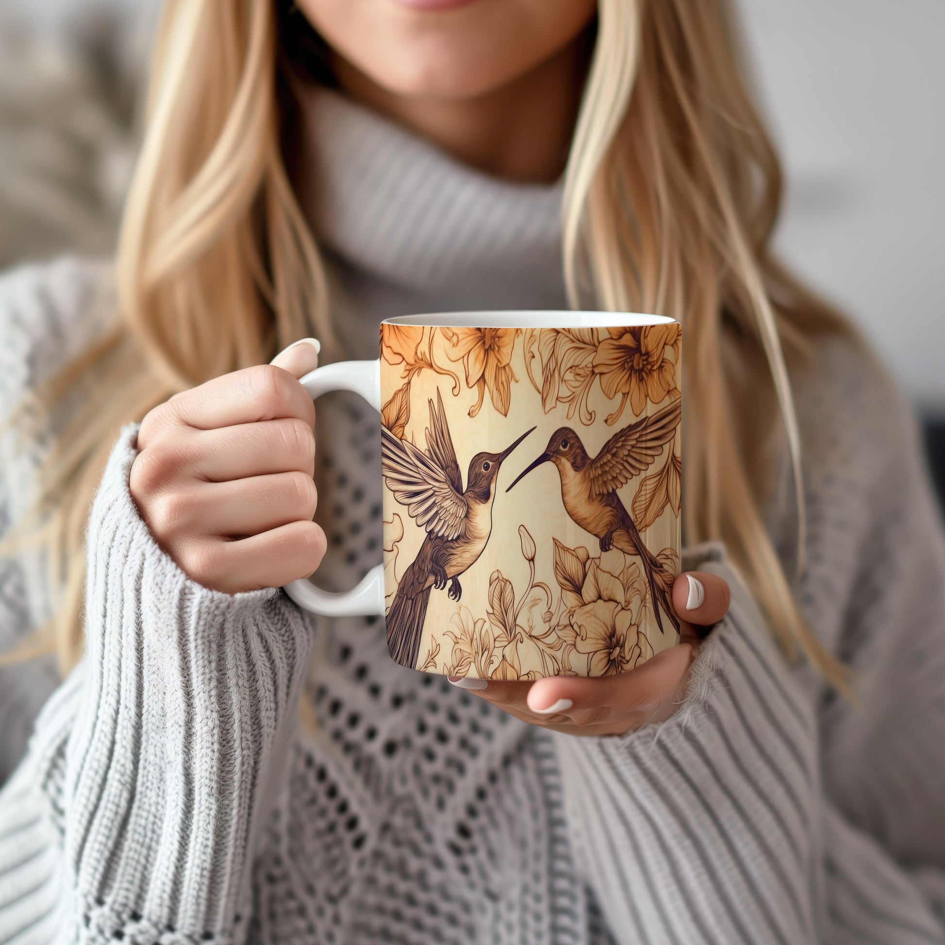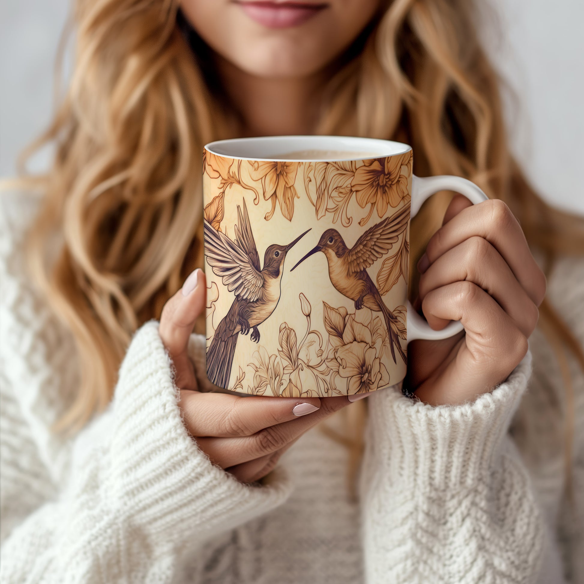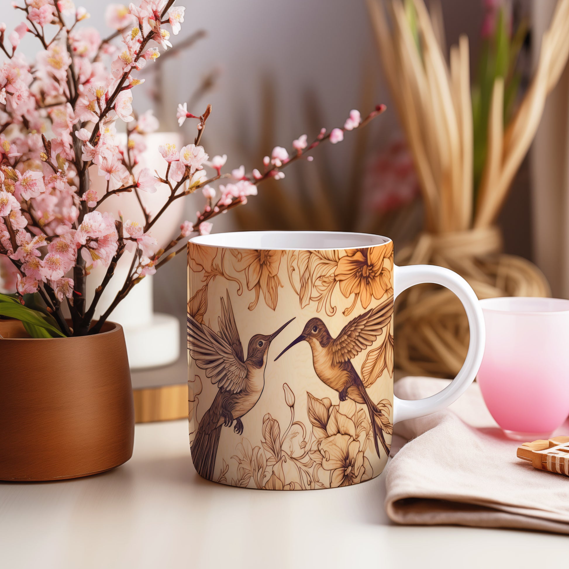Tento elegantní hrnek zobrazuje kolibříky mezi jemnými květinami. Je ideální pro milovníky přírody a skvělý tip na dárek pro přátele nebo rodinu. Materiál: keramika. Objem: 330 ml. Vhodné do myčky i mikrovlnky. Díky svému designu přináší do každodenního pití radost a pohodu.