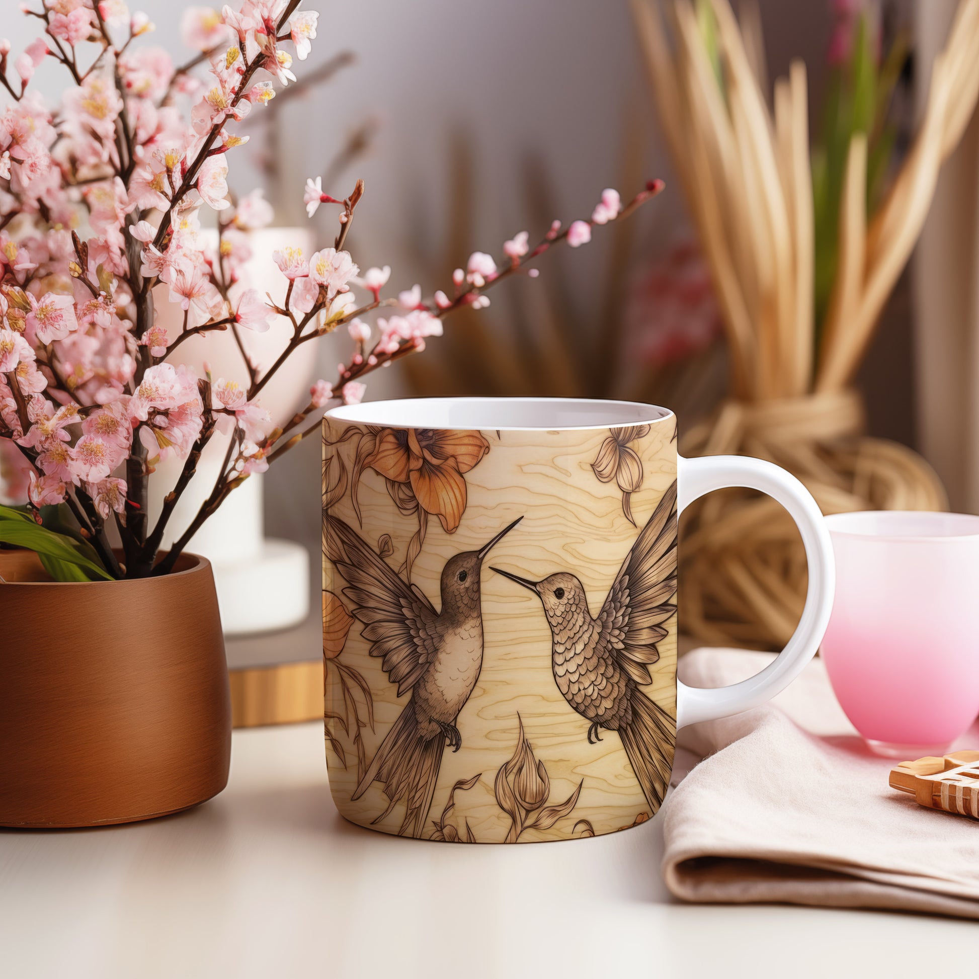Hrnek s kolibříky – malířským vzhledem