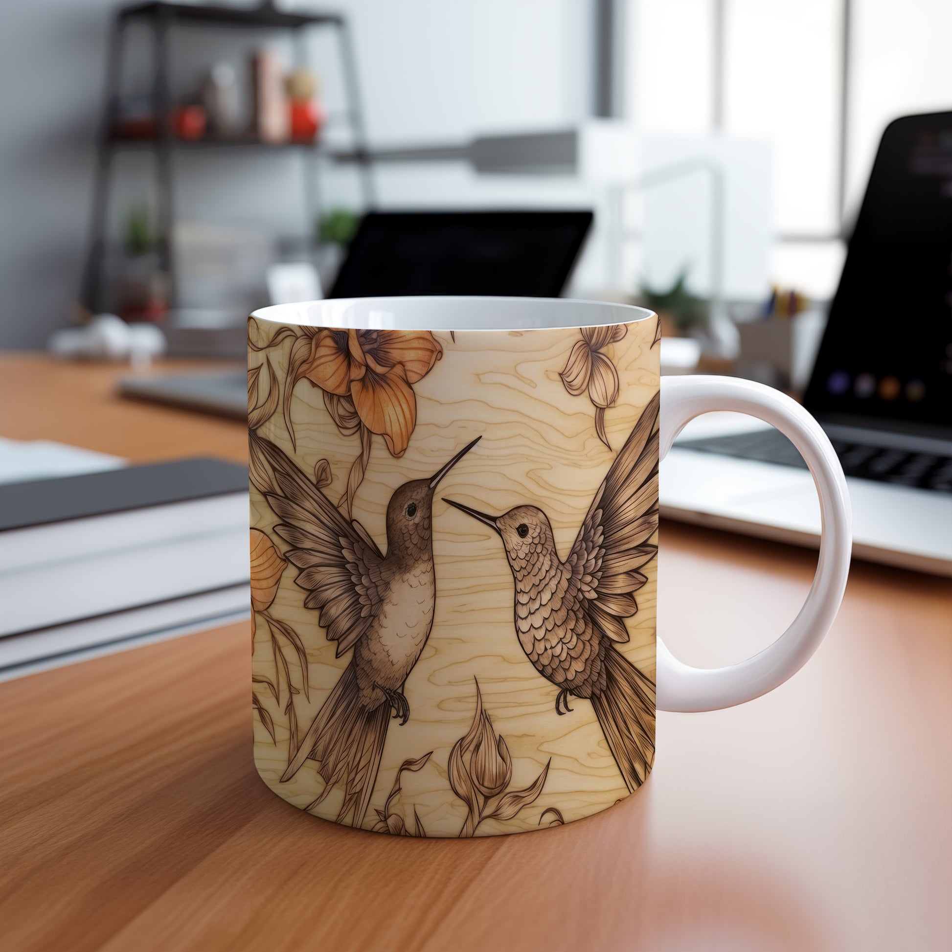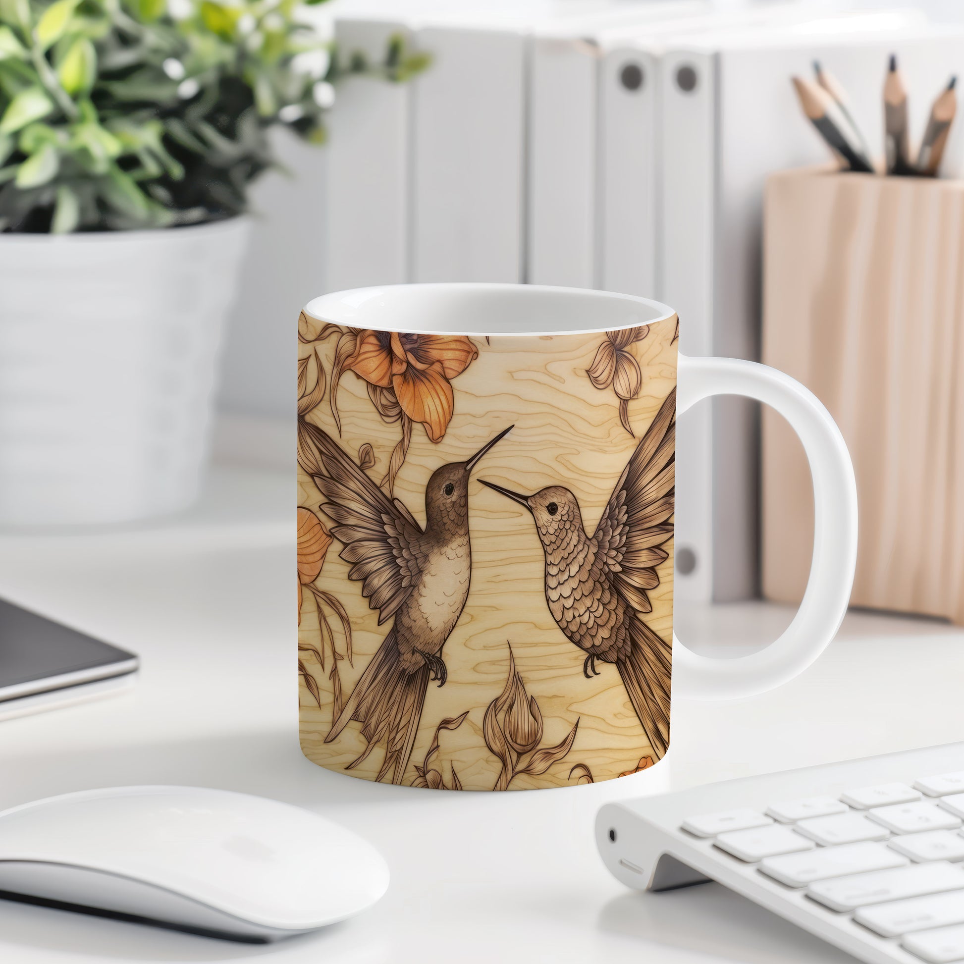 Hrnek s motivem kolibříků v květinovém stylu přináší do vašeho dne svěží a barevný nádech. Je ideální pro milovníky přírody a skvělý tip na dárek pro přátele či rodinu. Materiál: keramika. Objem: 330 ml. Vhodné do myčky i mikrovlnky. Tento hrnek vám zpříjemní každé sousto a nápoj.