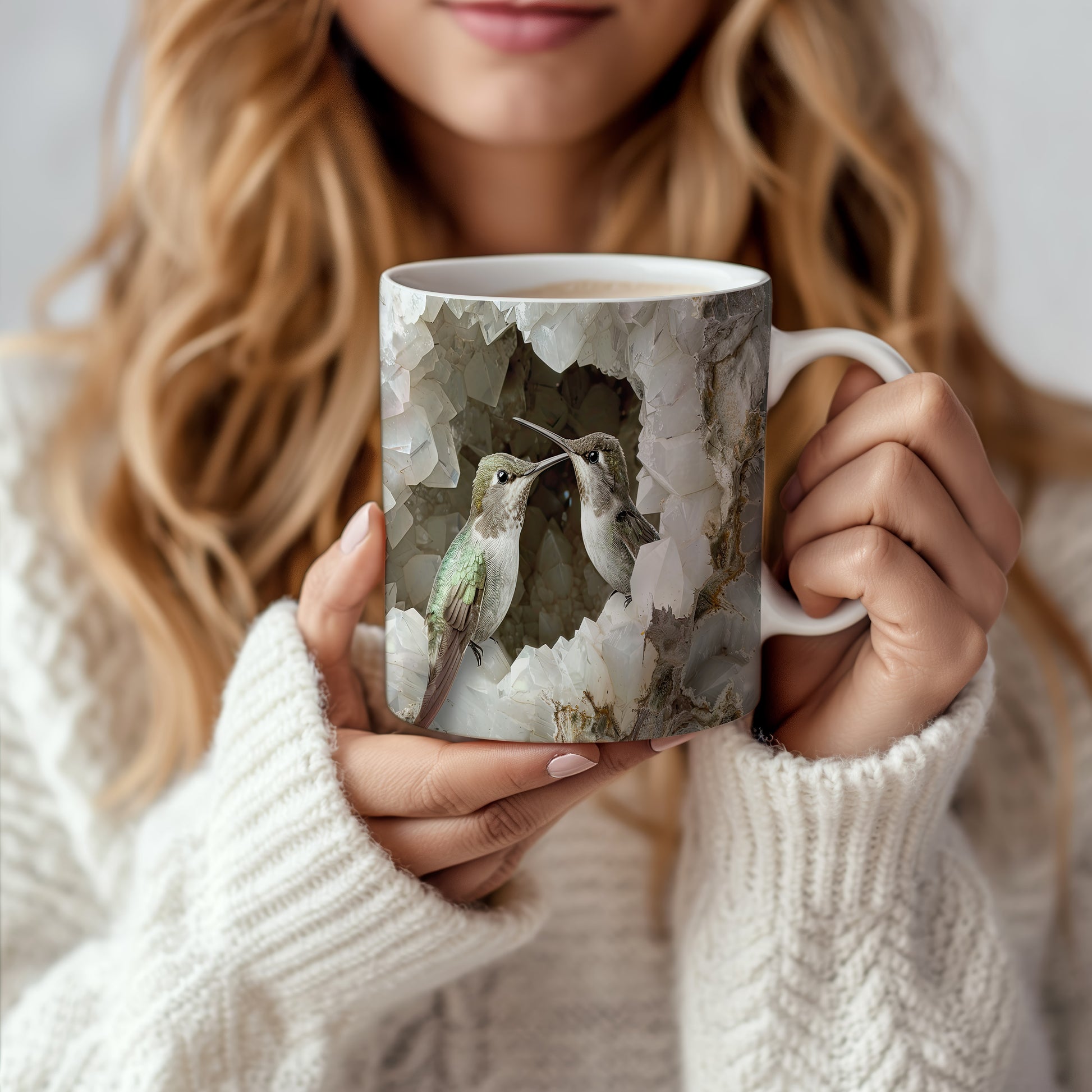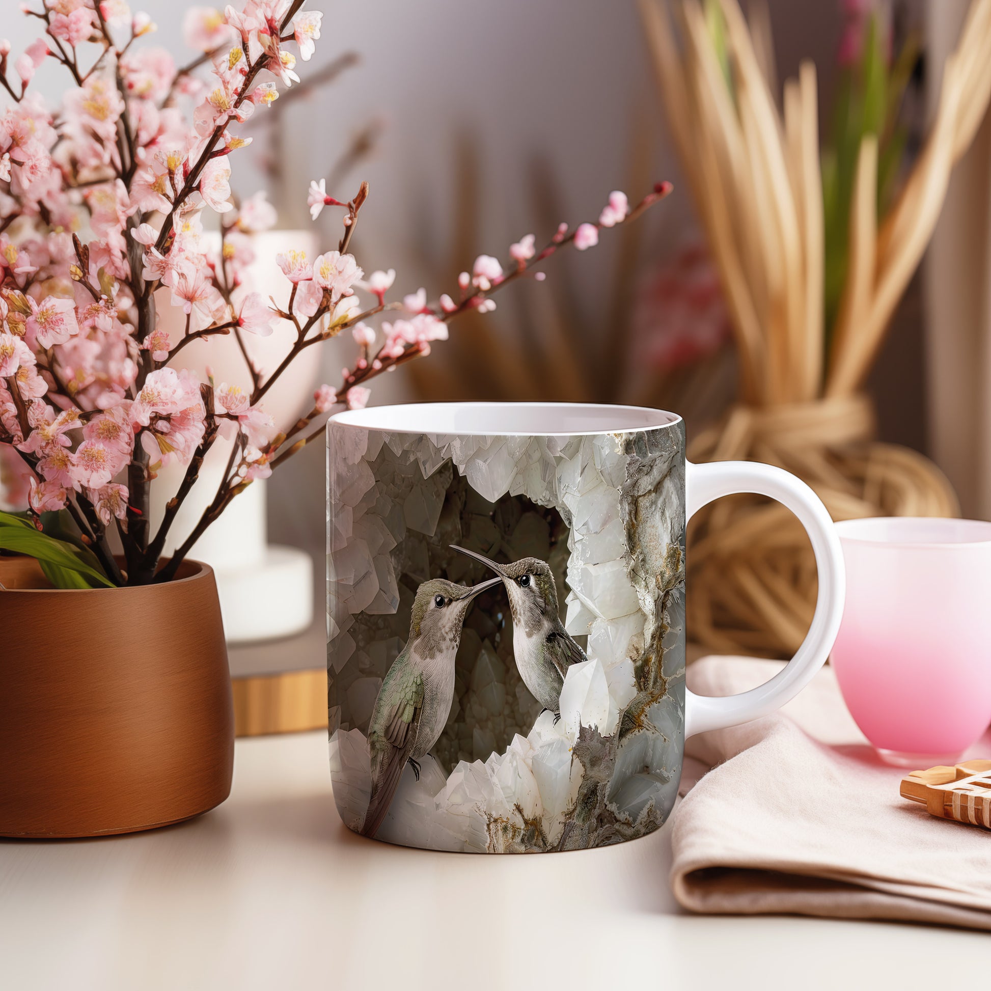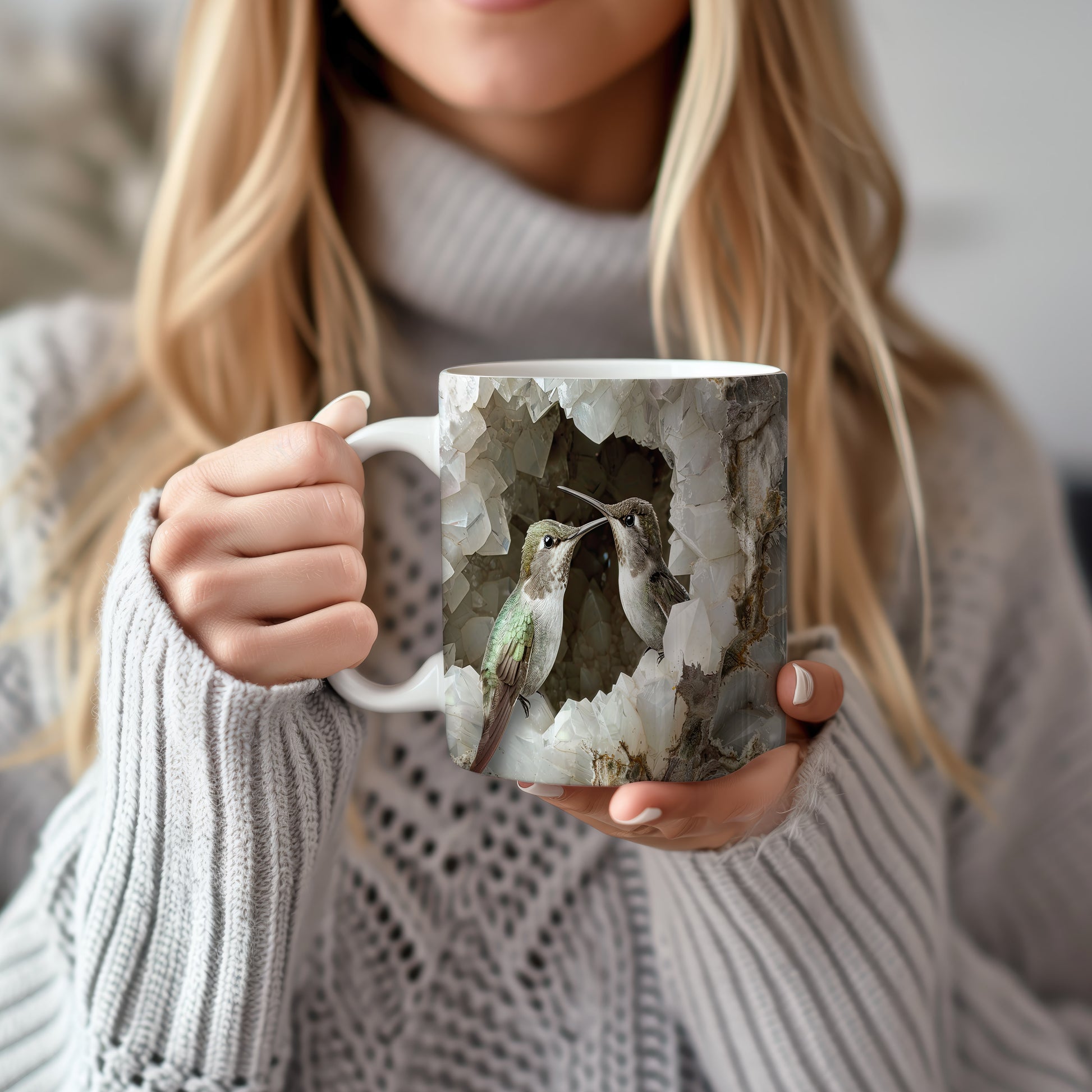 Hrnek s motivem dvou kolibříků, kteří se dotýkají zobáků, zasazených do krásné geody. Tento stylový hrnek je ideální pro milovníky přírody a skvělý tip na dárek pro přátele nebo rodinu. Materiál: keramika. Objem: 330 ml. Vhodné do myčky i mikrovlnky. Používání tohoto hrnku přináší radost z každého doušku.