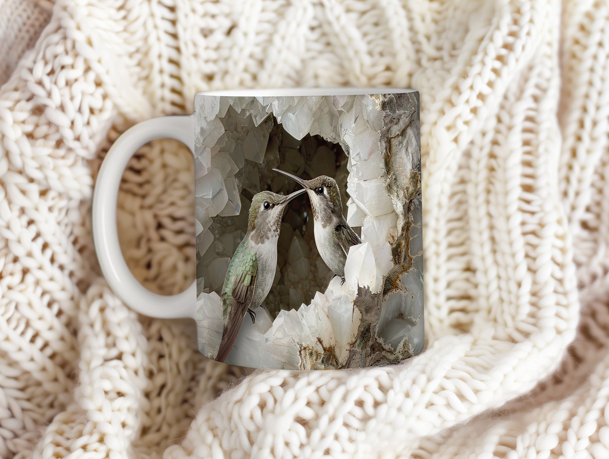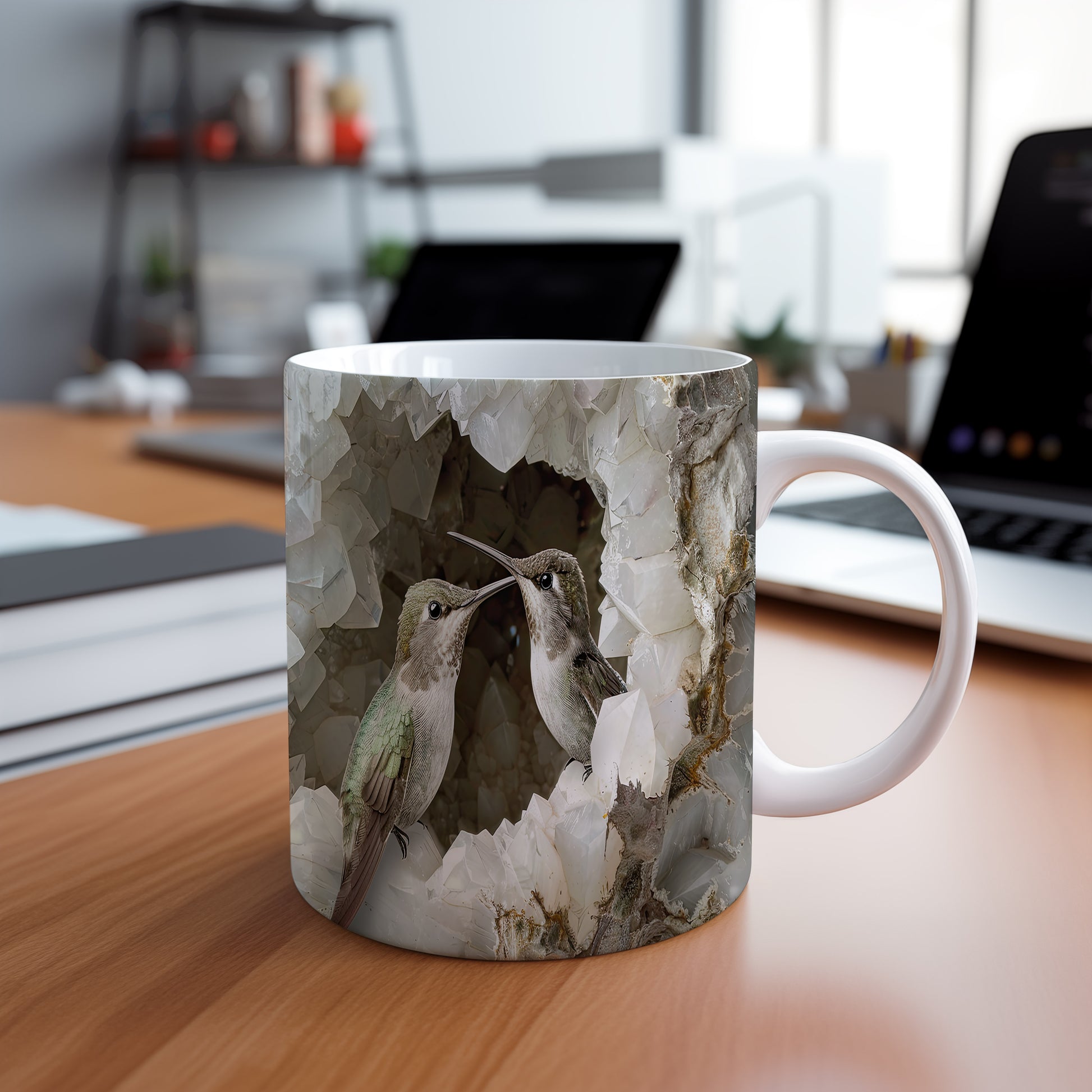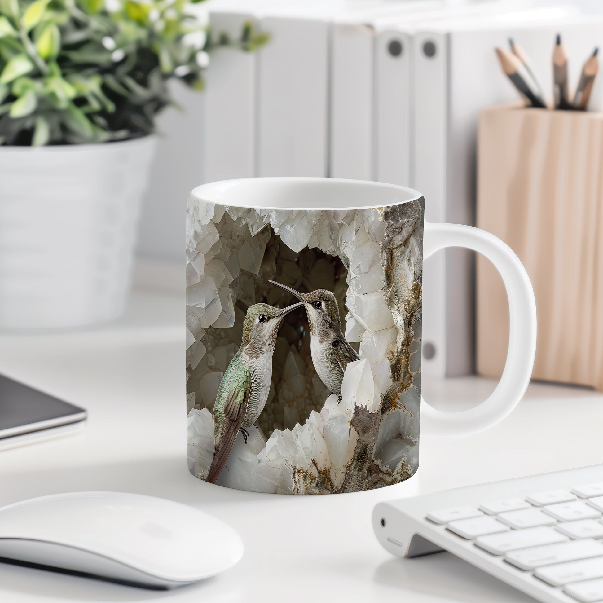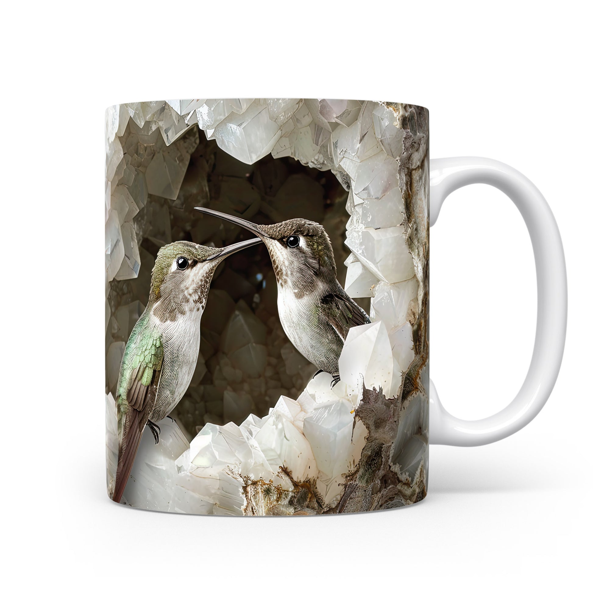 Hrnek s motivem dvou kolibříků, kteří se dotýkají zobáků, zasazených do krásné geody. Tento stylový hrnek je ideální pro milovníky přírody a skvělý tip na dárek pro přátele nebo rodinu. Materiál: keramika. Objem: 330 ml. Vhodné do myčky i mikrovlnky. Používání tohoto hrnku přináší radost z každého doušku.