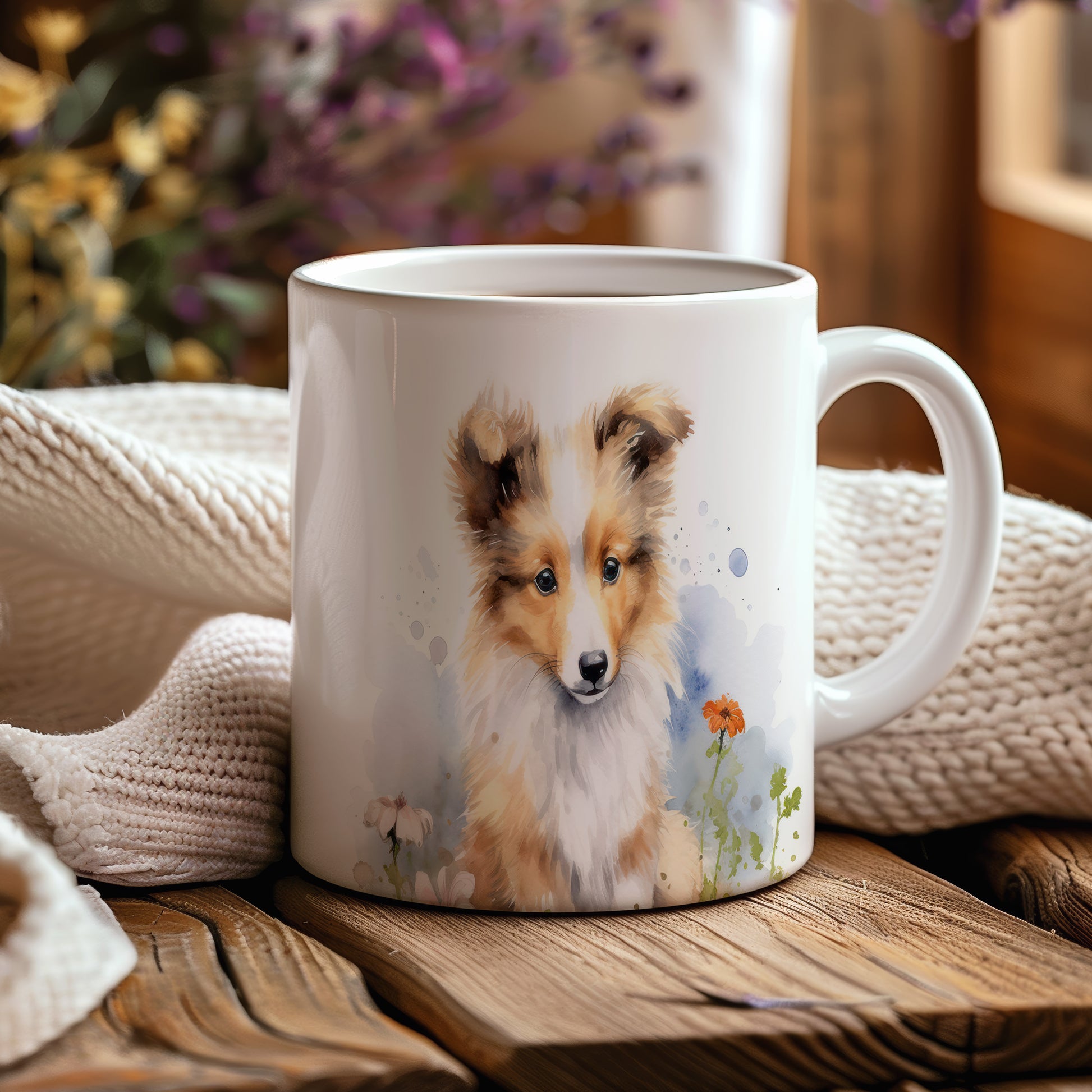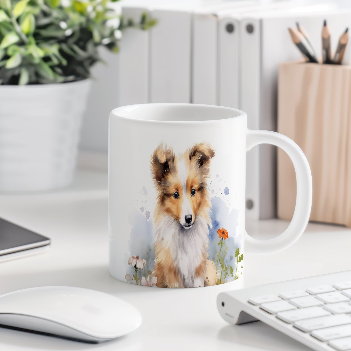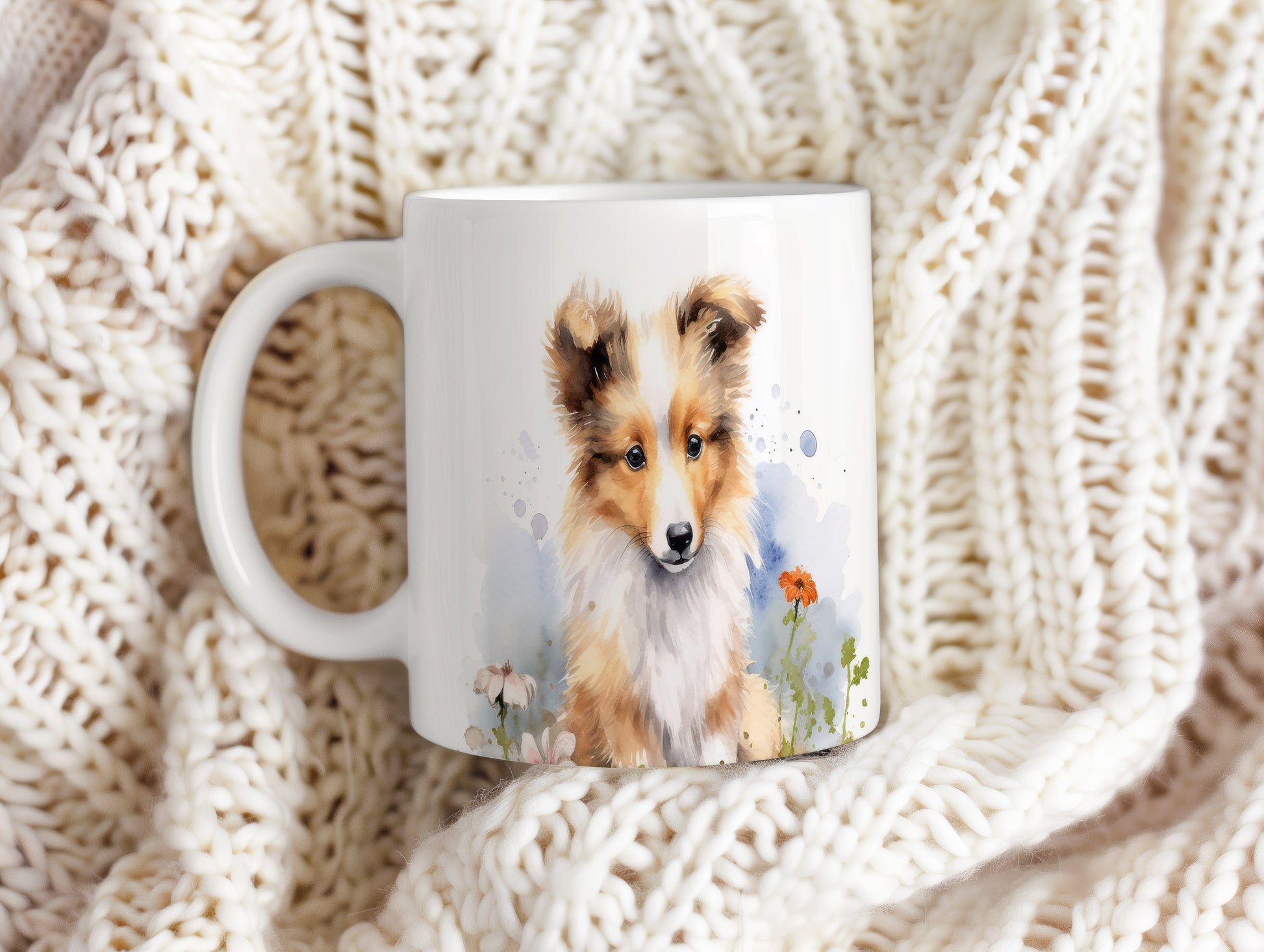 Na hrnku je zobrazeno roztomilé štěně plemene Shetland Sheepdog obklopené květinami. Tento hrnek je ideální pro milovníky psů a přírody, skvělý tip na dárek pro každého, kdo má rád zvířata. Materiál: keramika. Objem: 330 ml. Vhodné do myčky i mikrovlnky. Používáním tohoto hrnku si užijete každé sousto a povzbudíte svou kreativitu.