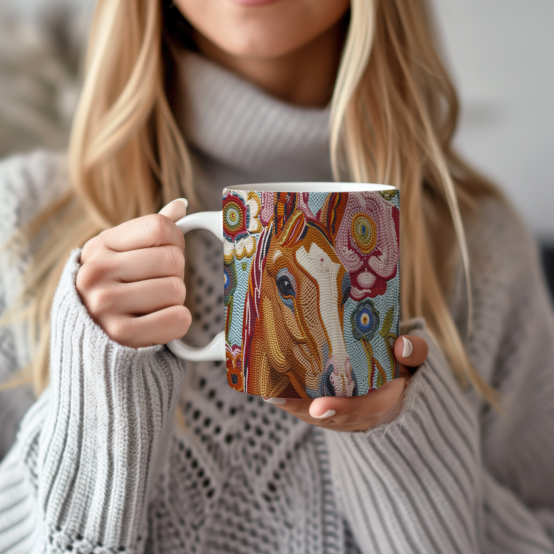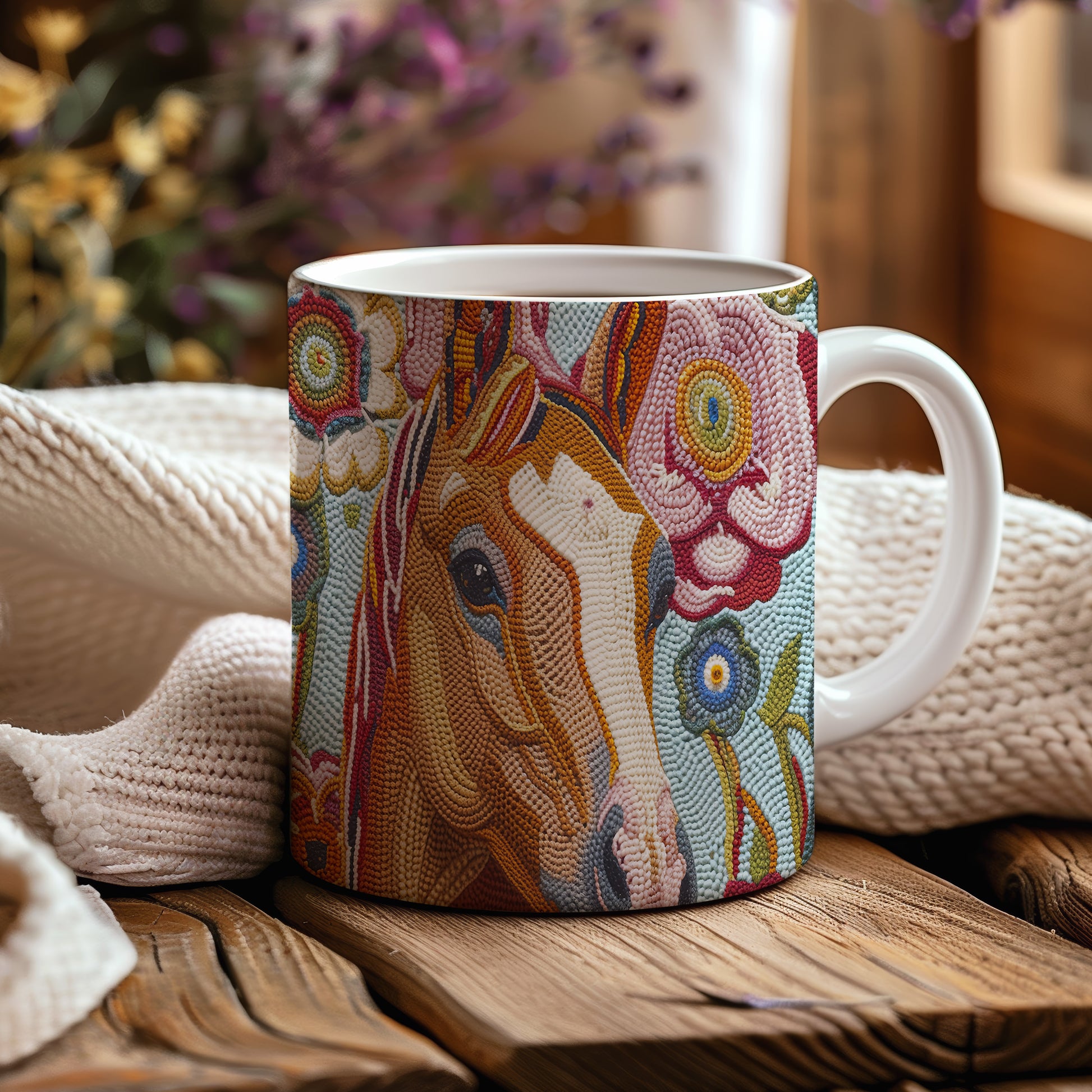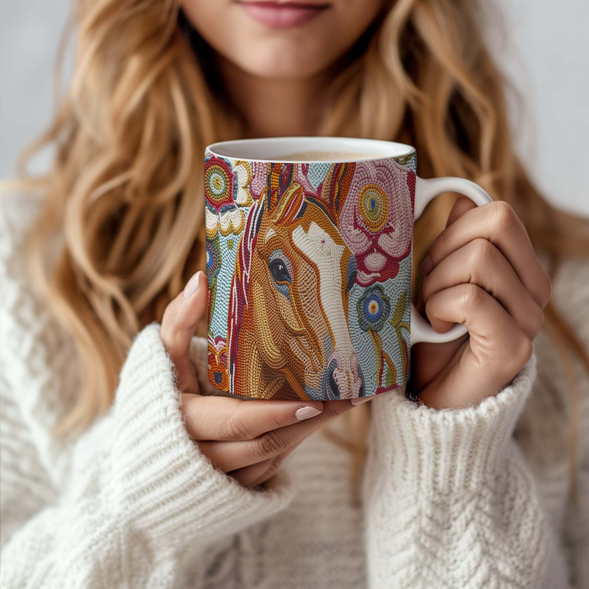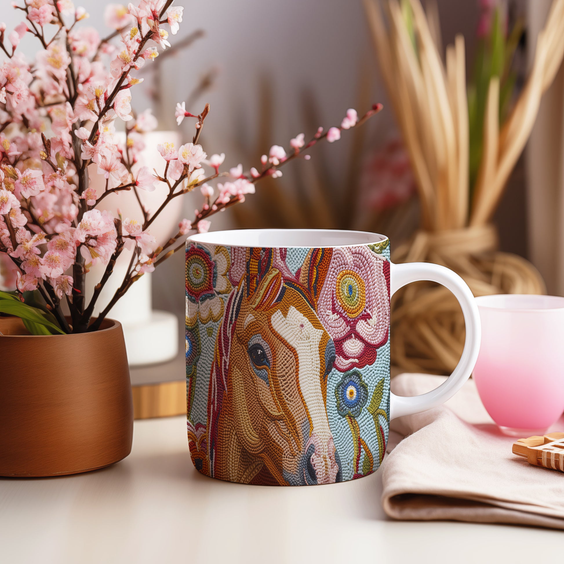 Tento hrnek zdobí krásný motiv koně obklopeného květinami, který přináší harmonii a klid. Je ideální pro milovníky přírody a zvířat, skvělý tip na dárek pro vaše blízké. Materiál: keramika. Objem: 330 ml. Vhodné do myčky i mikrovlnky. Používání tohoto hrnku vám přinese radost z každého doušku.