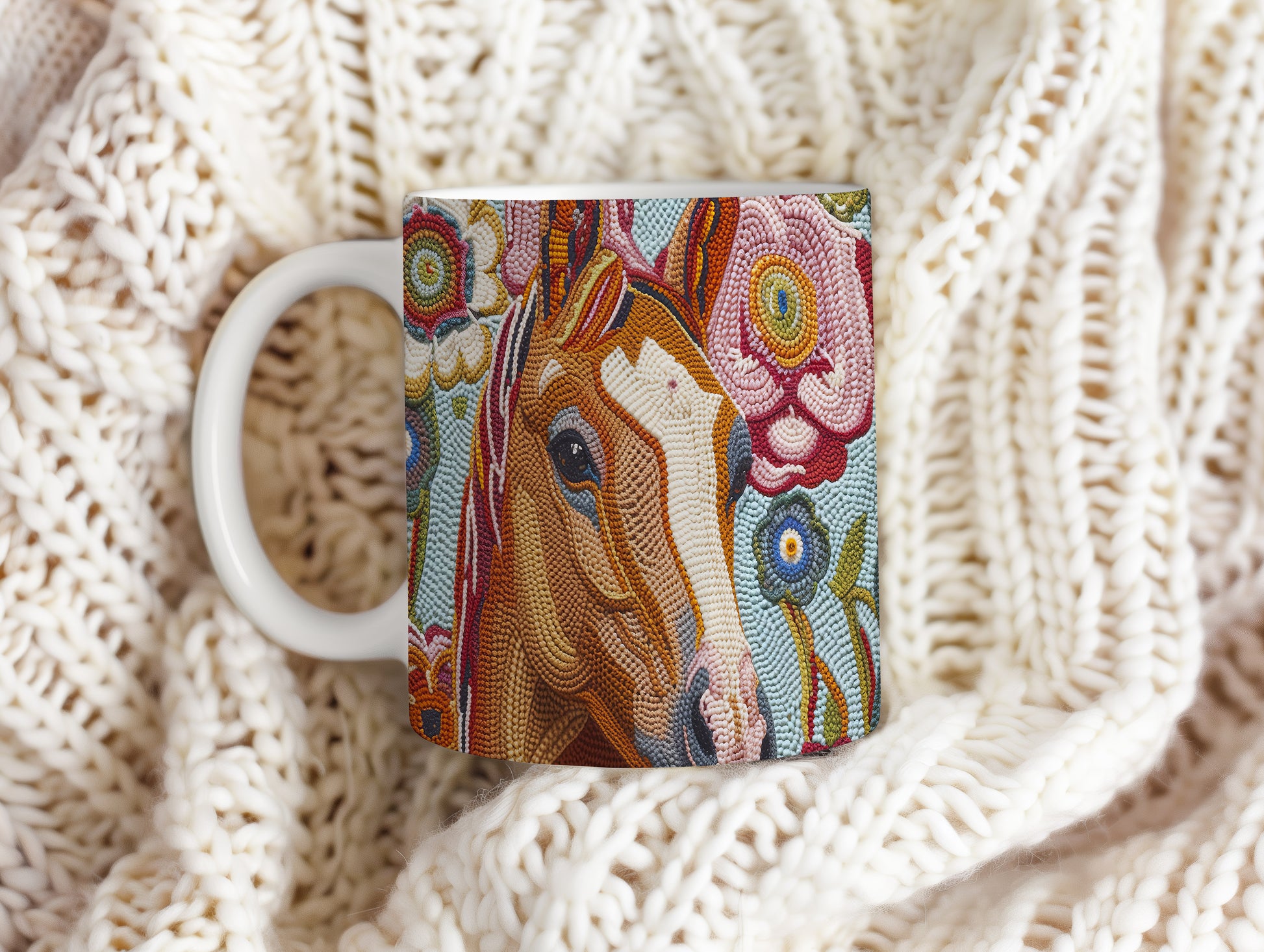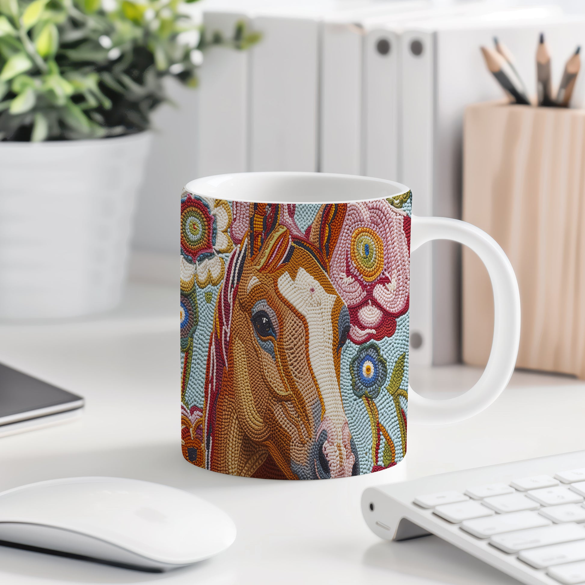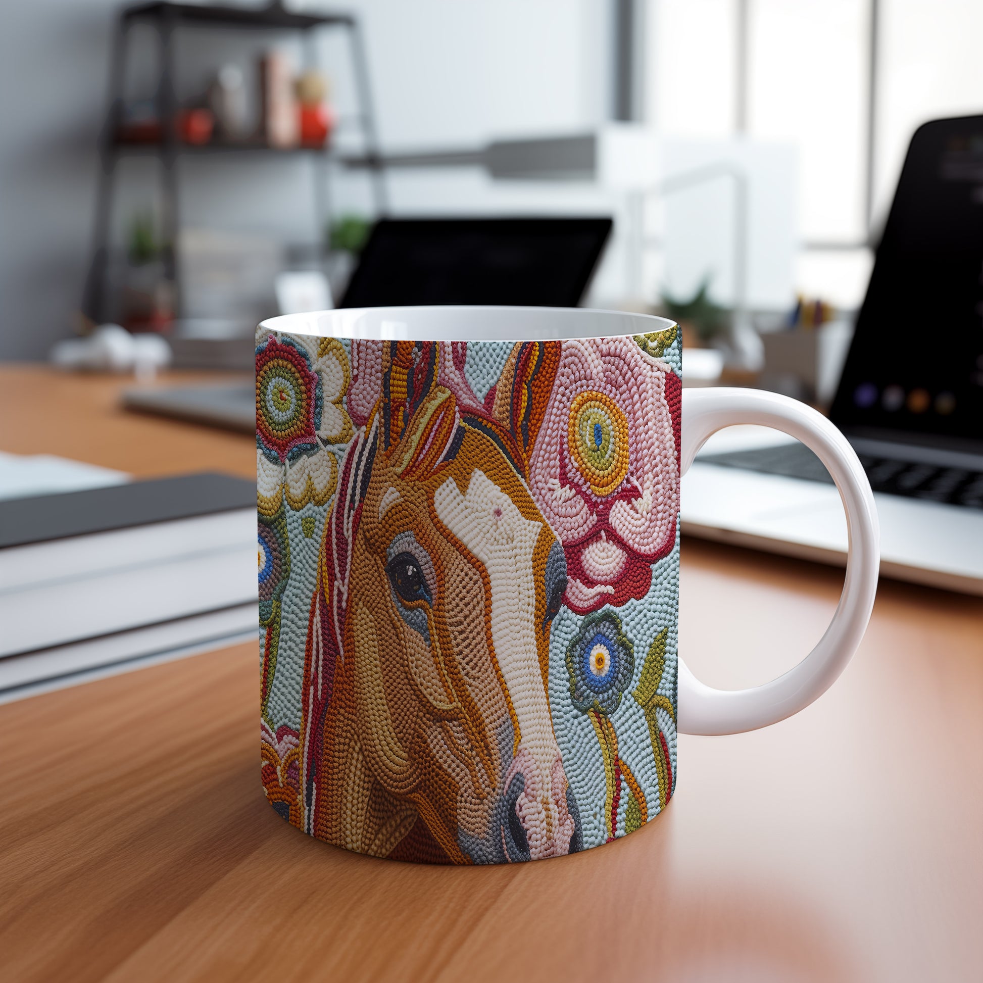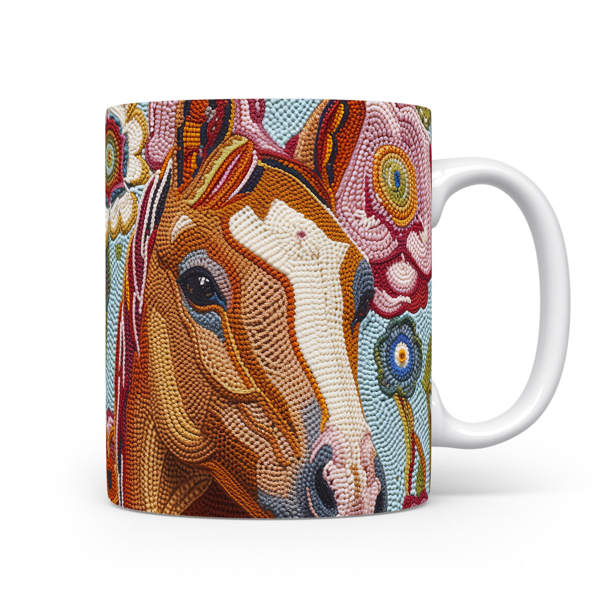 Tento hrnek zdobí krásný motiv koně obklopeného květinami, který přináší harmonii a klid. Je ideální pro milovníky přírody a zvířat, skvělý tip na dárek pro vaše blízké. Materiál: keramika. Objem: 330 ml. Vhodné do myčky i mikrovlnky. Používání tohoto hrnku vám přinese radost z každého doušku.