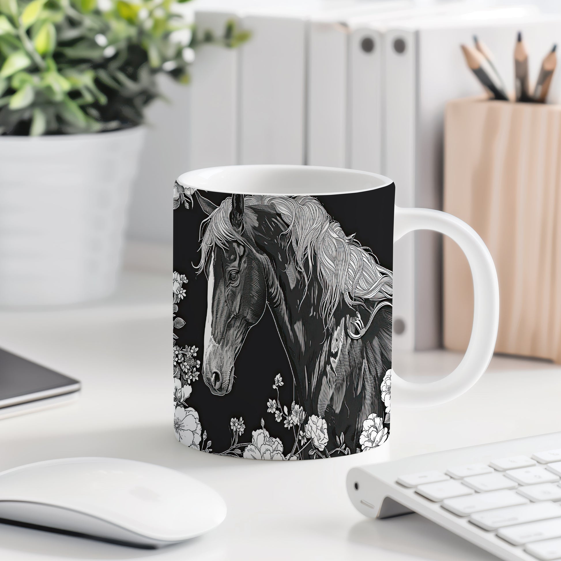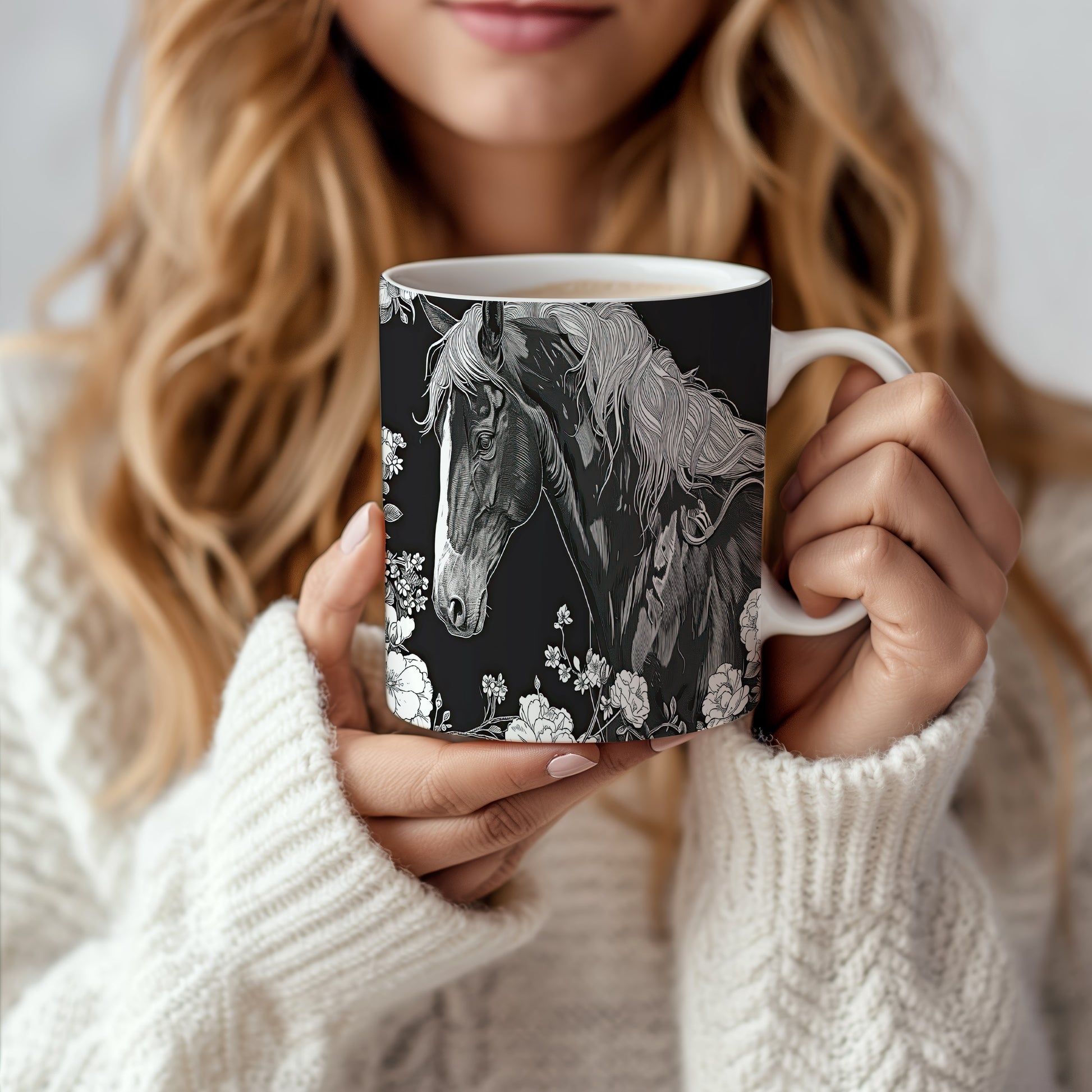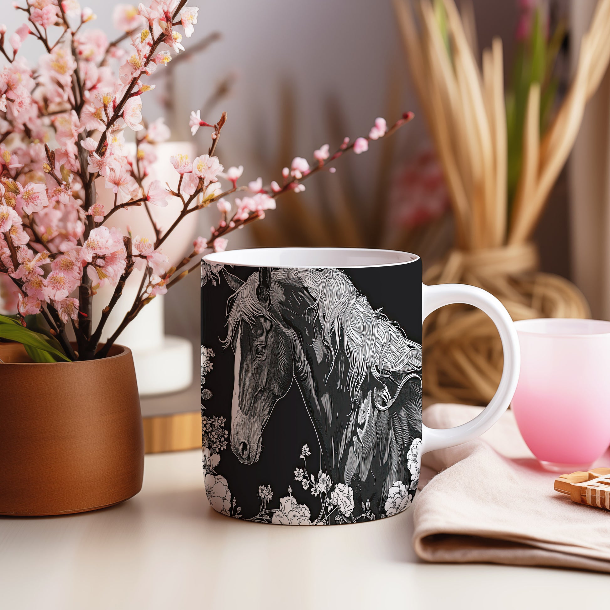 Stylový hrnek s realistickým motivem koně a květin. Tento hrnek je ideální pro milovníky jezdectví a přírody, skvělý tip na dárek pro každého, kdo má rád zvířata. Materiál: keramika. Objem: 330 ml. Vhodné do myčky i mikrovlnky. Používání tohoto hrnku přináší radost z každého doušku.