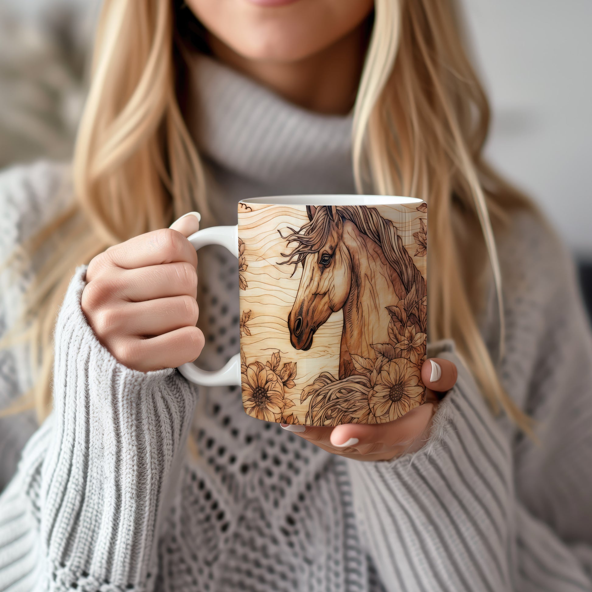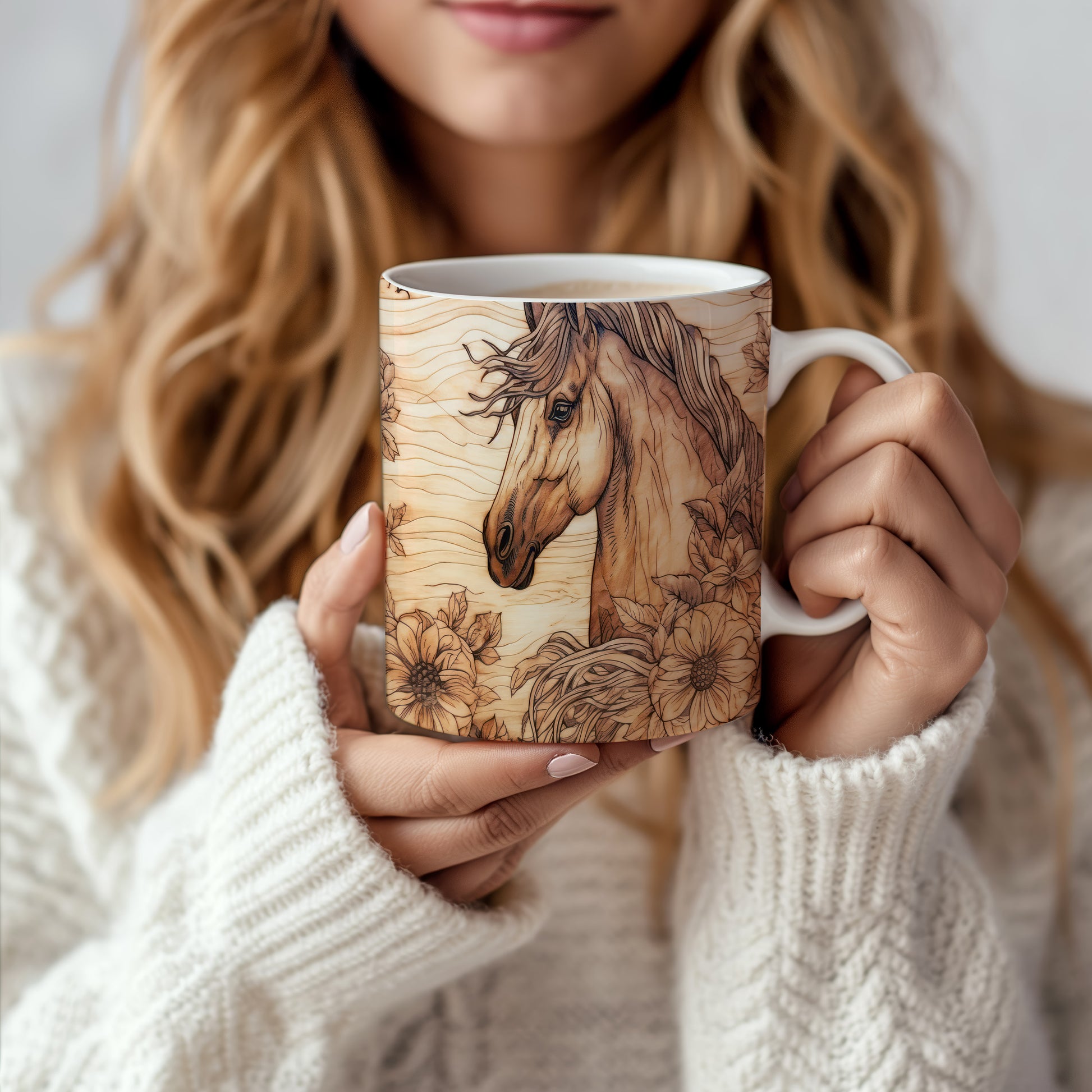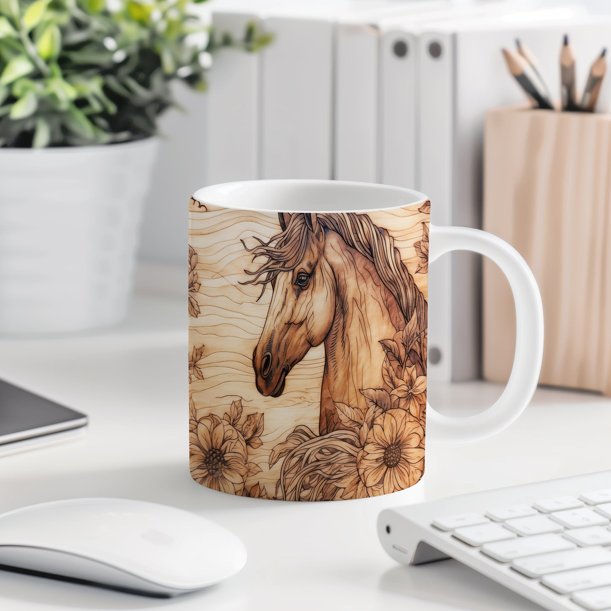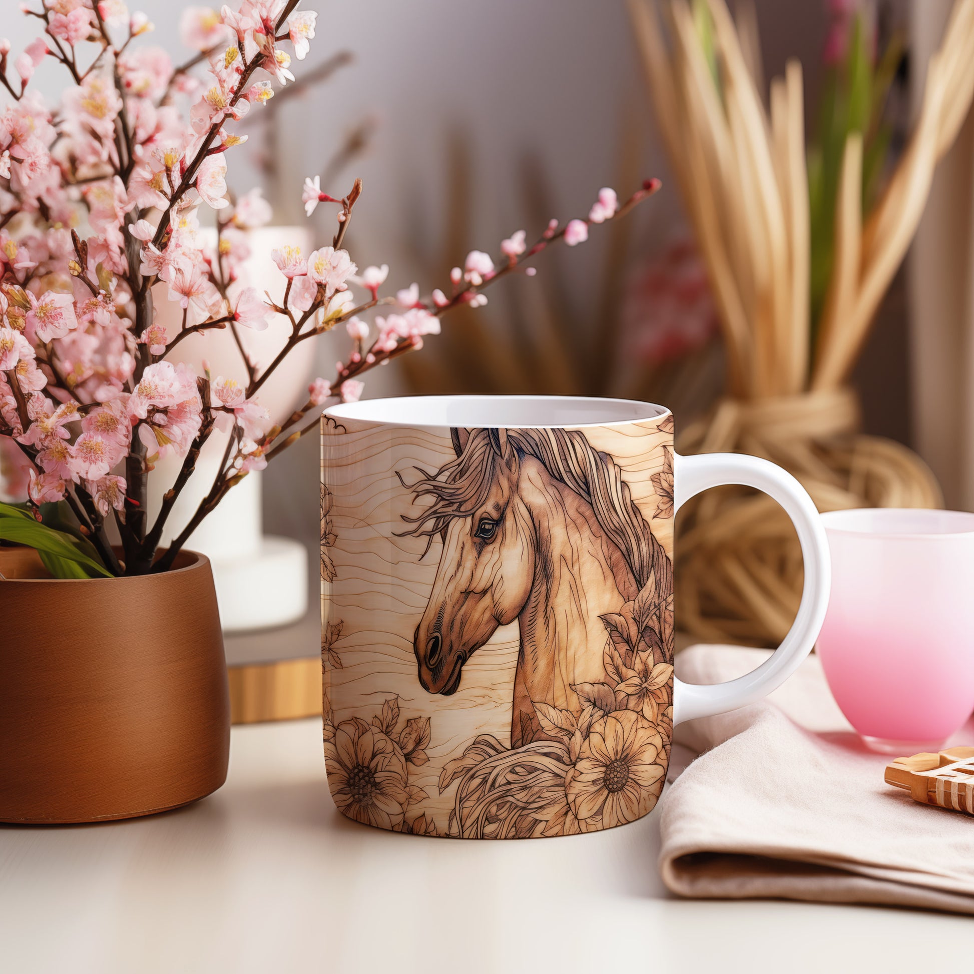 Hrnek s motivem koně obklopeného květinami v jemných hnědých a béžových tónech. Tento stylový hrnek je ideální pro milovníky přírody a zvířat, skvělý tip na dárek pro přátele nebo rodinu. Materiál: keramika. Objem: 330 ml. Vhodné do myčky i mikrovlnky. Používání tohoto hrnku přináší radost z každého doušku.