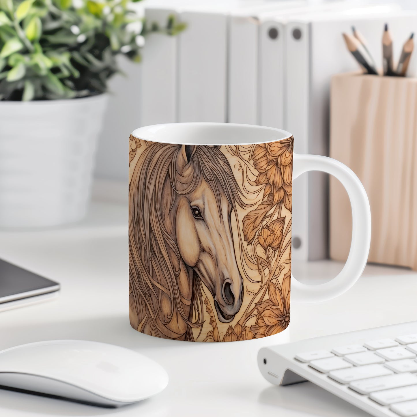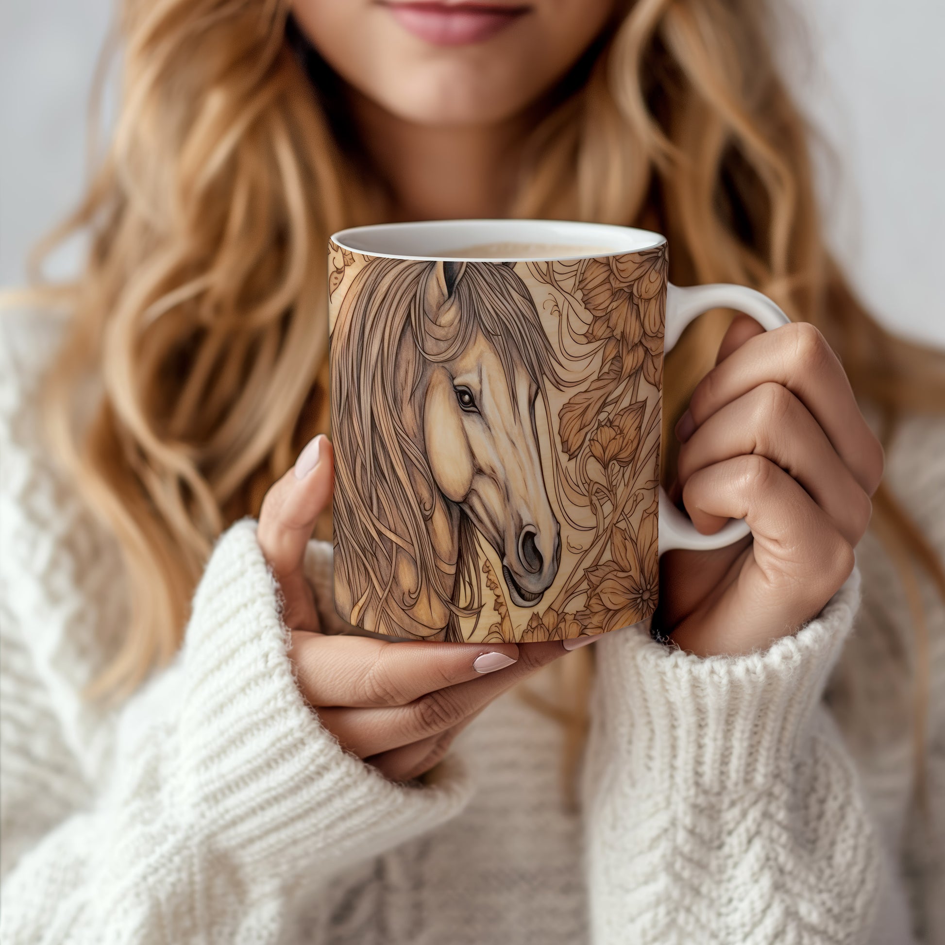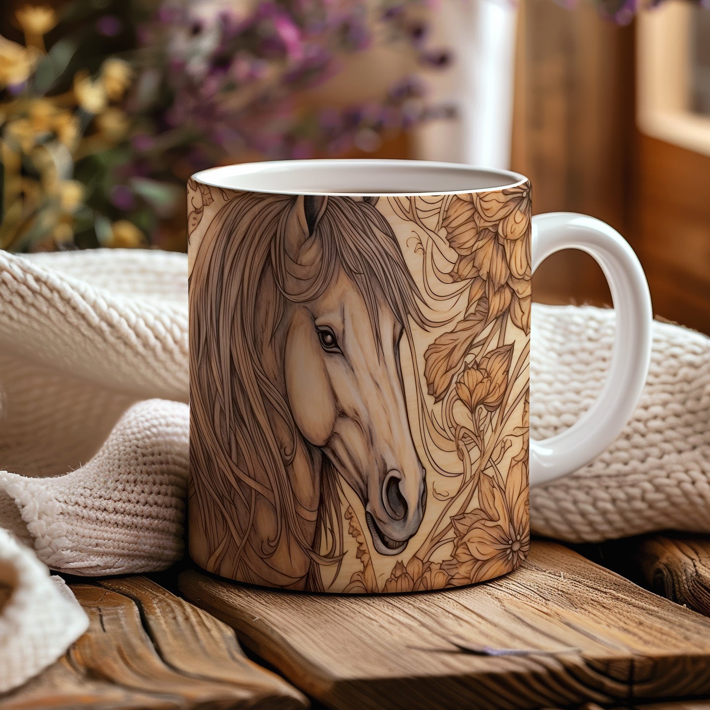 Keramický hrnek s krásným vyobrazením koně obklopeného květinami. Tento hrnek je ideální pro milovníky přírody a zvířat, skvělý tip na dárek pro každého, kdo ocení krásu přírody. Materiál: keramika. Objem: 330 ml. Vhodné do myčky i mikrovlnky. Používání tohoto hrnku přináší radost z každého doušku.
