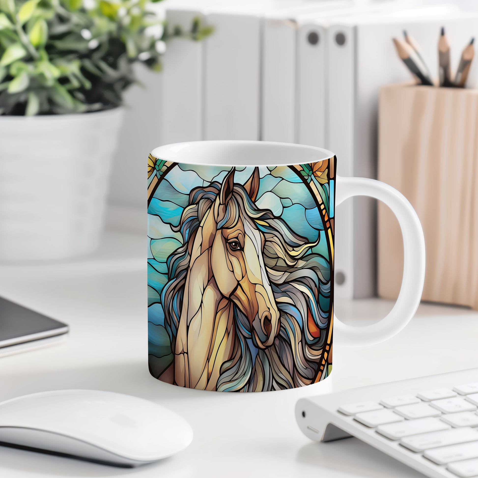 Hrnek s koňskou hlavou v barevném stylu je skvělým doplňkem pro milovníky těchto majestátních zvířat. Tento hrnek potěší každého, kdo má rád koně a ocení jejich krásu. Materiál: keramika. Objem: 330 ml. Vhodné do myčky i mikrovlnky. Používání tohoto hrnku přináší radost z každého doušku a dodává každodennímu pití osobitý styl.