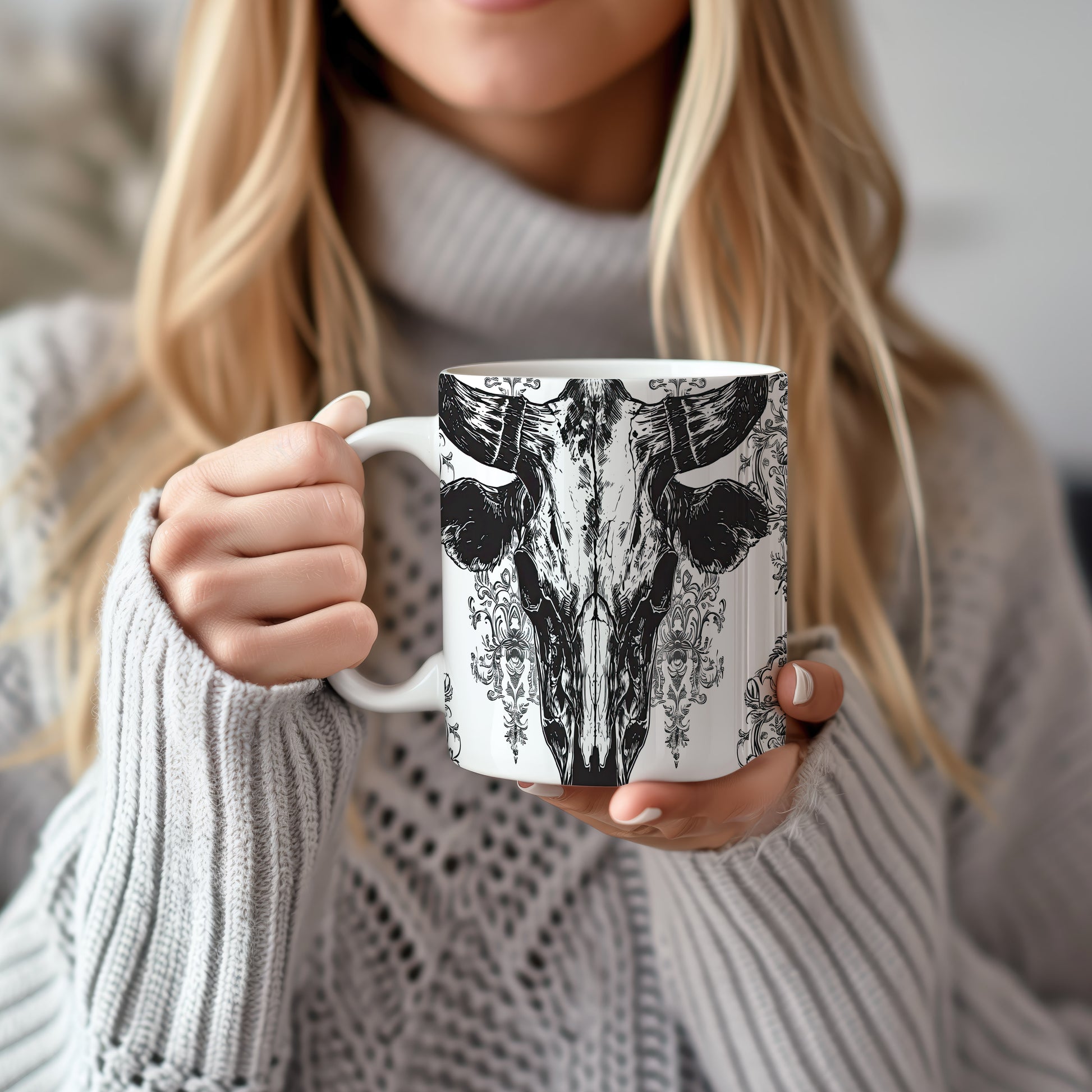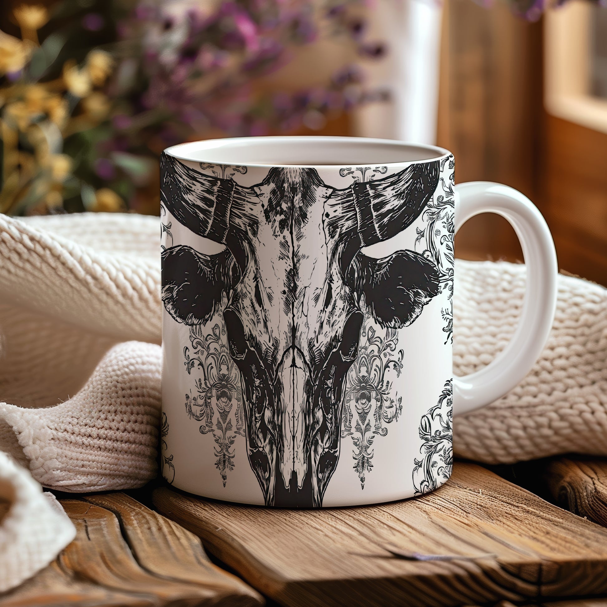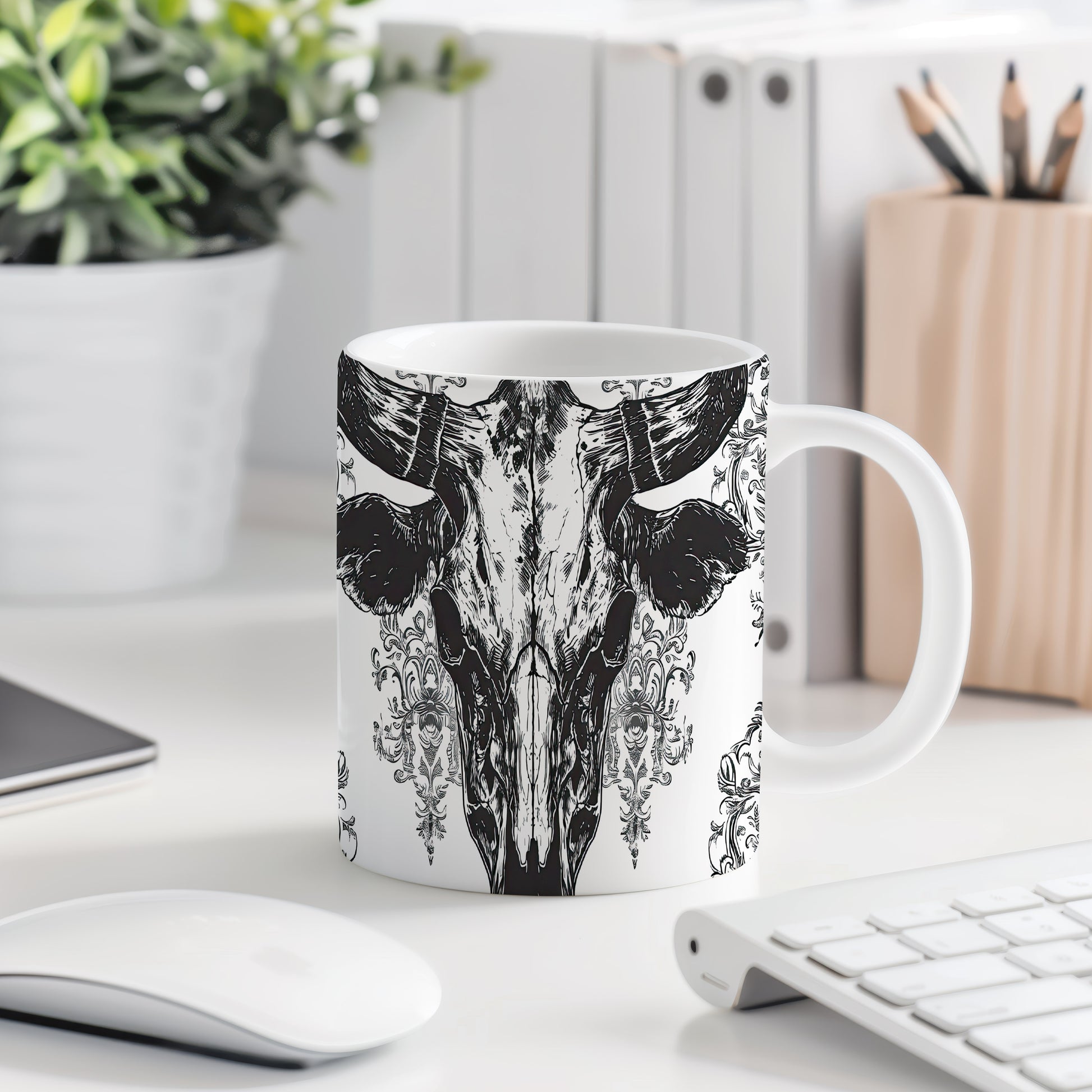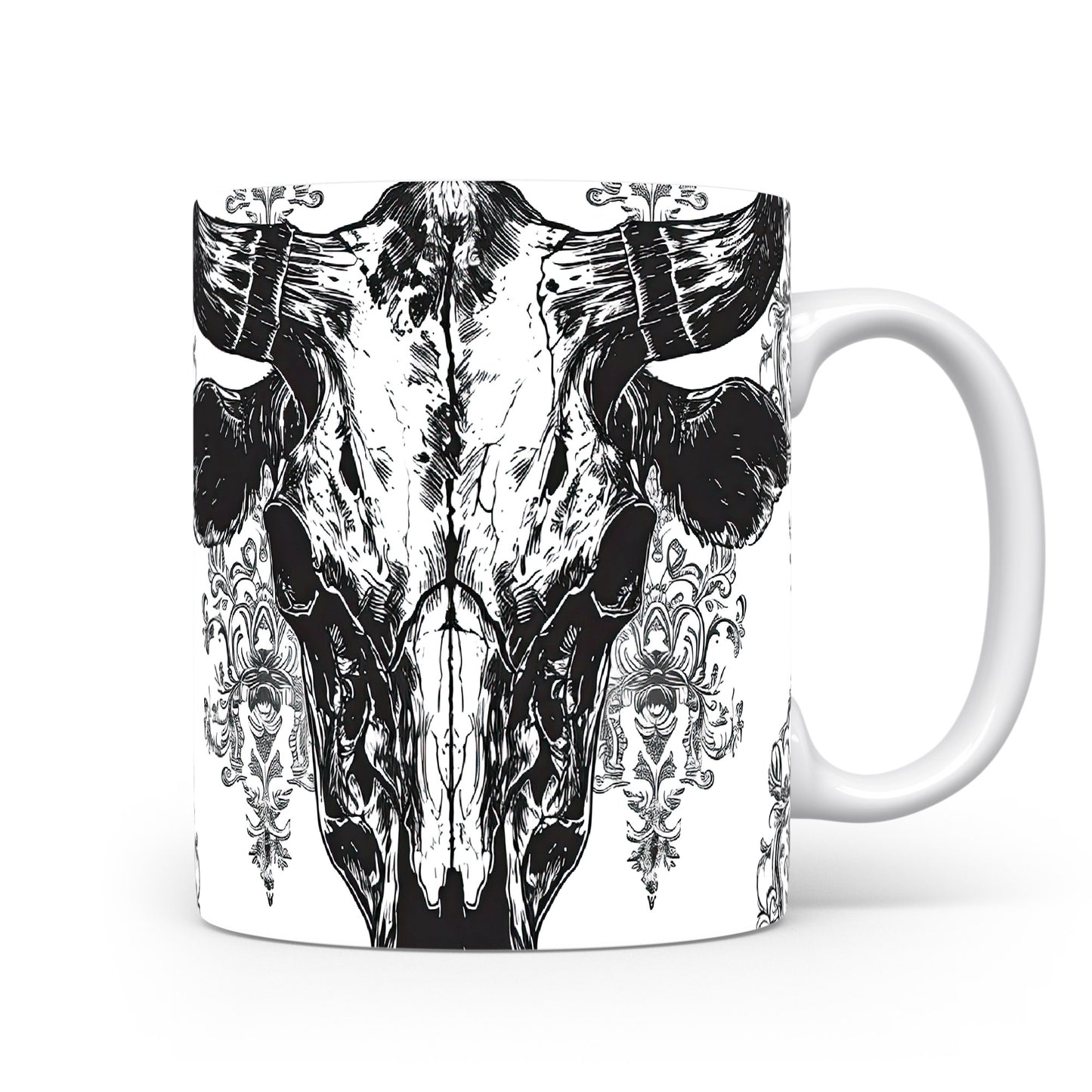 Hrnek s motivem kostry krávy přináší originální a stylový design. Je ideální pro milovníky zvířat a jedinečných kousků, skvěle se hodí jako dárek pro přátele nebo rodinu. Materiál: keramika. Objem: 330 ml. Vhodné do myčky i mikrovlnky. Tento hrnek vám přinese radost při každém doušku oblíbeného nápoje.