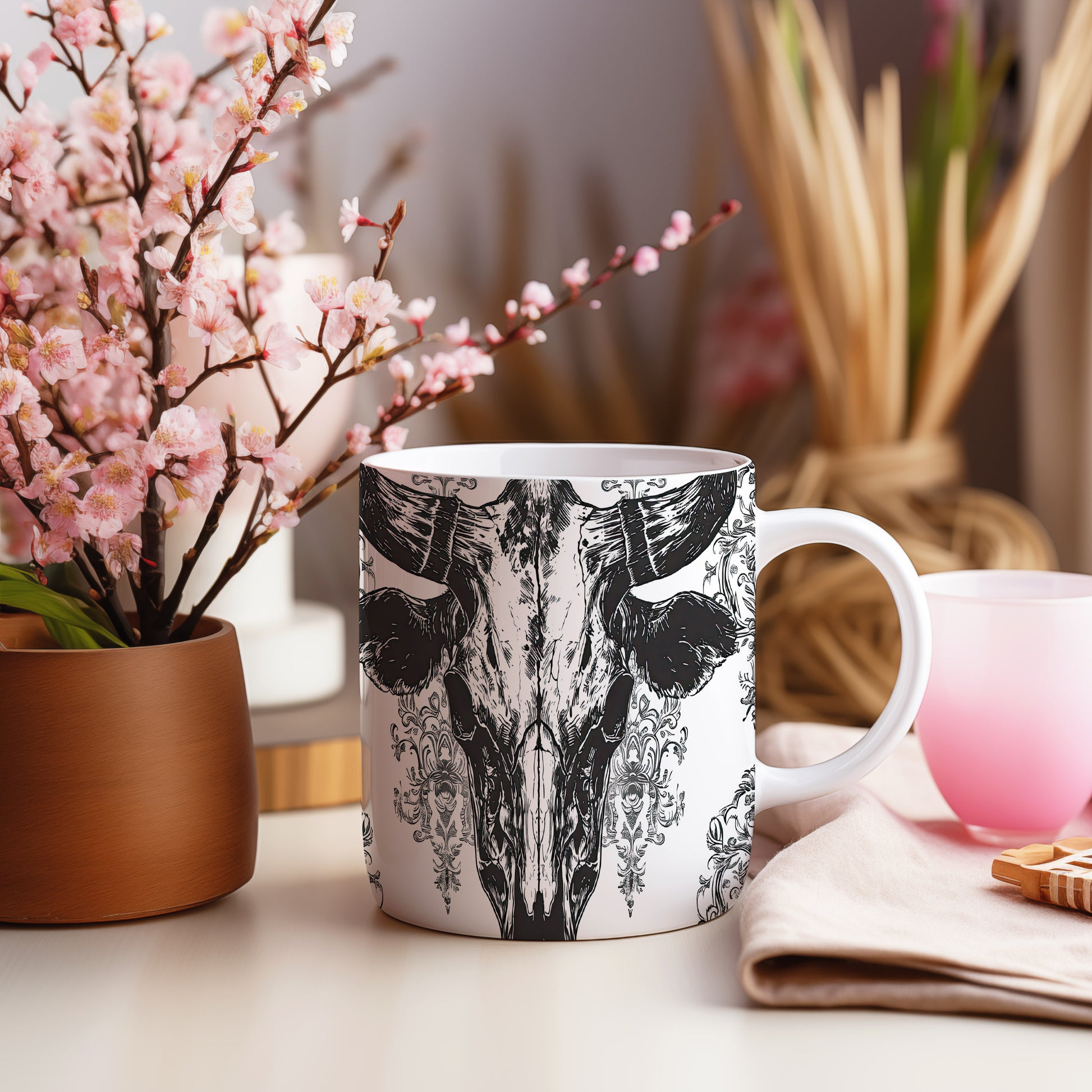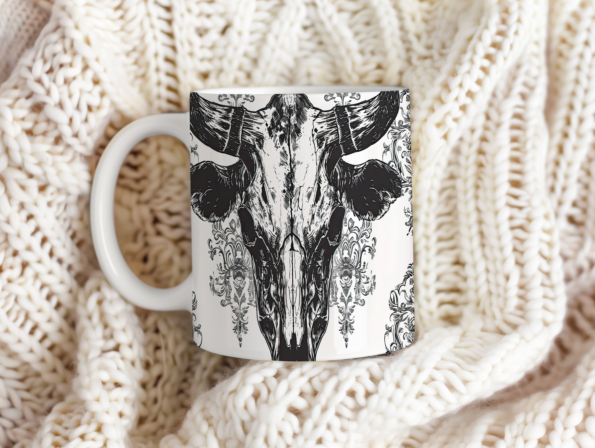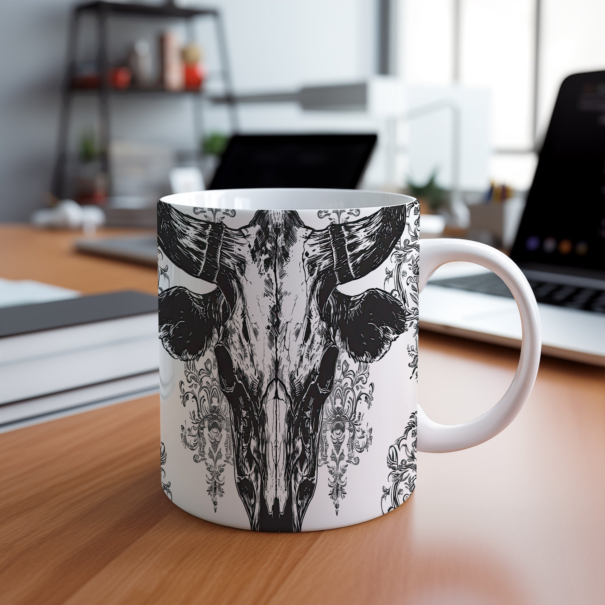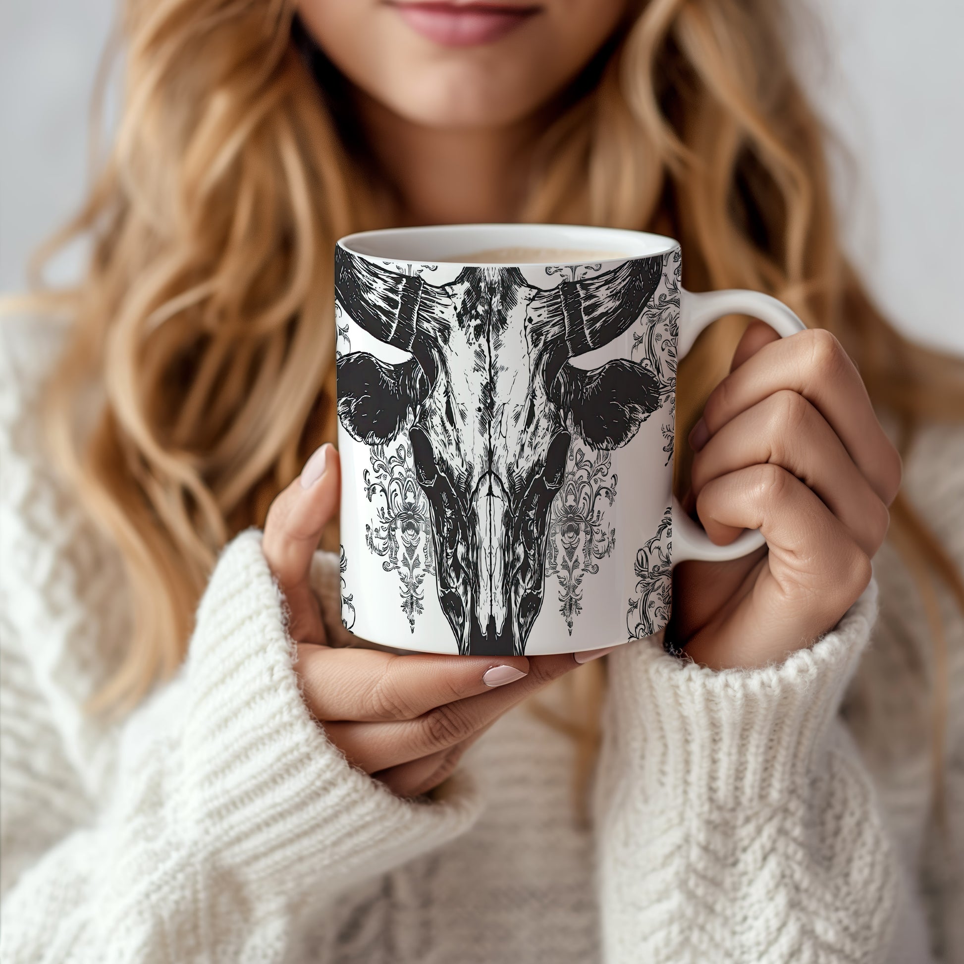 Hrnek s motivem kostry krávy přináší originální a stylový design. Je ideální pro milovníky zvířat a jedinečných kousků, skvěle se hodí jako dárek pro přátele nebo rodinu. Materiál: keramika. Objem: 330 ml. Vhodné do myčky i mikrovlnky. Tento hrnek vám přinese radost při každém doušku oblíbeného nápoje.