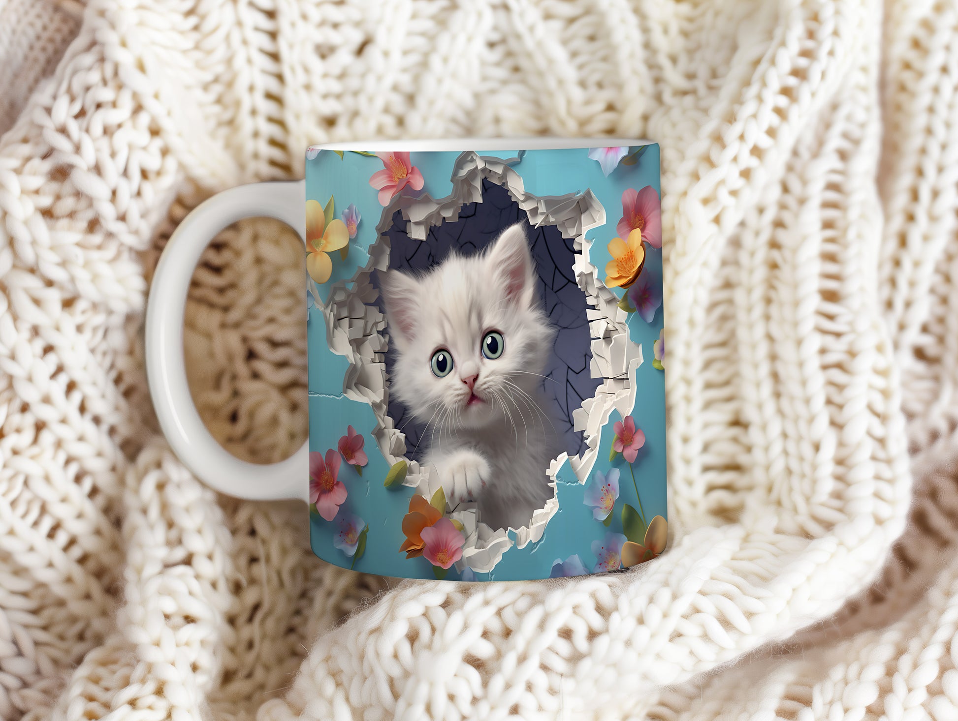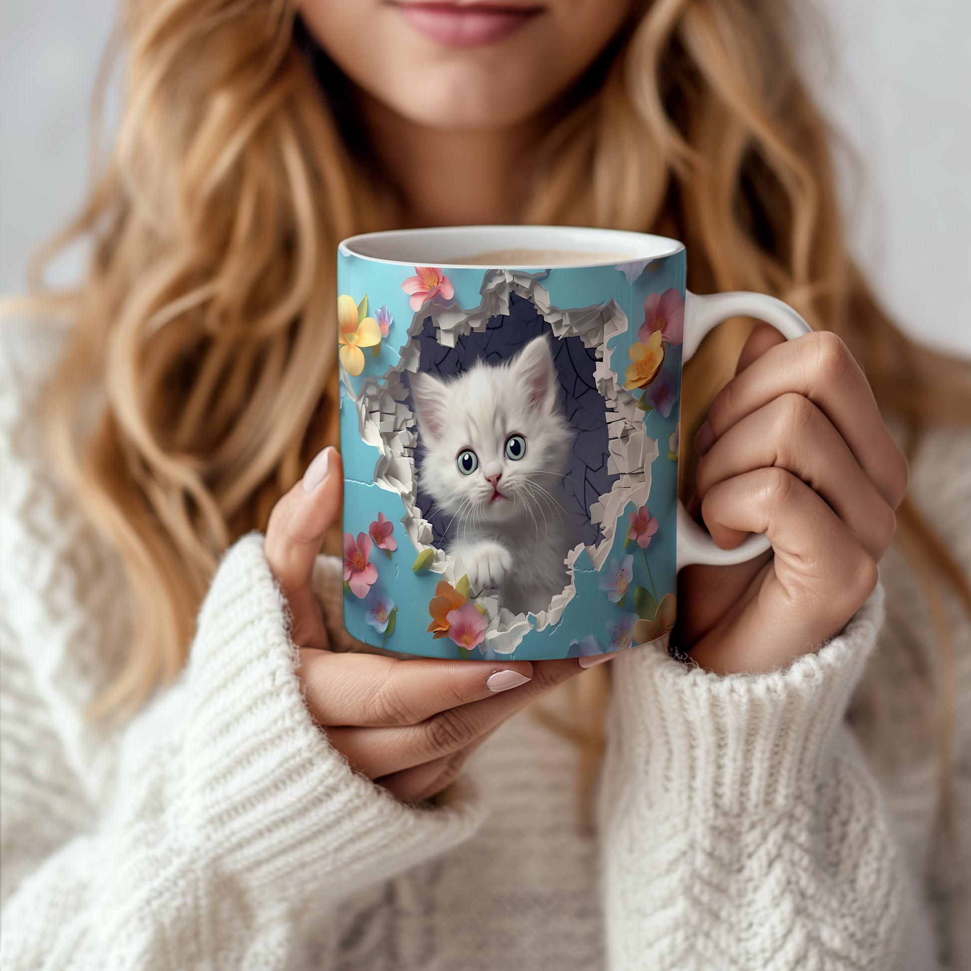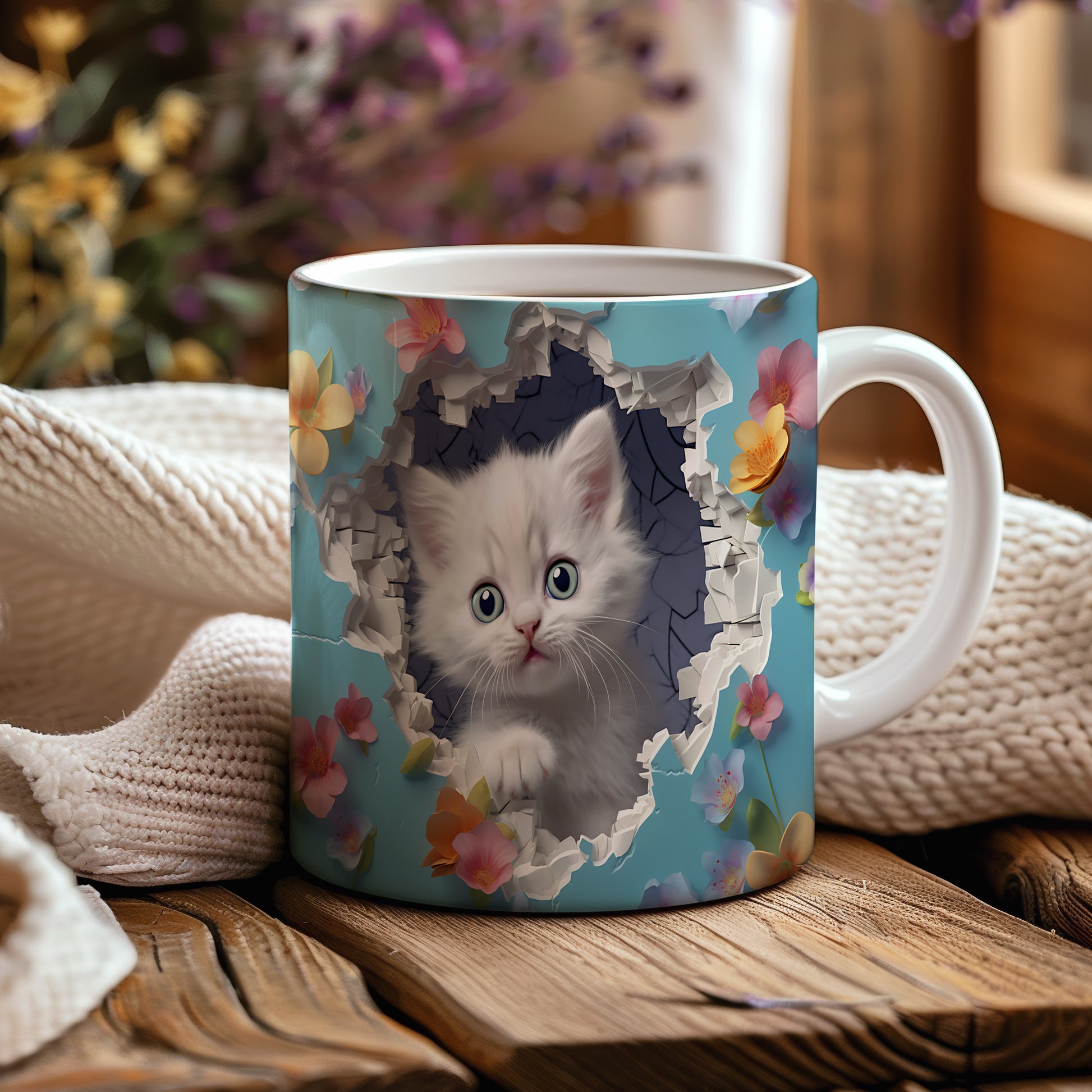 Tento keramický hrnek s motivem bílého koťátka a barevných květin přináší do vašeho dne radost a svěžest. Je ideální pro milovníky koček a květin, skvělý tip na dárek pro přátele nebo rodinu. Materiál: keramika. Objem: 330 ml. Vhodné do myčky i mikrovlnky. Díky svému designu se stane oblíbeným společníkem při každém doušku vaší oblíbené kávy nebo čaje.