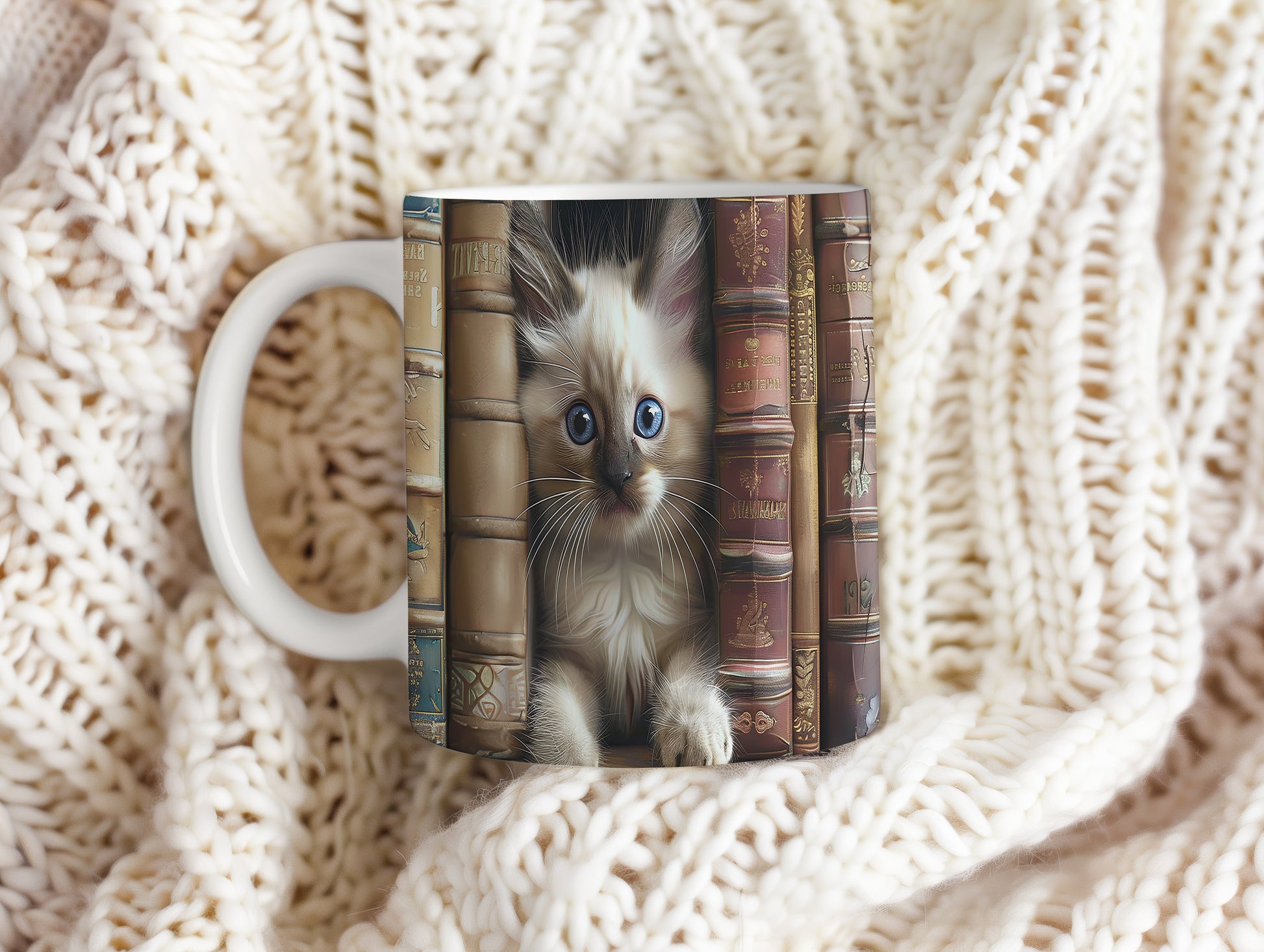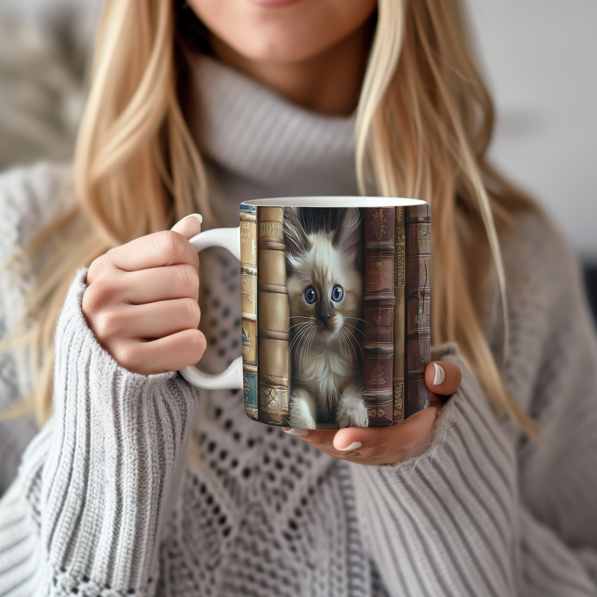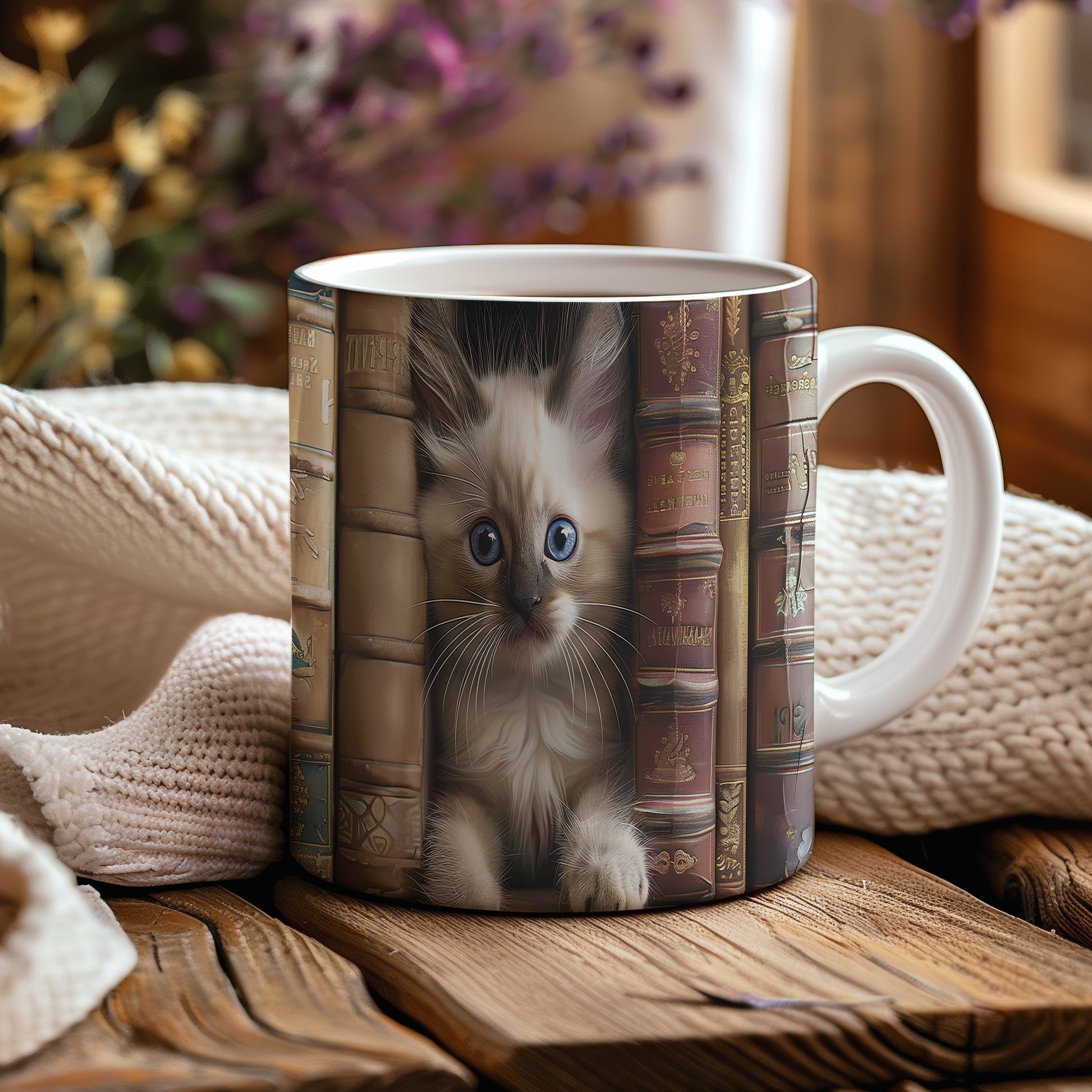 Tento hrnek s motivem roztomilého koťátka mezi knihami je ideální pro milovníky koček a literatury. Skvělý dárek pro každého, kdo si rád vychutná šálek čaje nebo kávy při čtení. Materiál: keramika. Objem: 330 ml. Vhodné do myčky i mikrovlnky. Díky svému designu přináší do každodenního pití radost a útulnost.