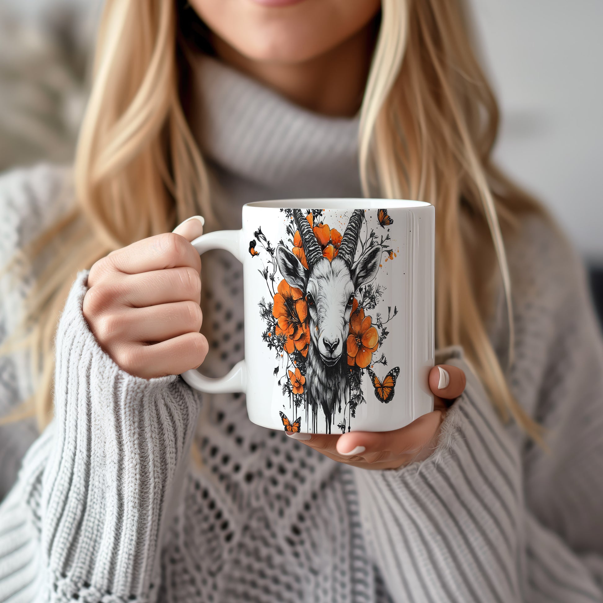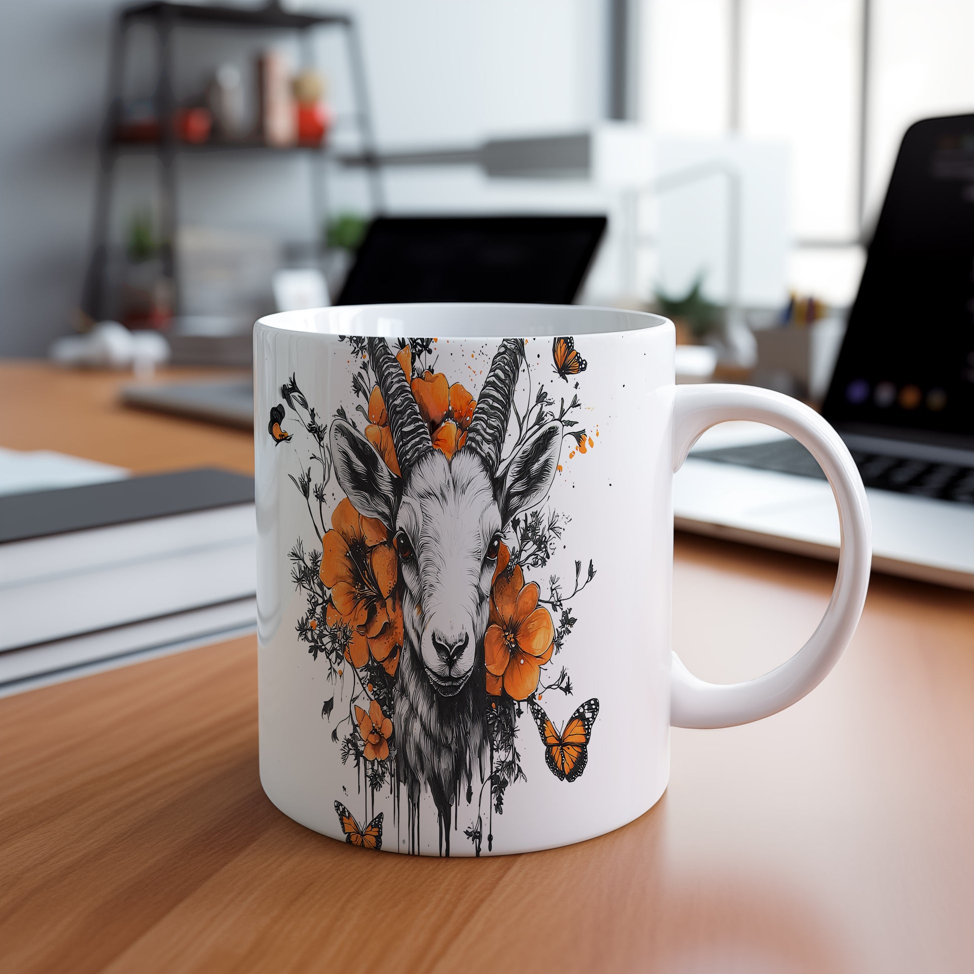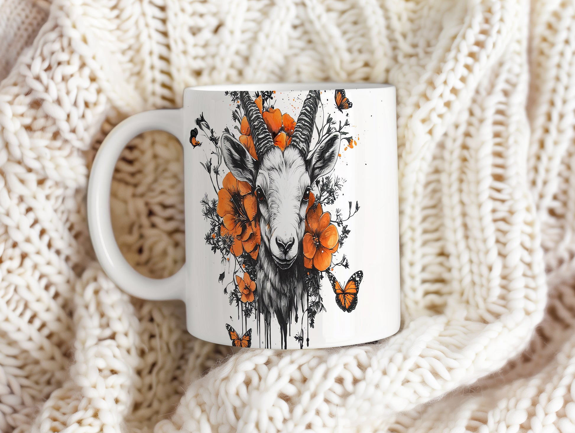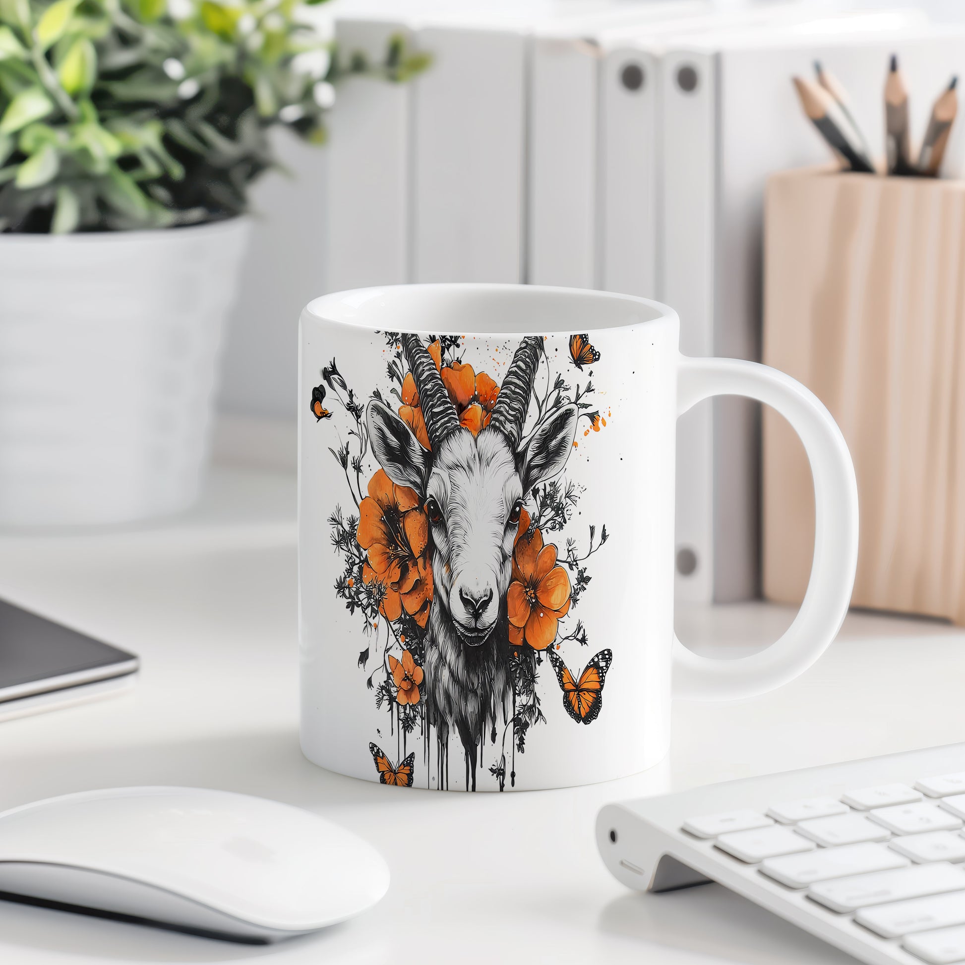 Hrnek s realistickým motivem kozy obklopené květinami a motýly. Tento originální design je ideální pro milovníky přírody a skvělý tip na dárek pro přátele. Materiál: keramika. Objem: 330 ml. Vhodné do myčky i mikrovlnky. Používání tohoto hrnku přinese do každého dne svěží nádech.