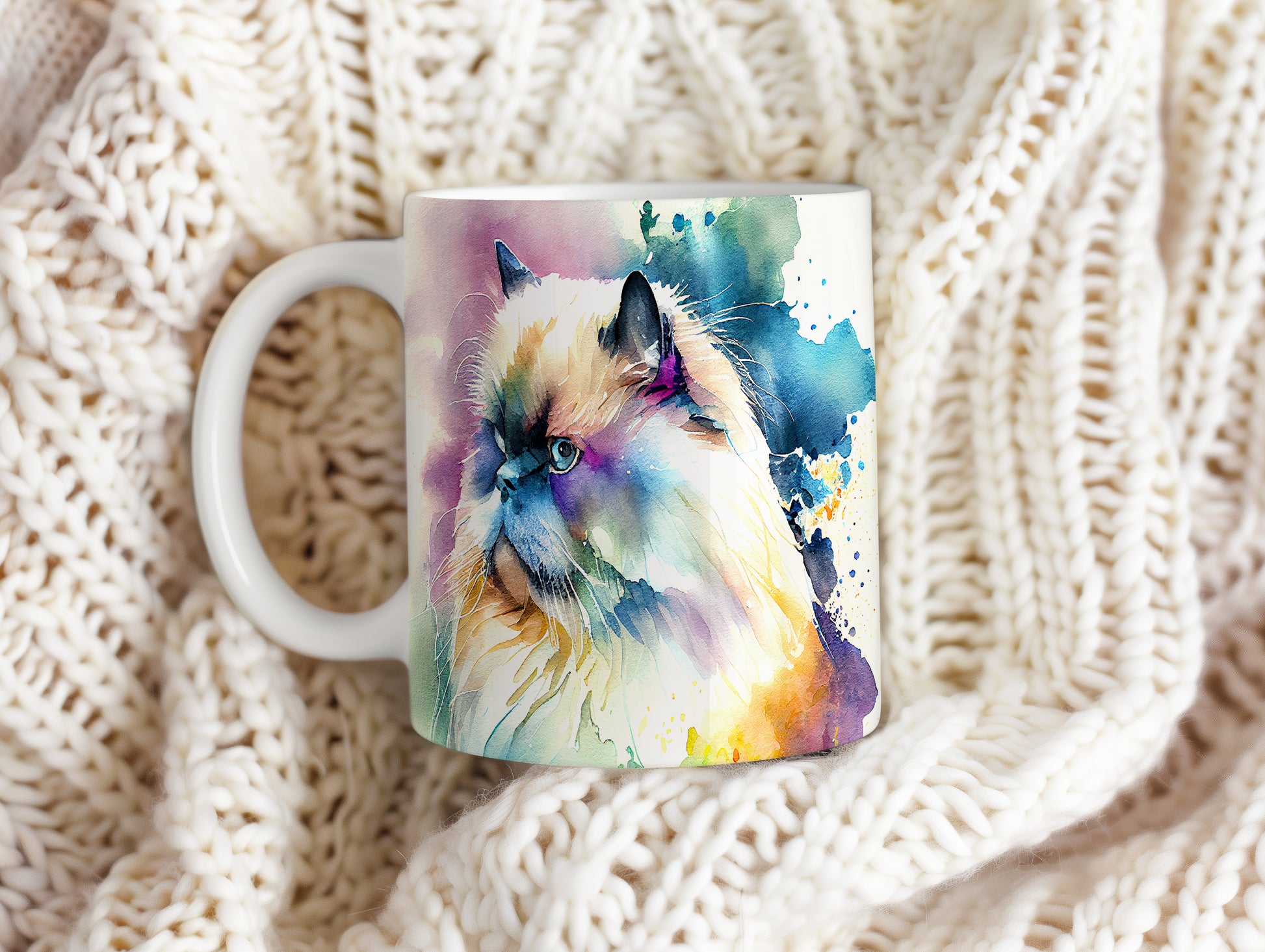 Hrnek s krásnou kočkou – akvarelovým motivem