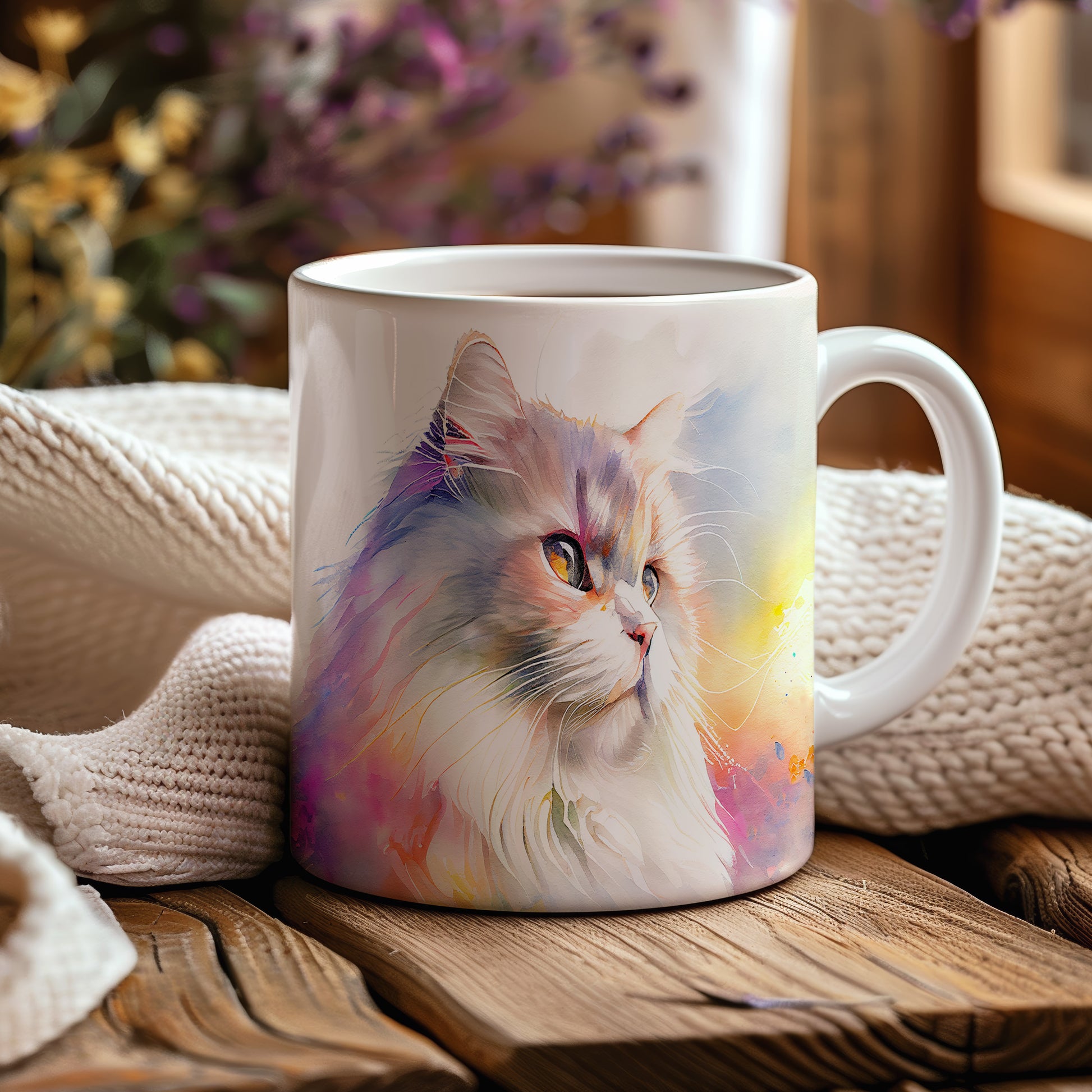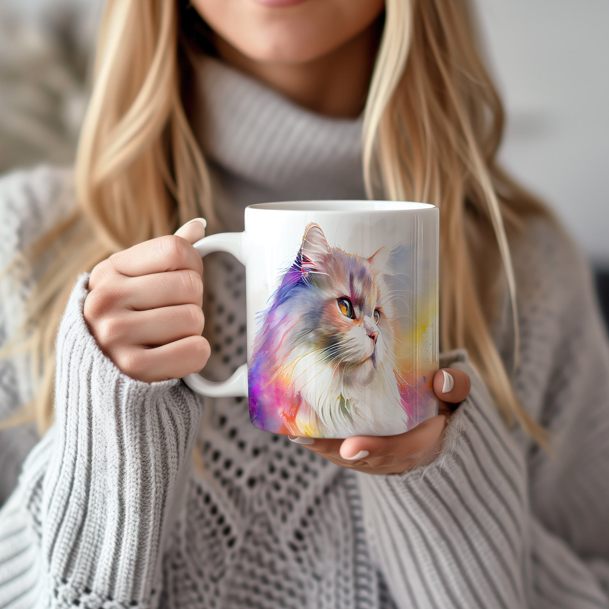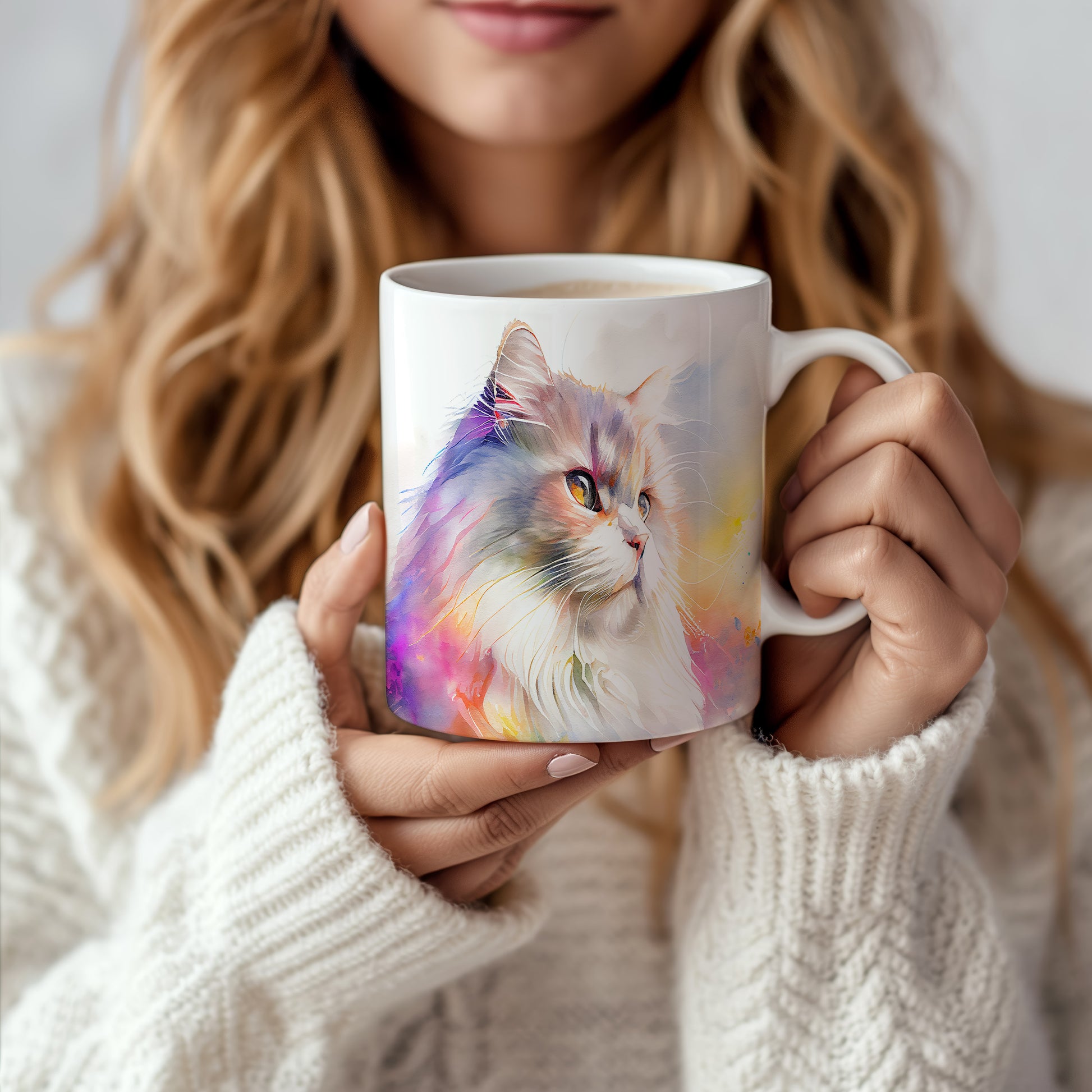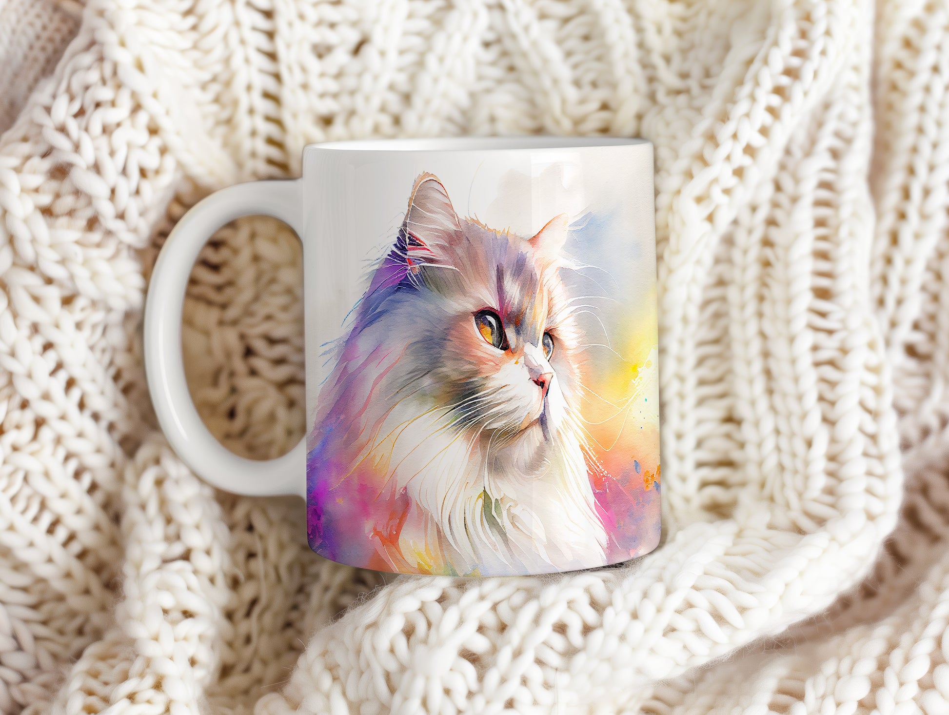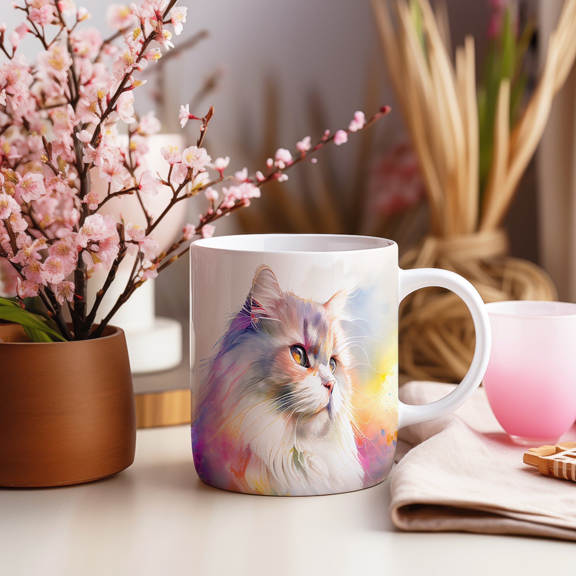 Hrnek s krásnou kočkou na barevném pozadí je skvělým kouskem pro milovníky těchto domácích mazlíčků. Tento hrnek potěší každého, kdo hledá originální dárek pro přátele nebo rodinu. Materiál: keramika. Objem: 330 ml. Vhodné do myčky i mikrovlnky. Užívejte si svůj oblíbený nápoj s tímto stylovým hrnkem, který přináší radost do každého dne.