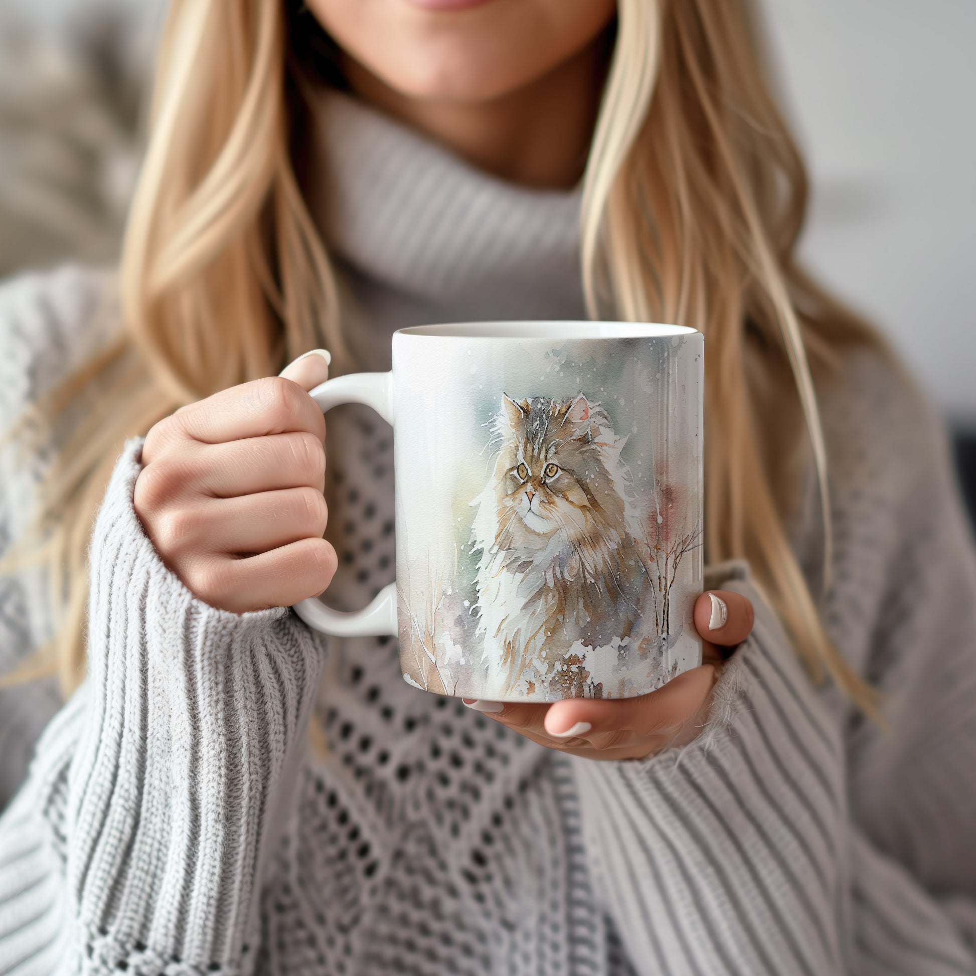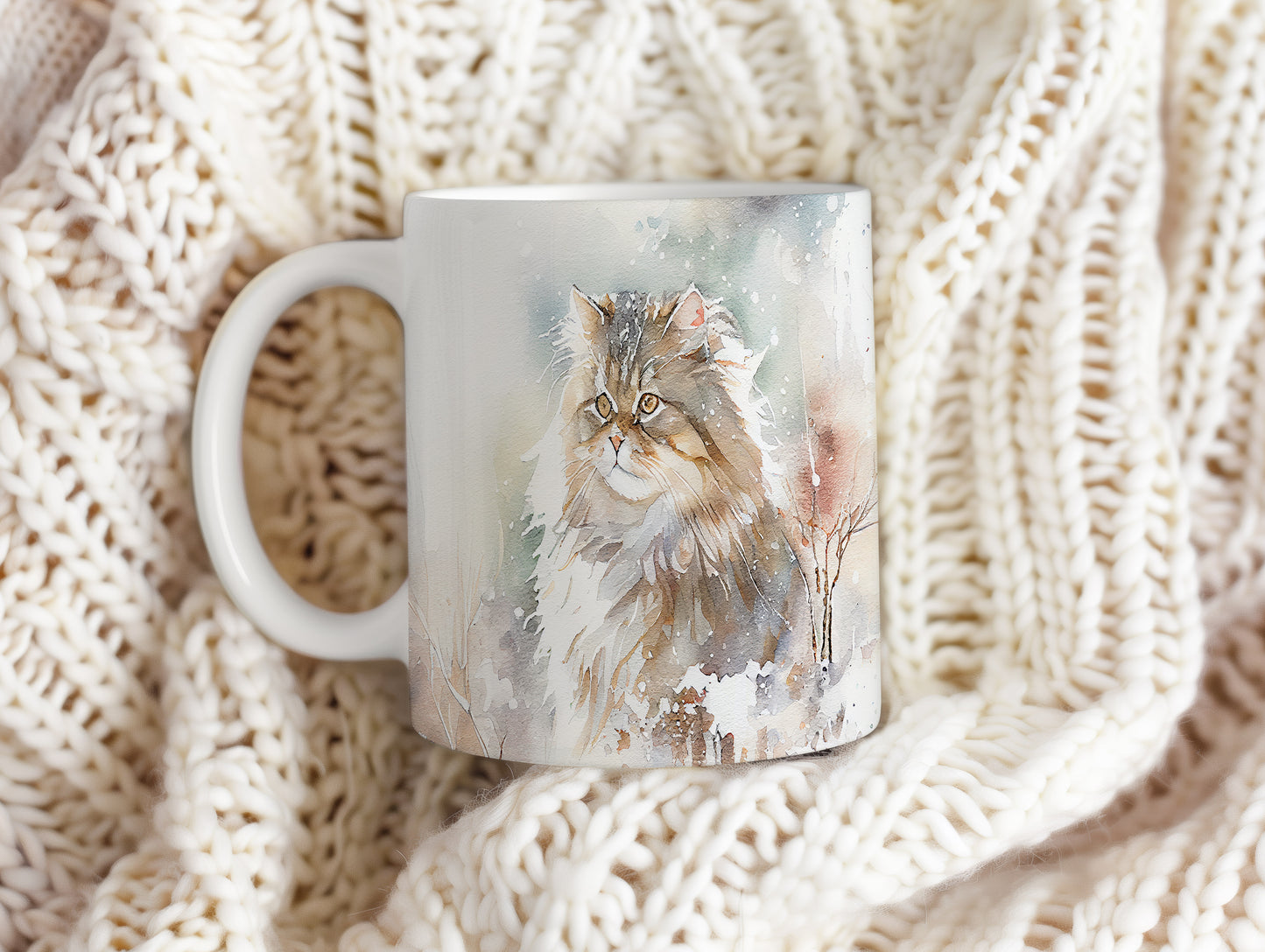 Hrnek s krásnou kočkou v akvarelovém stylu – akvarelovým motivem