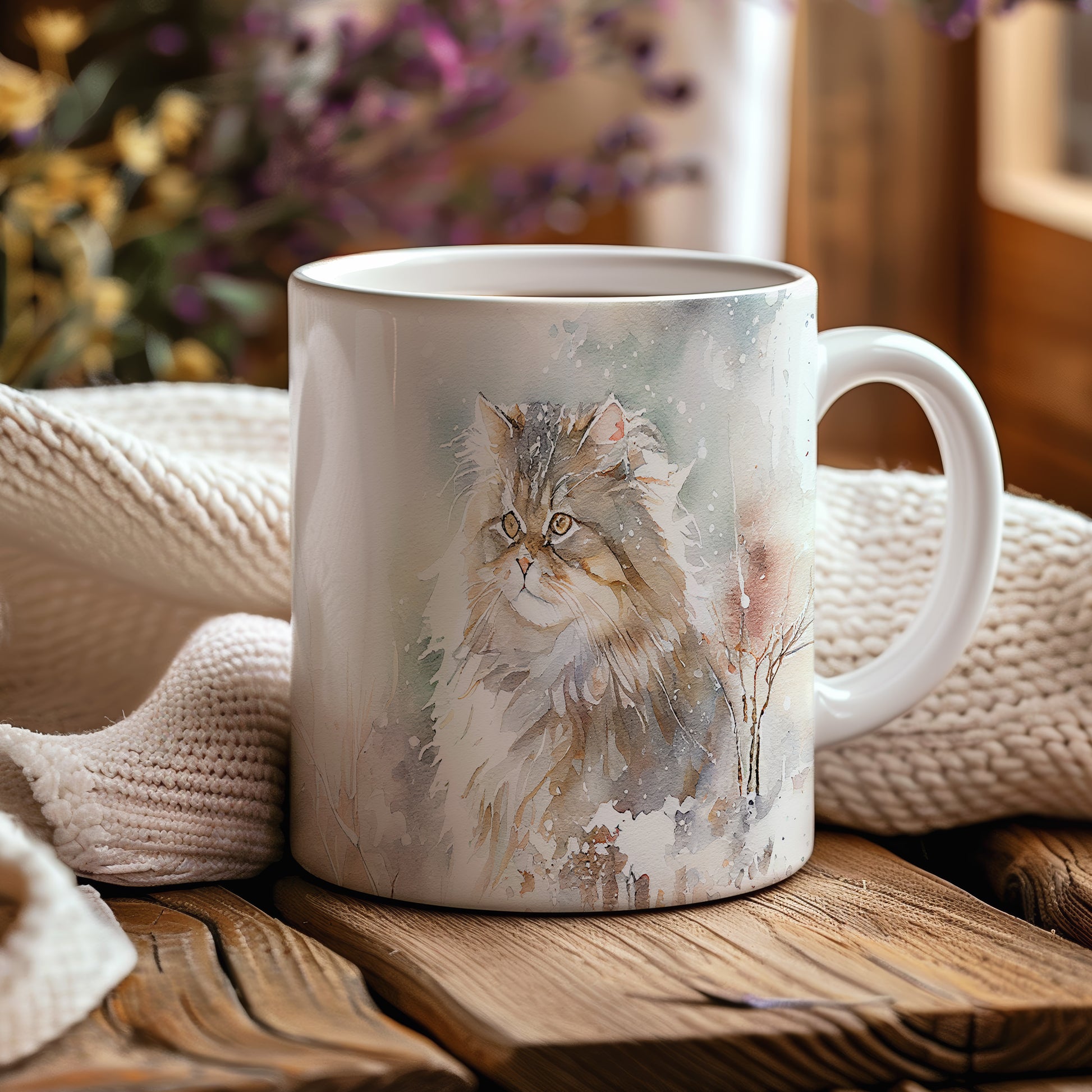 Hrnek s krásnou kočkou v akvarelovém stylu osloví všechny milovníky těchto elegantních zvířat. Je to skvělý dárek pro přátele nebo rodinu, kteří mají rádi kočky. Materiál: keramika. Objem: 330 ml. Vhodné do myčky i mikrovlnky. Tento hrnek přináší radost při každém doušku oblíbeného nápoje.