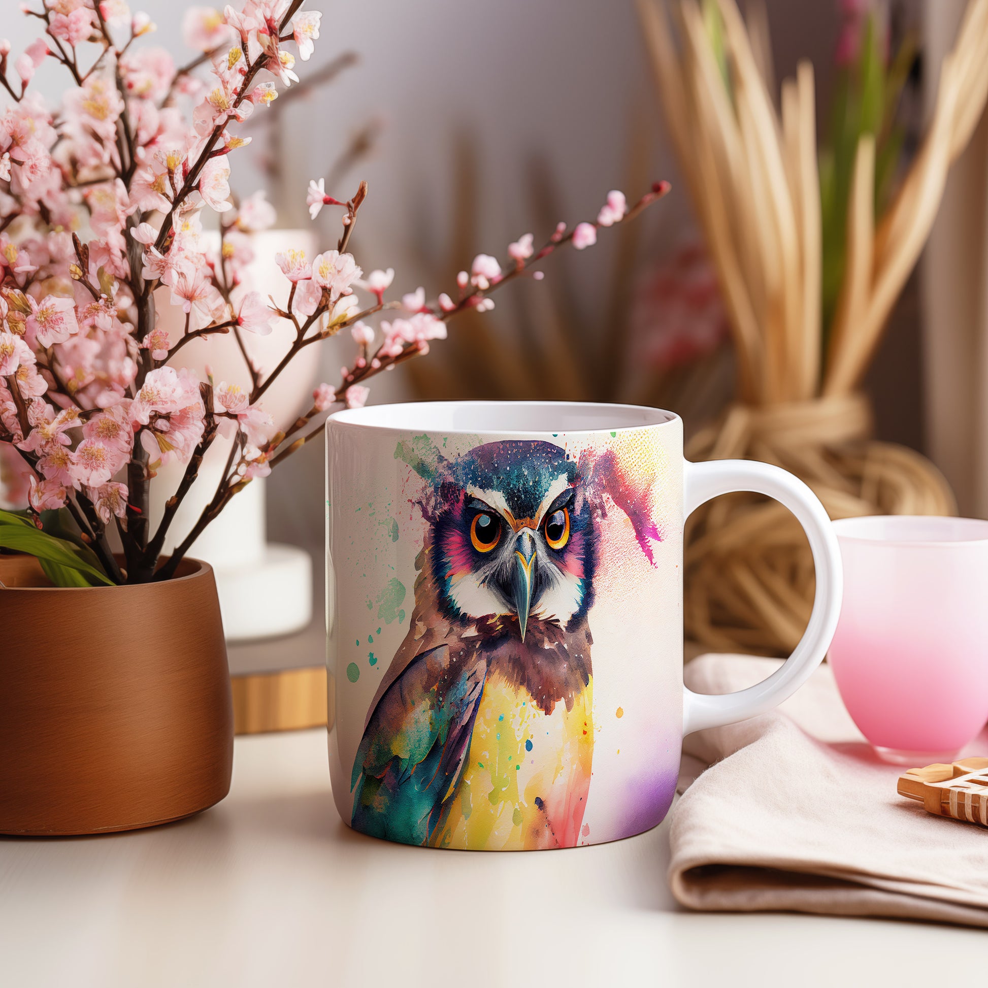 Hrnek s krásnou malovanou sovou