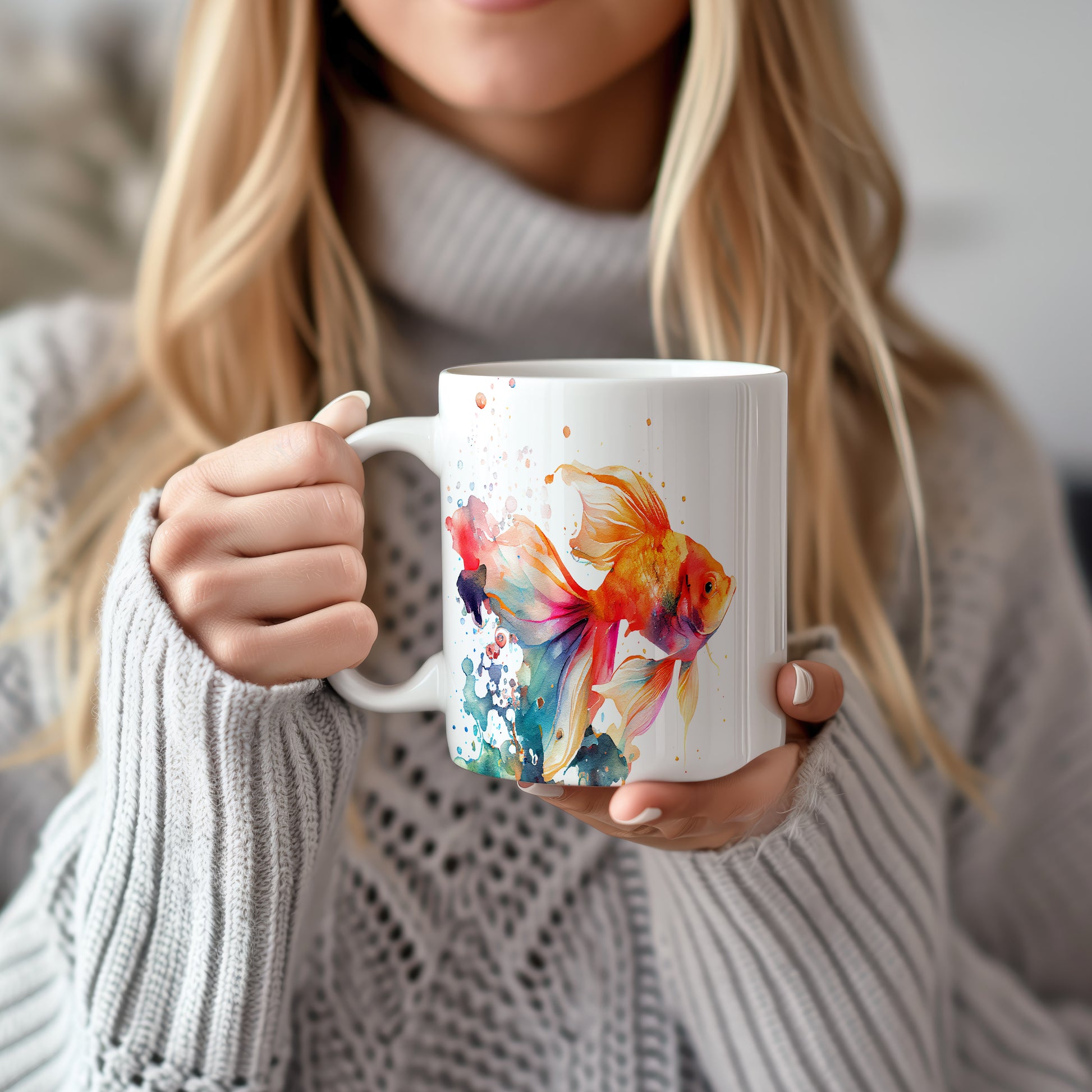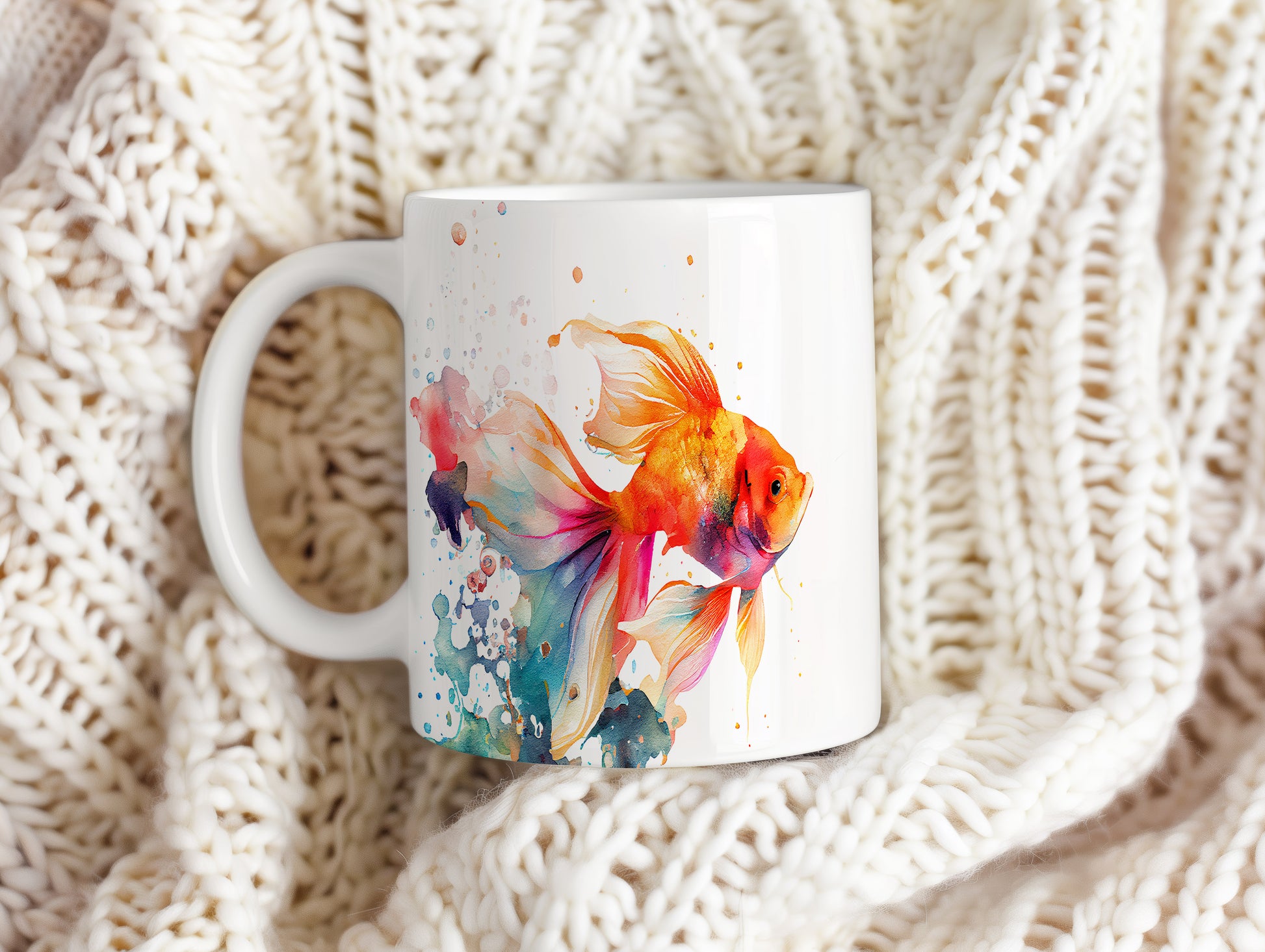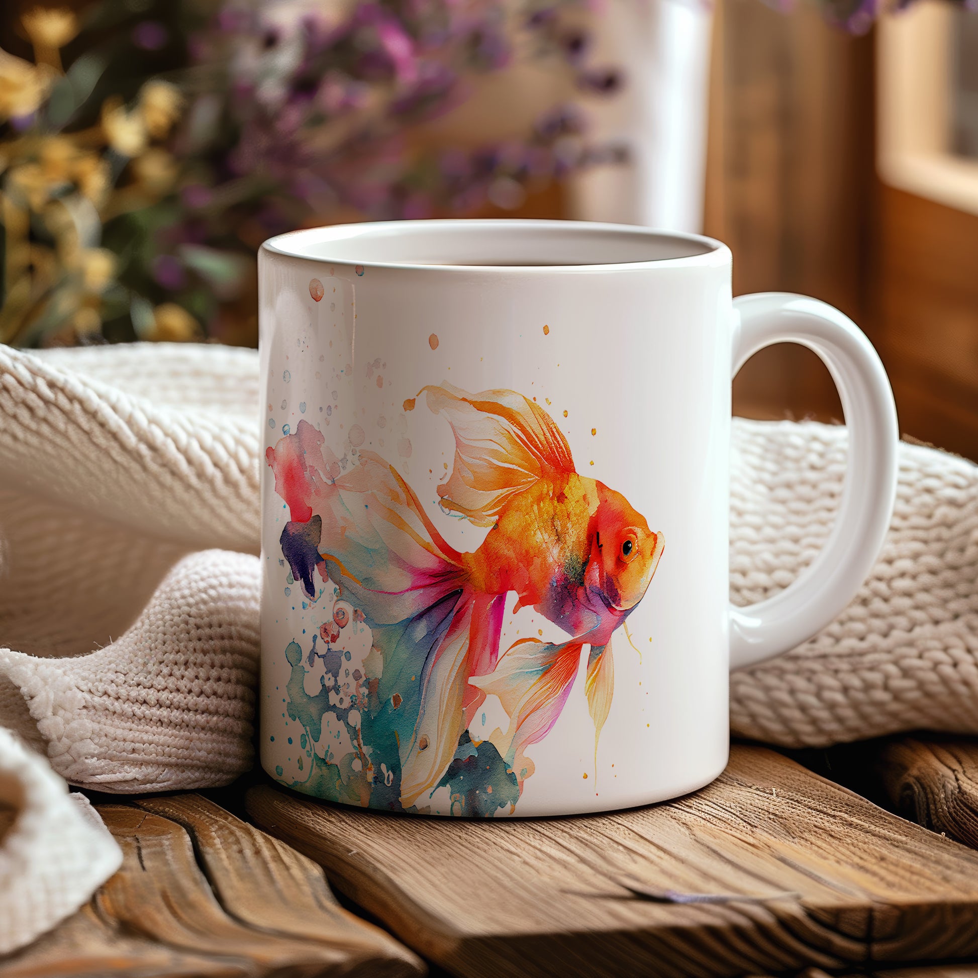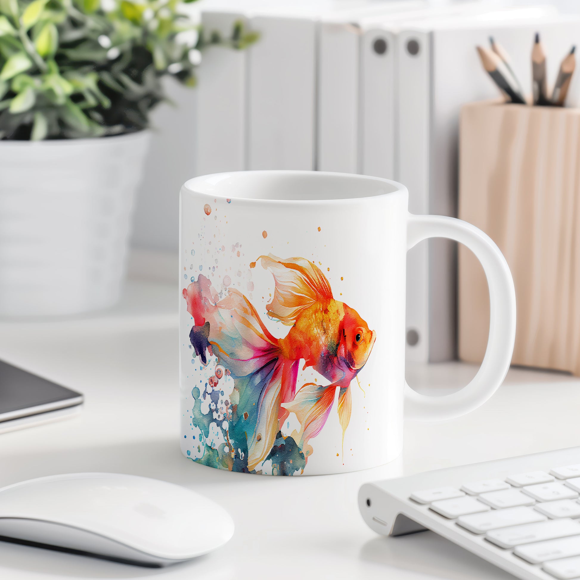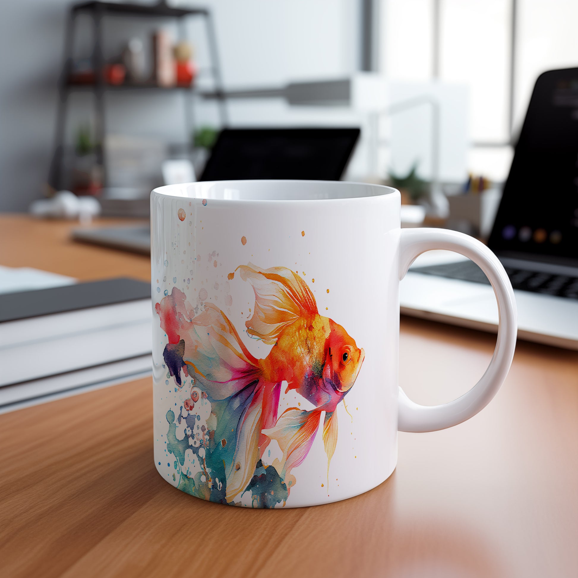 Tento hrnek s motivem zlaté rybky a barevného pozadí přináší do vašeho dne radost a veselí. Je ideální jako dárek pro milovníky moře nebo pro každého, kdo ocení originální design. Materiál: keramika. Objem: 330 ml. Vhodné do myčky i mikrovlnky. Používáním tohoto hrnku si užijete nejen skvělý vzhled, ale i pohodlné pití vašich oblíbených nápojů.