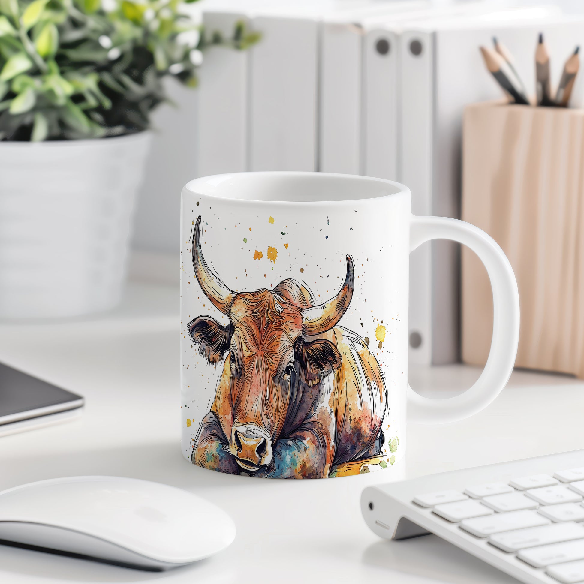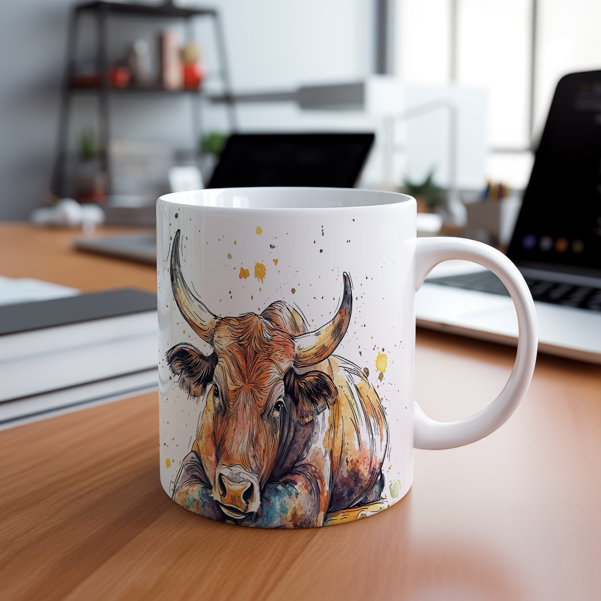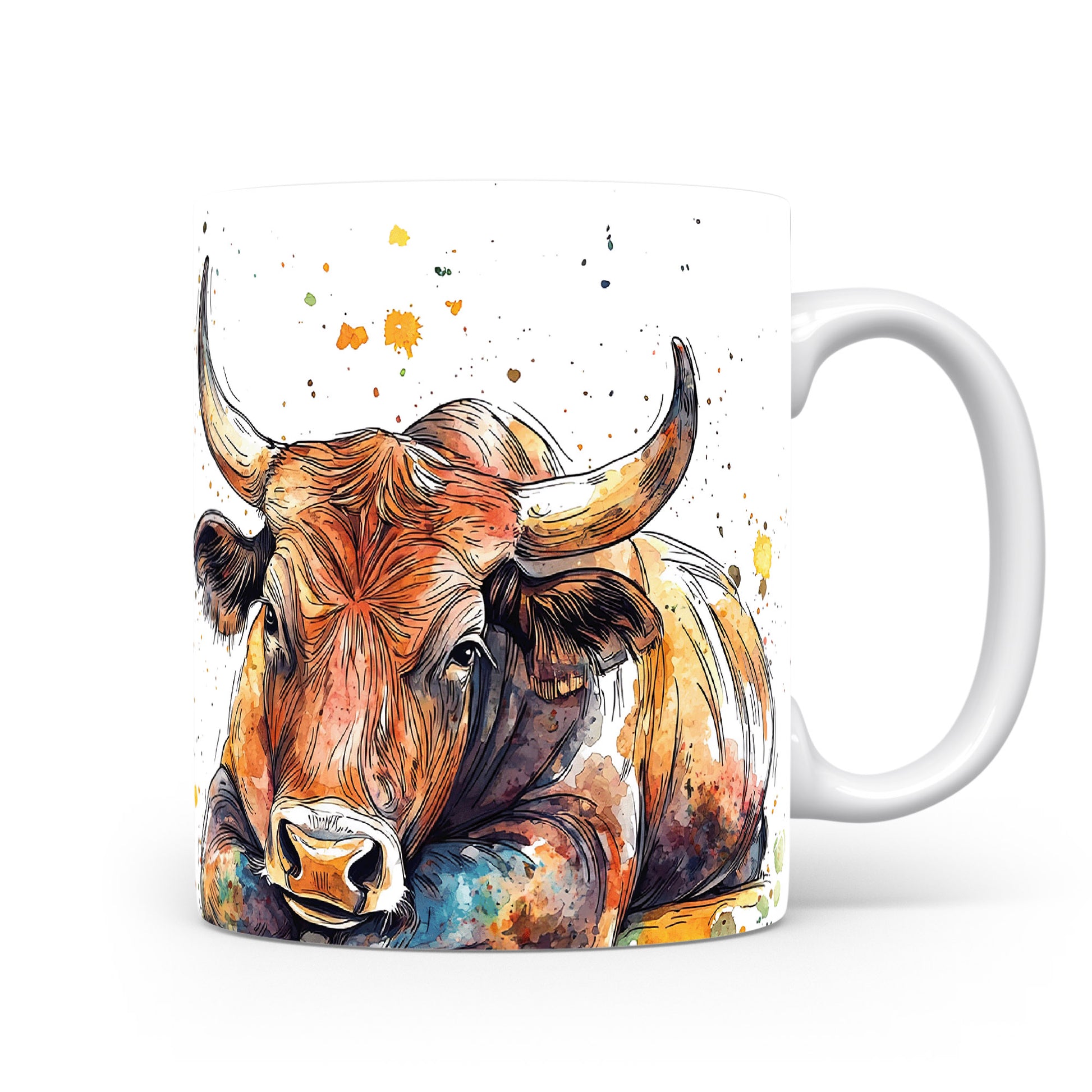 Keramický hrnek s ilustrací býka v barevných skvrnách. Tento hrnek je ideální pro milovníky zvířat a skvělým dárkem pro přátele nebo rodinu. Materiál: keramika. Objem: 330 ml. Vhodné do myčky i mikrovlnky. Používání tohoto hrnku přináší radost a oživí každé pití.