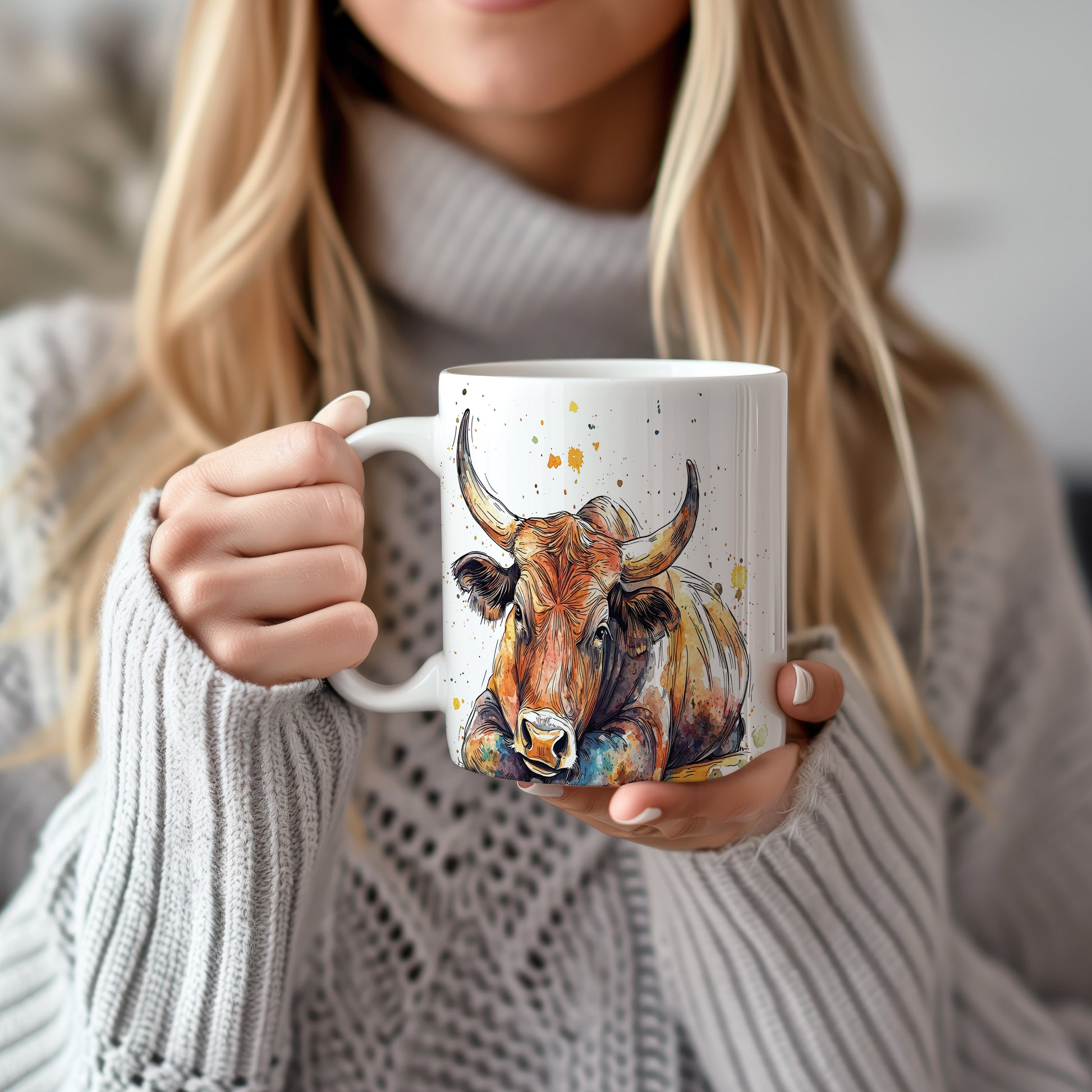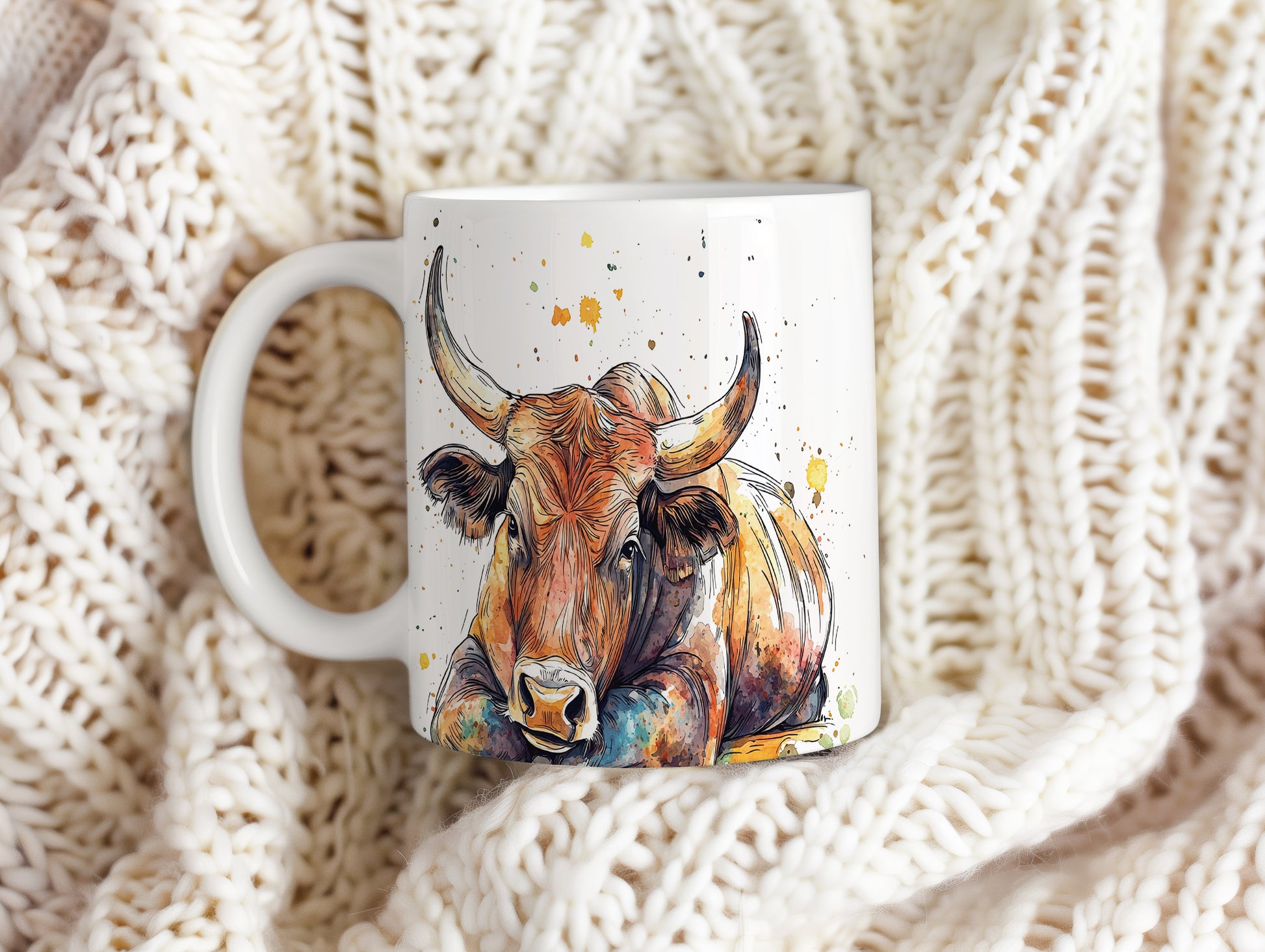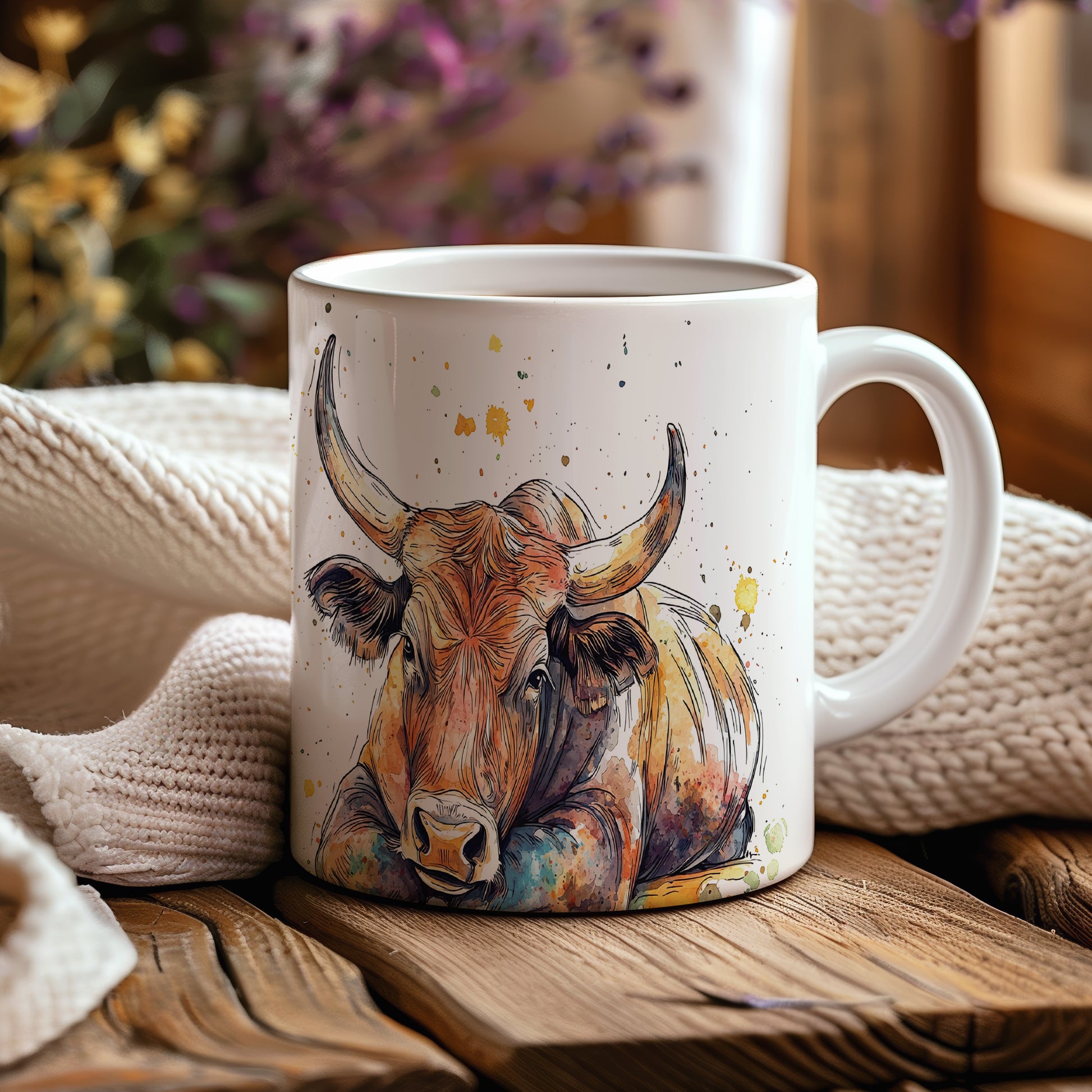 Keramický hrnek s ilustrací býka v barevných skvrnách. Tento hrnek je ideální pro milovníky zvířat a skvělým dárkem pro přátele nebo rodinu. Materiál: keramika. Objem: 330 ml. Vhodné do myčky i mikrovlnky. Používání tohoto hrnku přináší radost a oživí každé pití.