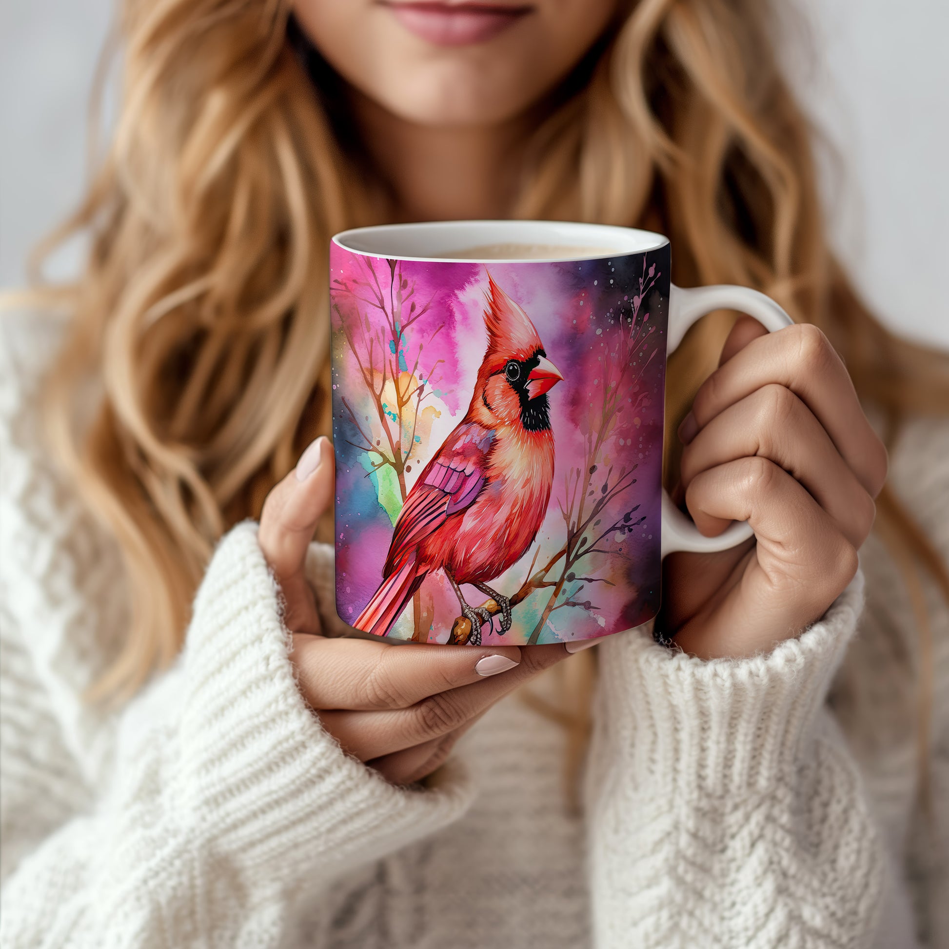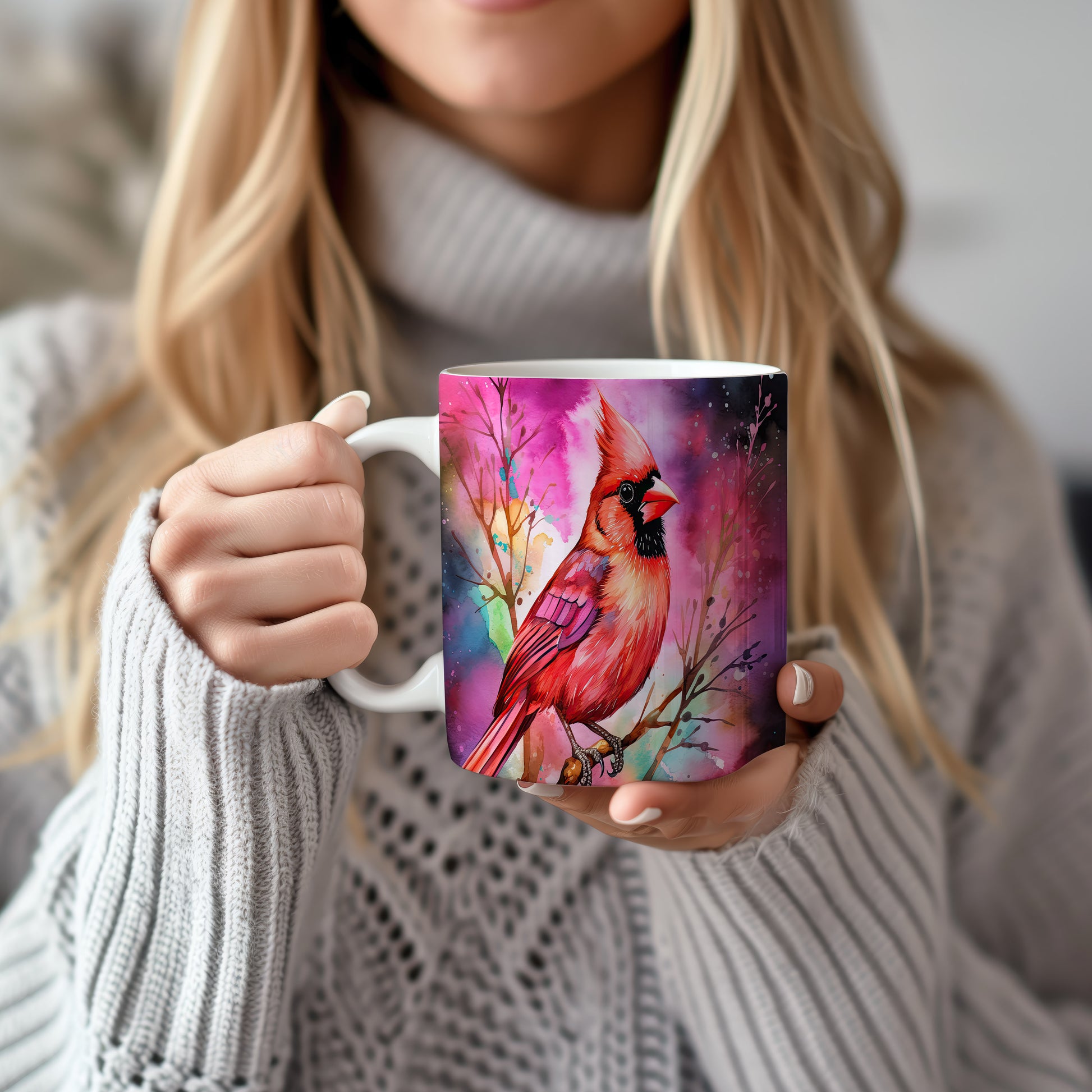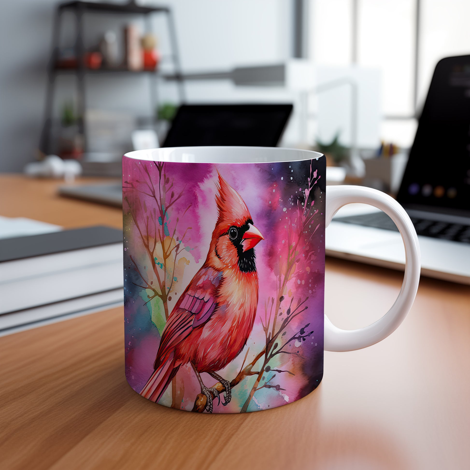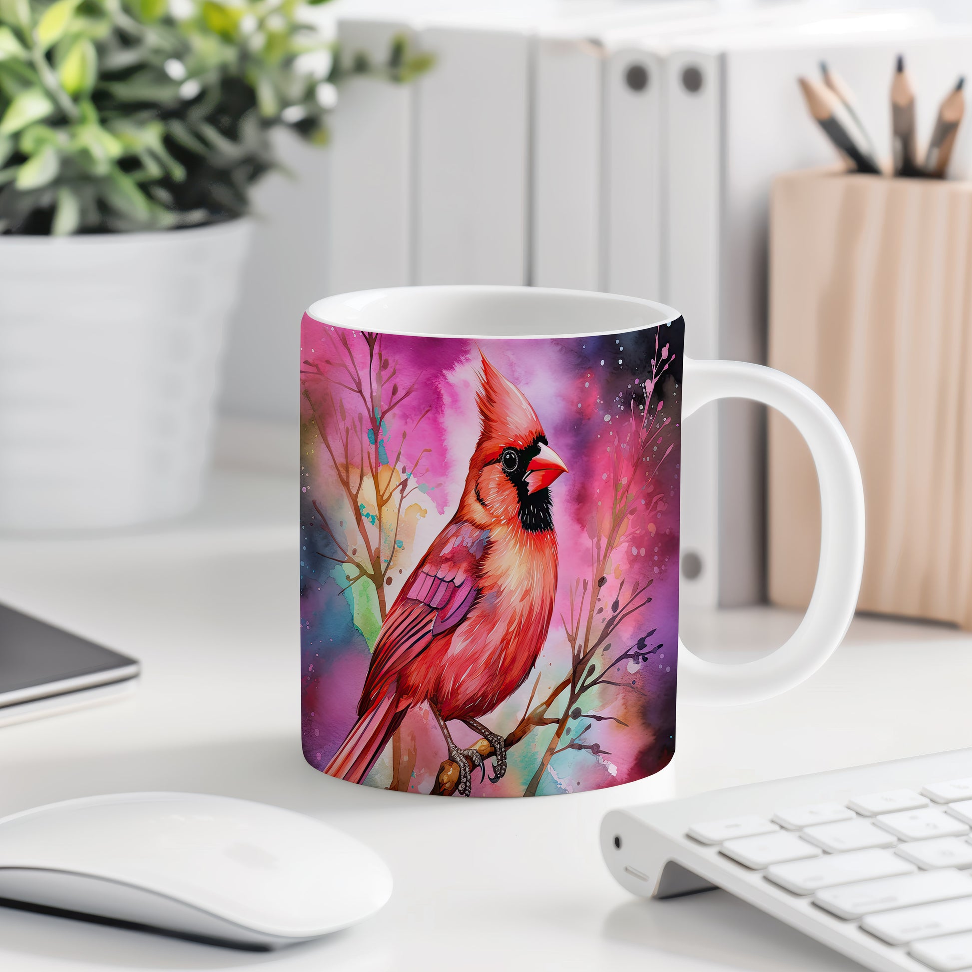 Keramický hrnek s motivem červeného ptáka na větvi, obklopeného barevným pozadím. Tento hrnek je ideální pro milovníky přírody a skvělým dárkem pro každého, kdo ocení krásu přírody. Materiál: keramika. Objem: 330 ml. Vhodné do myčky i mikrovlnky. Používání tohoto hrnku přináší radost z každého doušku.