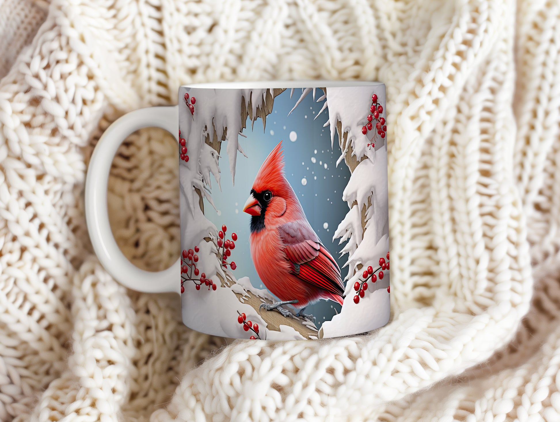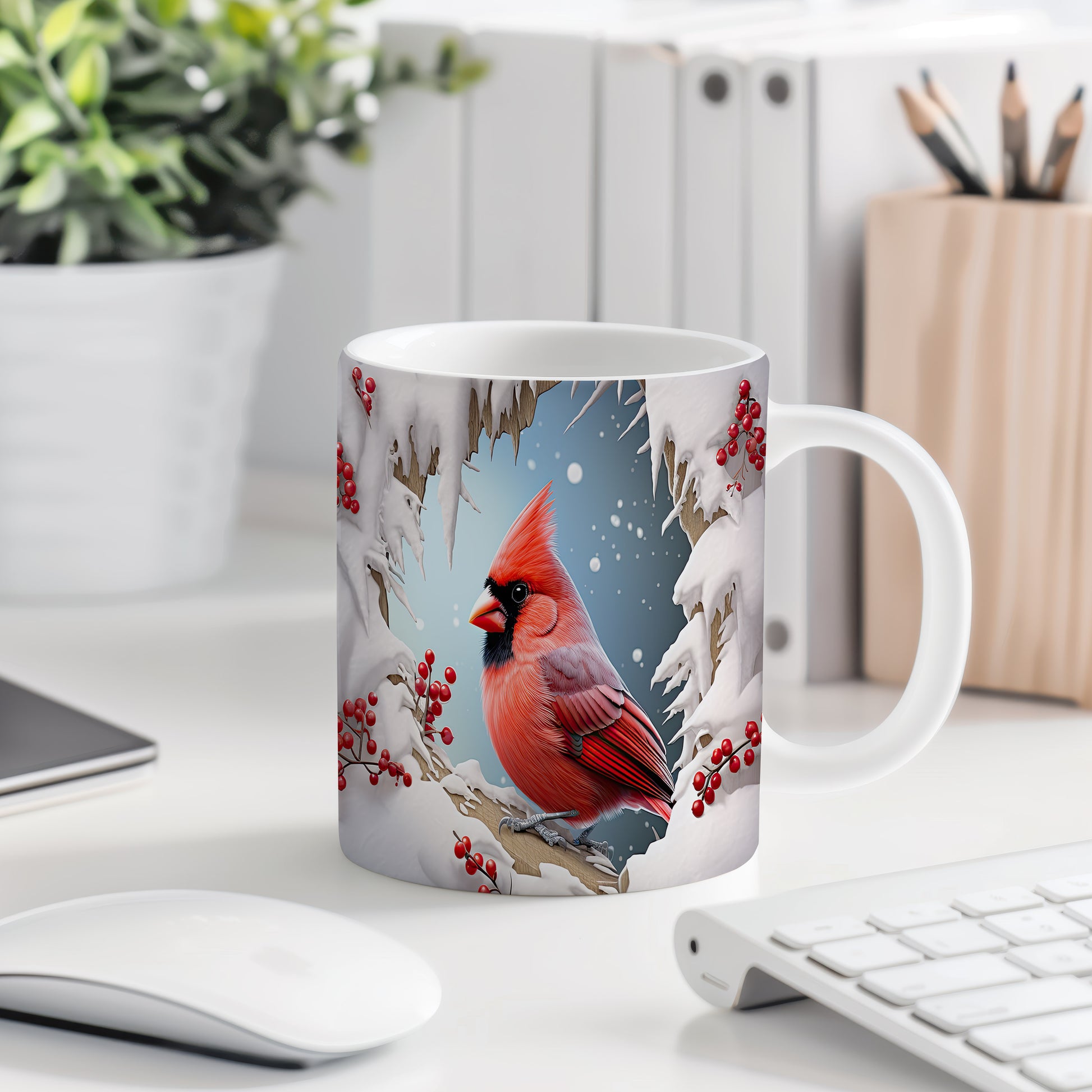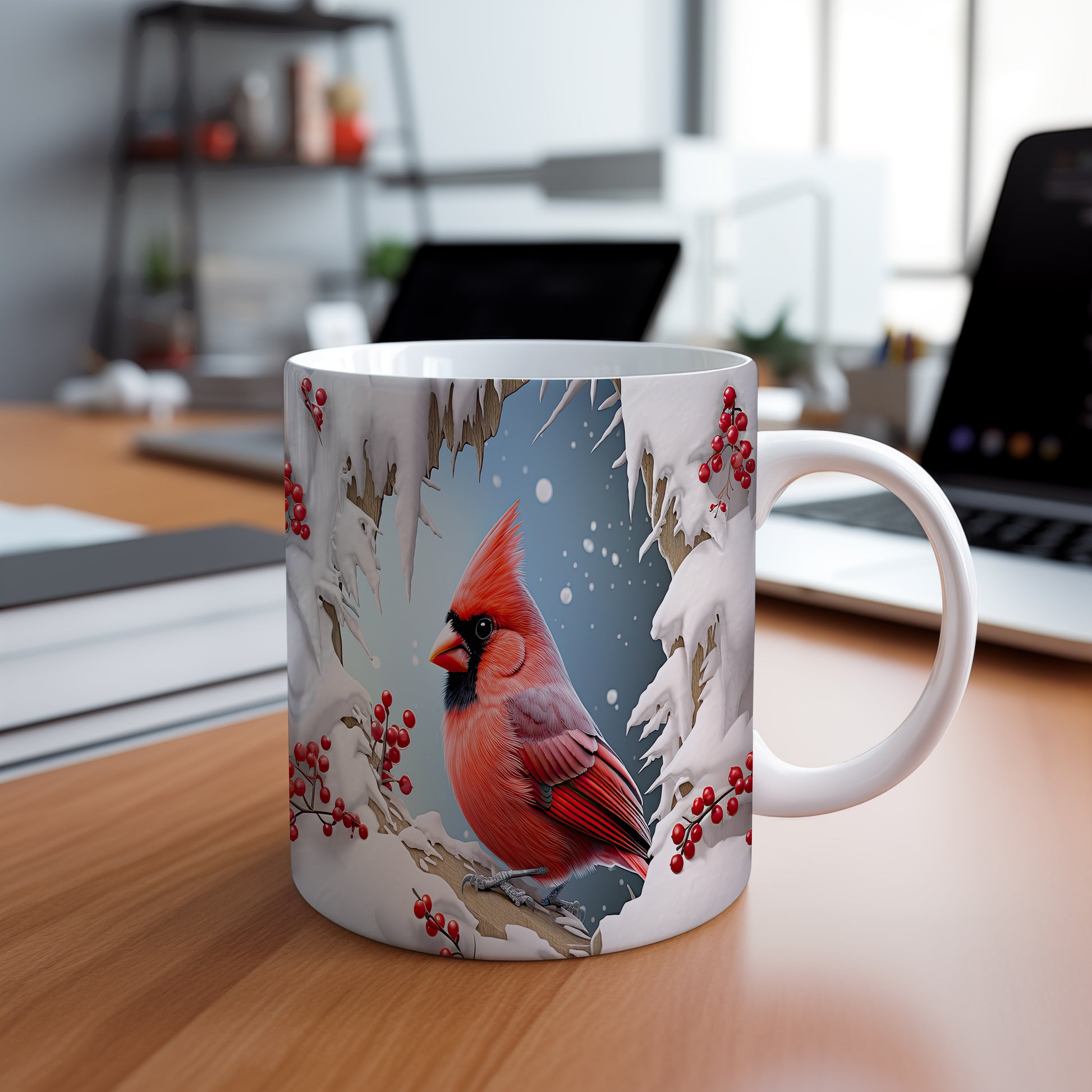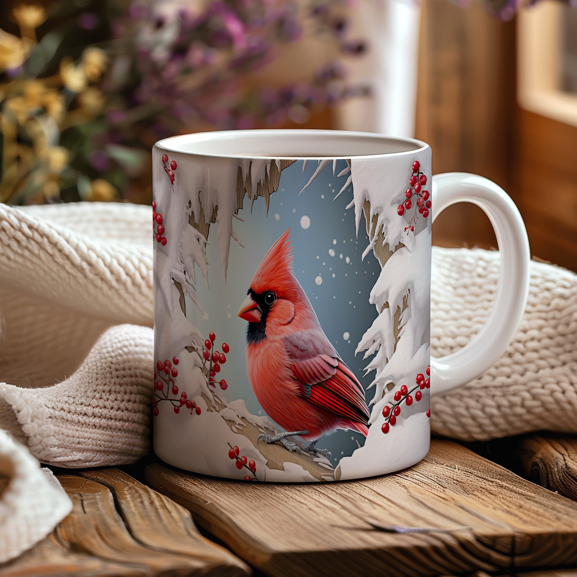 Tento hrnek zobrazuje nádhernou ilustraci kardinala, který sedí na větvi zasněženého stromu. Je ideální pro milovníky zimní přírody a skvělým dárkem pro každého, kdo ocení krásu zimních motivů. Materiál: keramika. Objem: 330 ml. Vhodné do myčky i mikrovlnky. Používání tohoto hrnku přináší radost a útulnost do každého zimního dne.