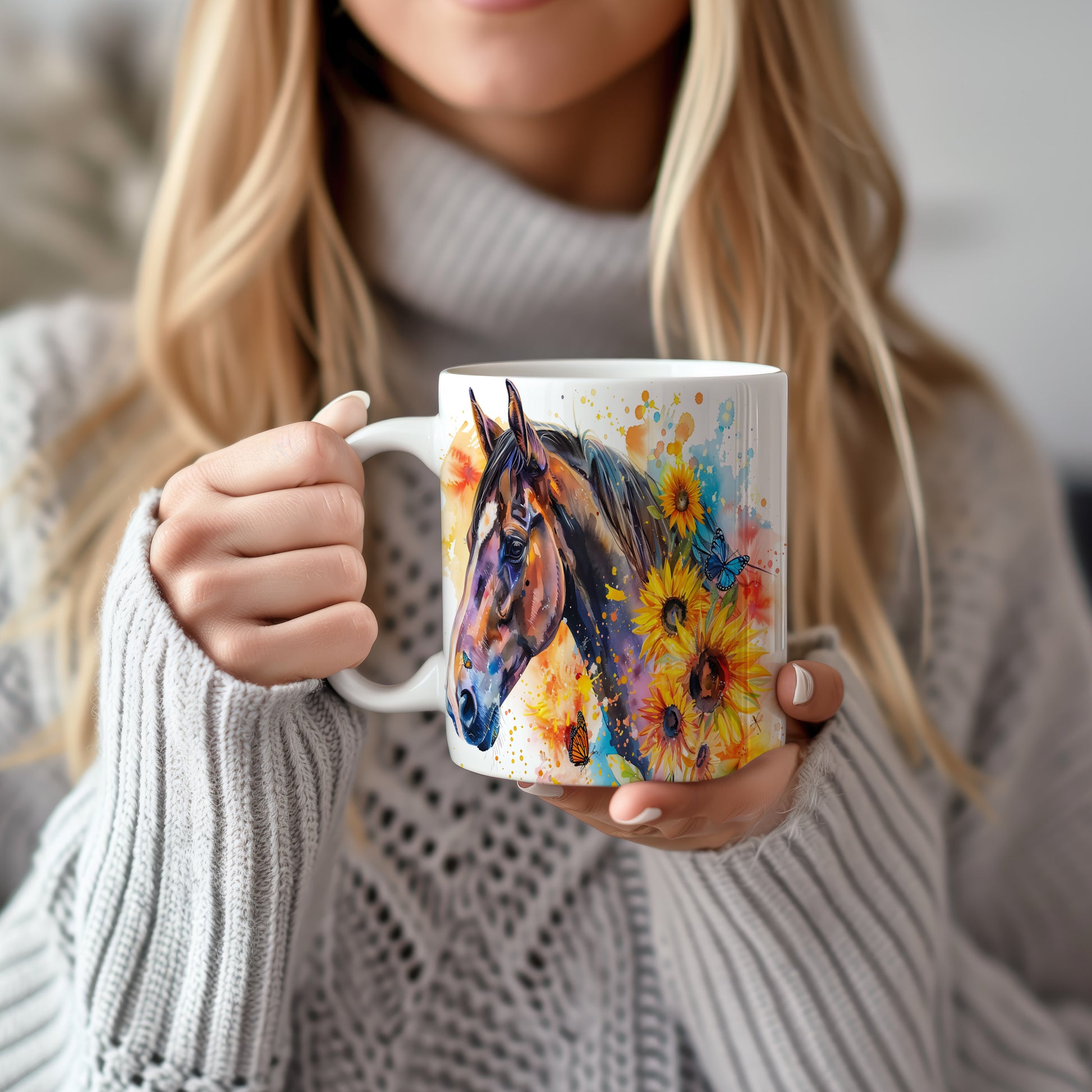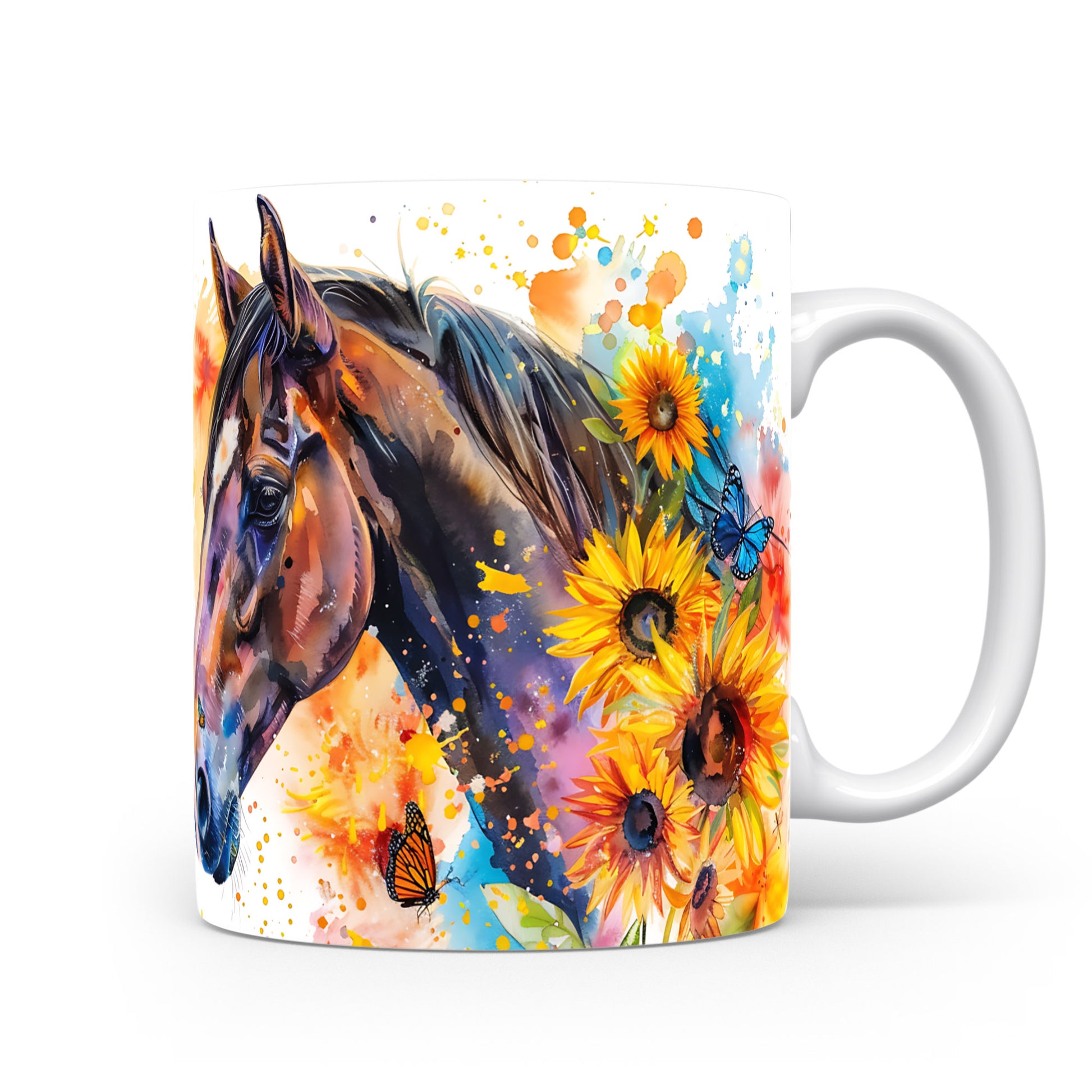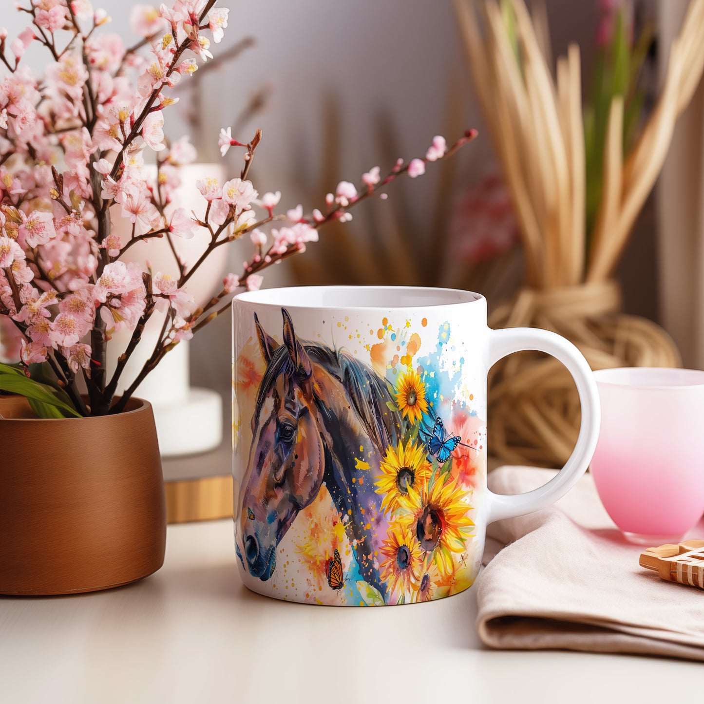 Tento kvalitní keramický hrnek s motivem krásného koně a květin je ideální pro milovníky přírody a koní. Skvělý tip na dárek pro každého, kdo ocení jedinečný design. Materiál: keramika. Objem: 330 ml. Vhodné do myčky i mikrovlnky. Při každém doušku si užijete příjemný pocit z používání.