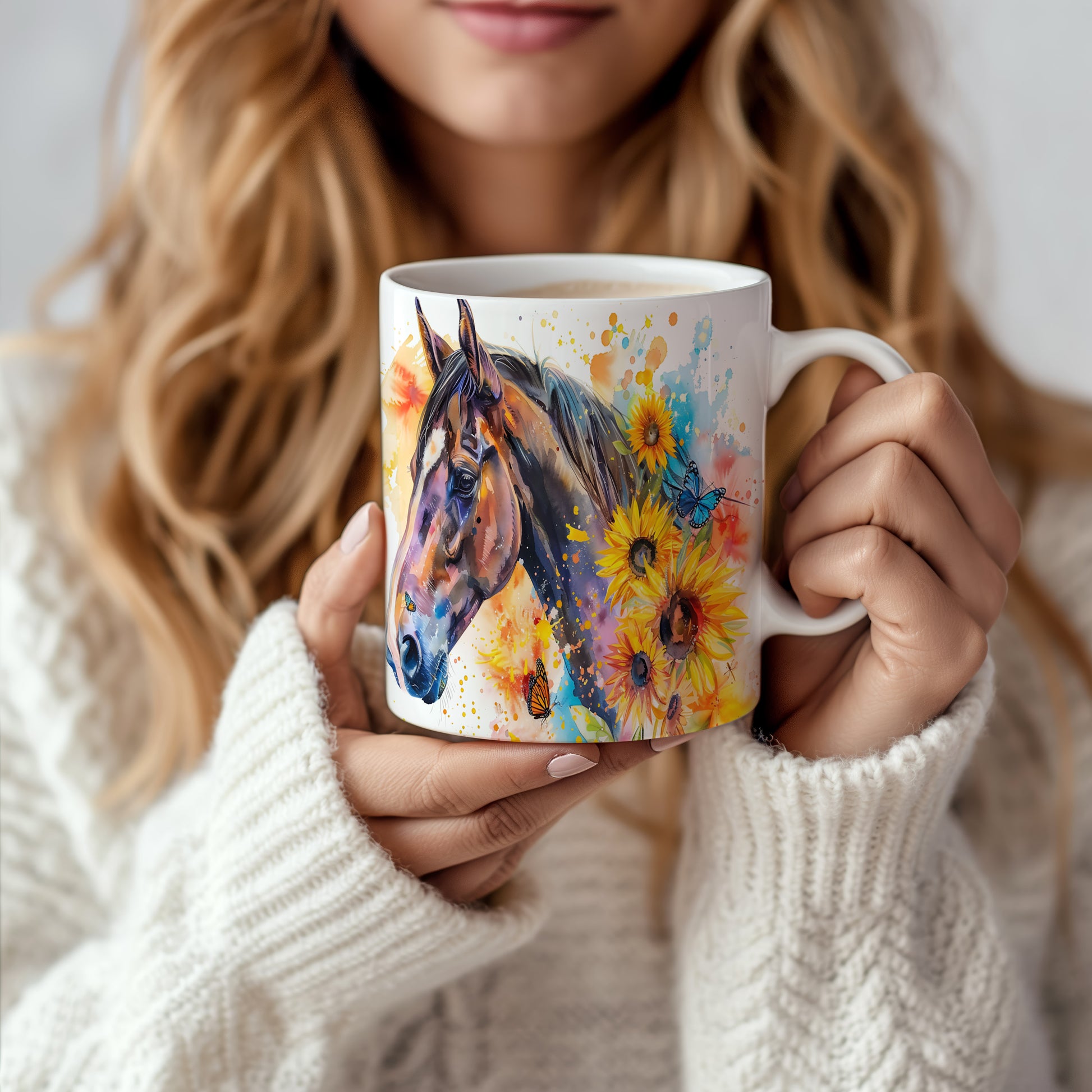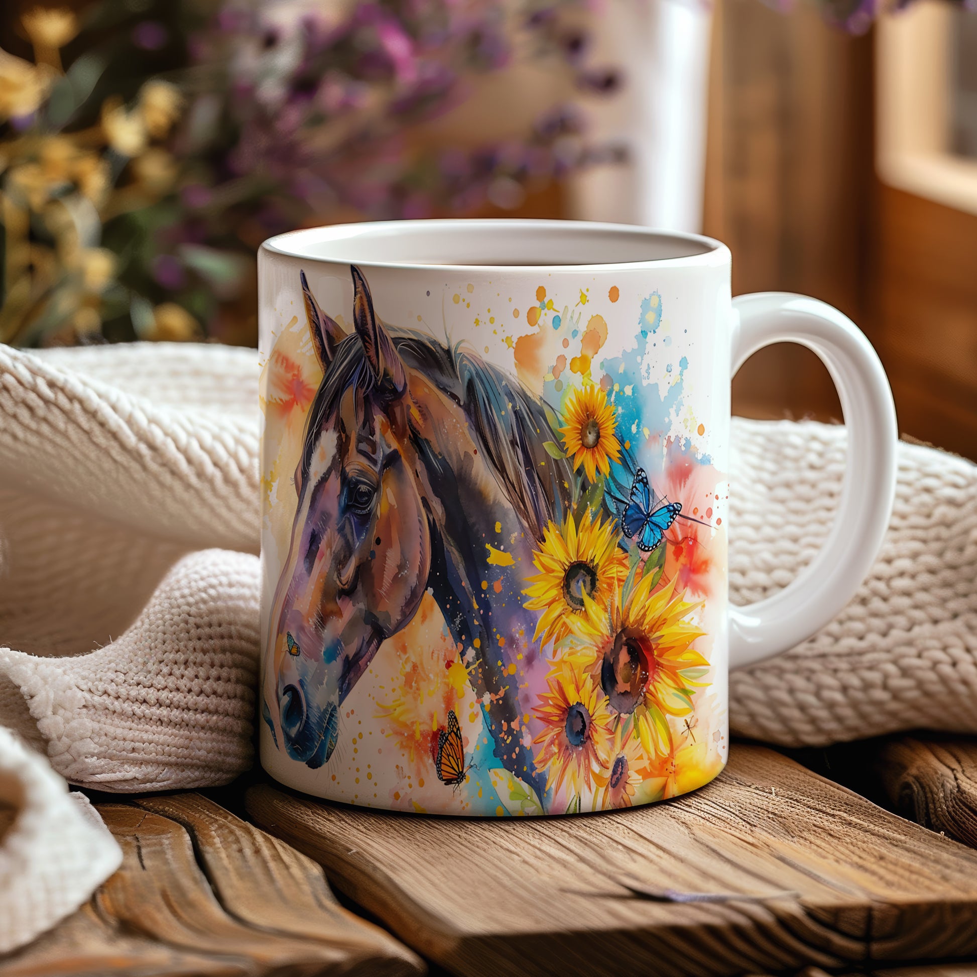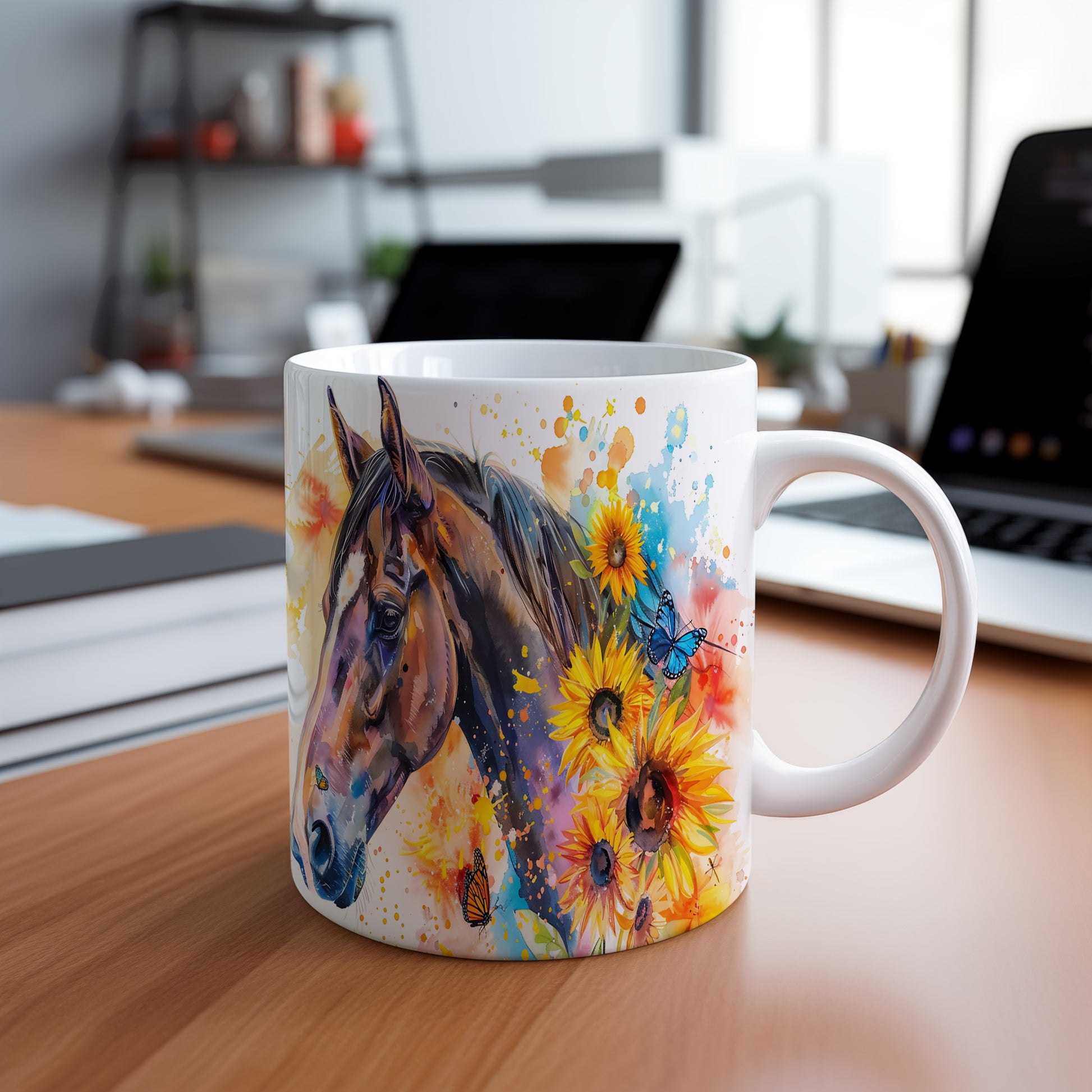 Tento kvalitní keramický hrnek s motivem krásného koně a květin je ideální pro milovníky přírody a koní. Skvělý tip na dárek pro každého, kdo ocení jedinečný design. Materiál: keramika. Objem: 330 ml. Vhodné do myčky i mikrovlnky. Při každém doušku si užijete příjemný pocit z používání.