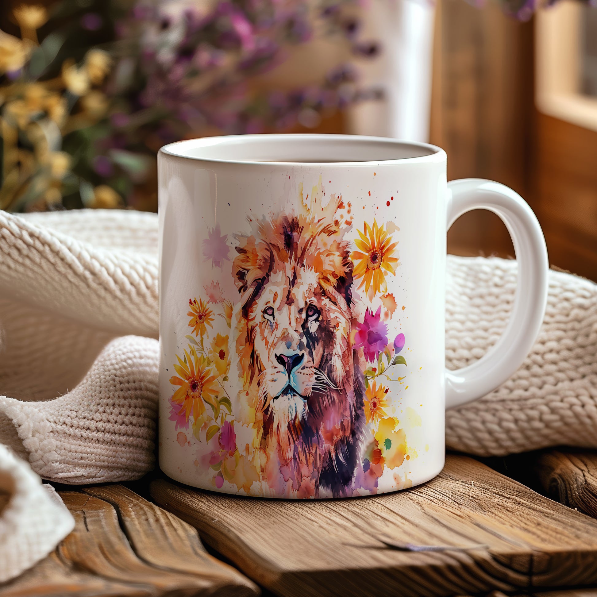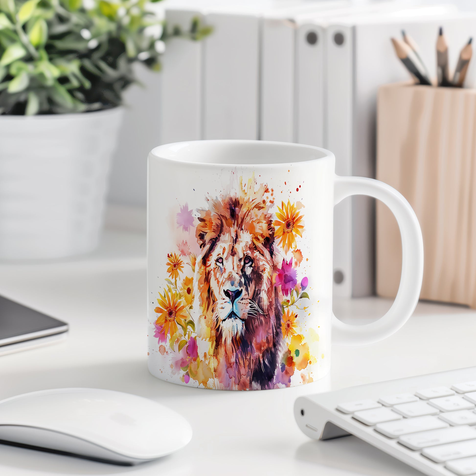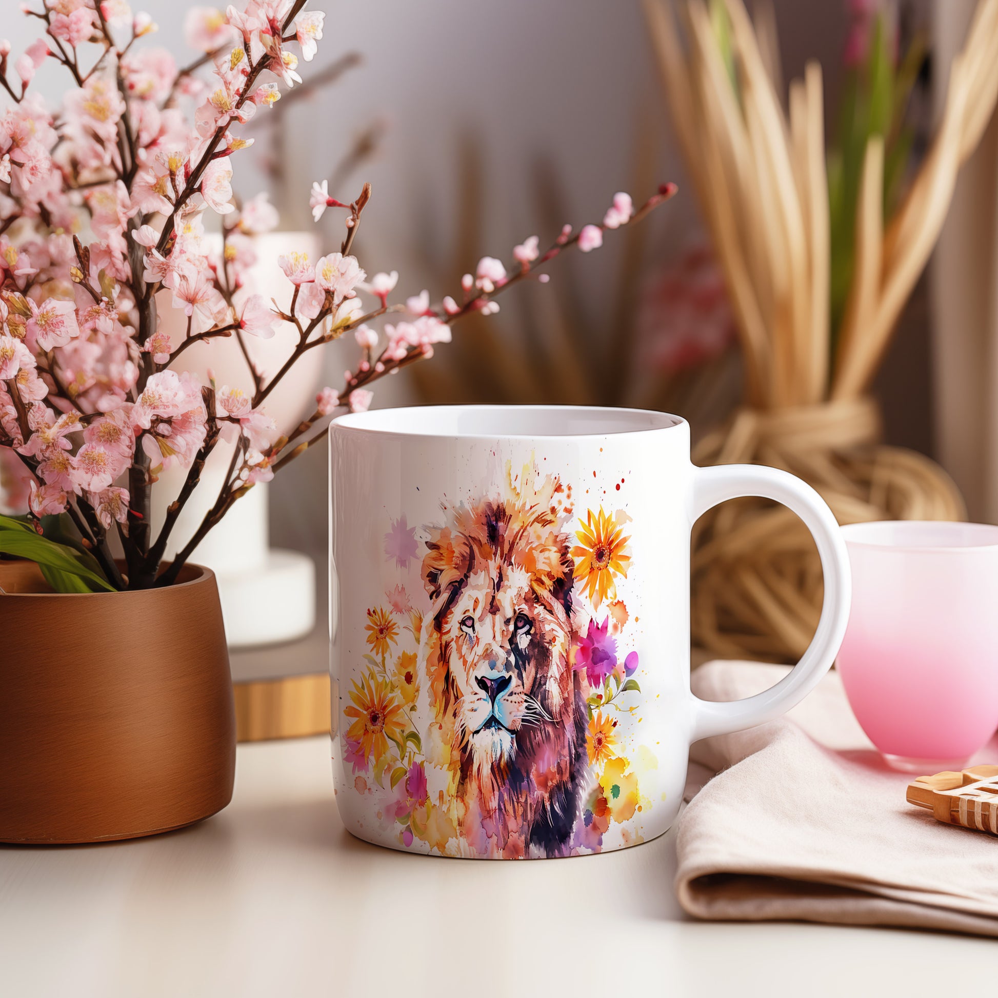 Tento hrnek zobrazuje majestátního lva v kombinaci s barevnými květinami. Je ideální pro milovníky přírody a zvířat, skvělý tip na dárek pro přátele nebo rodinu. Materiál: keramika. Objem: 330 ml. Vhodné do myčky i mikrovlnky. Používání tohoto hrnku přináší radost a styl do každodenního pití.