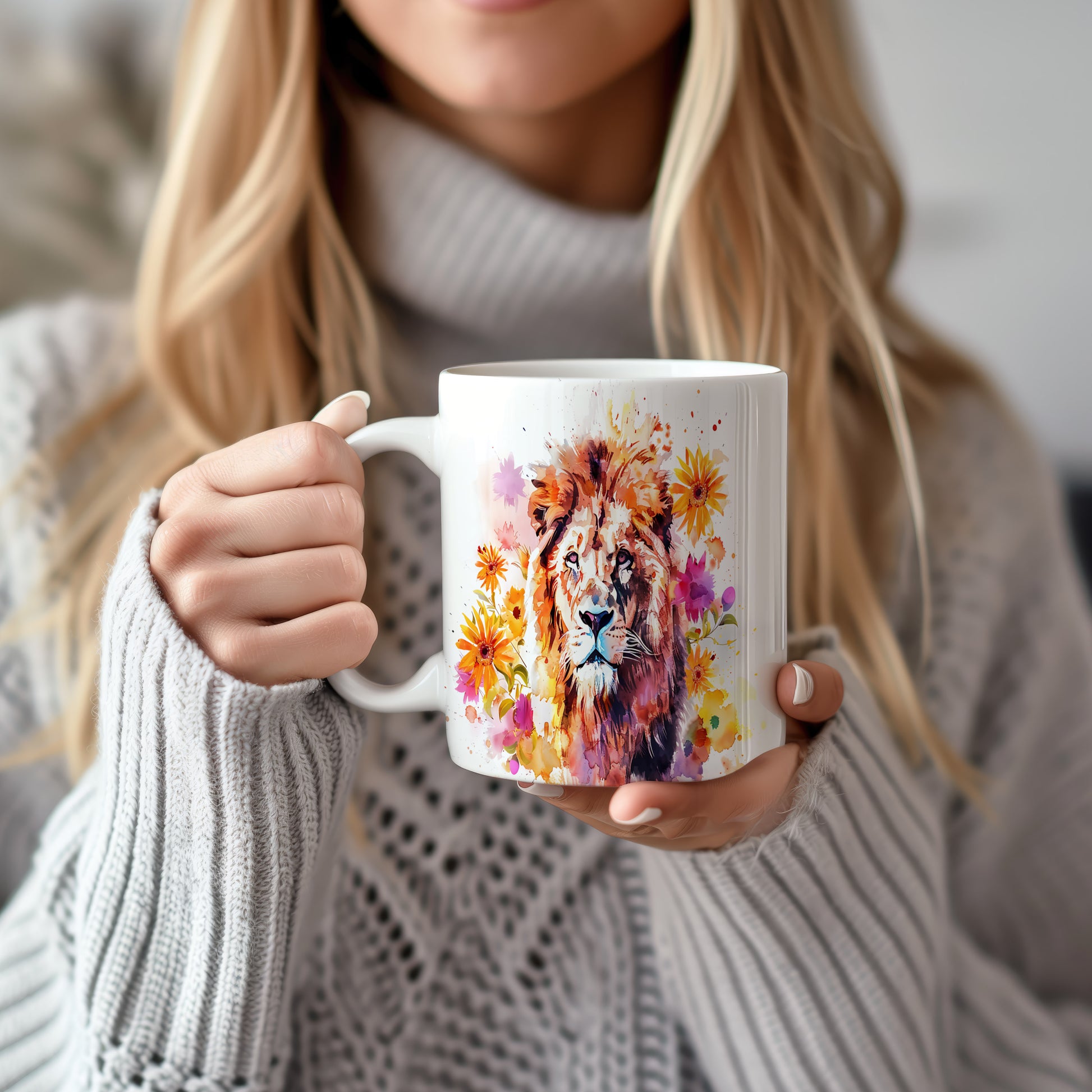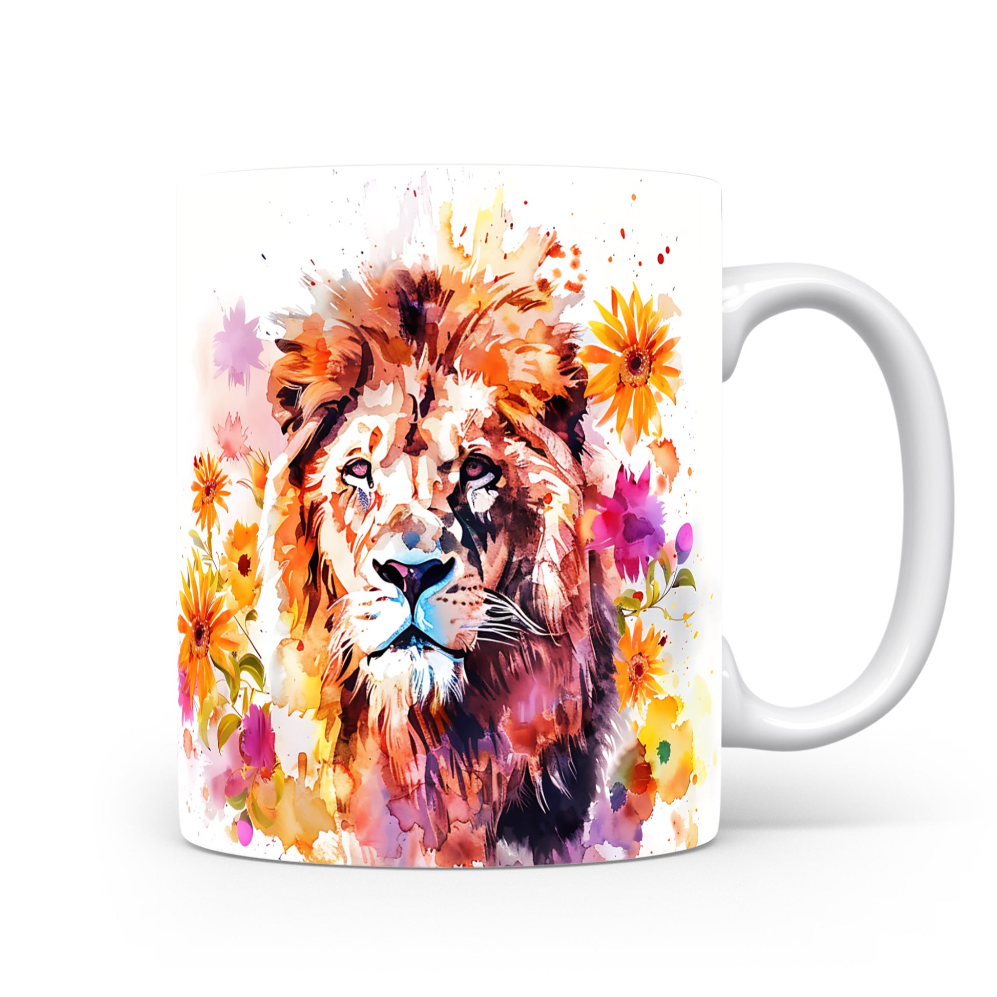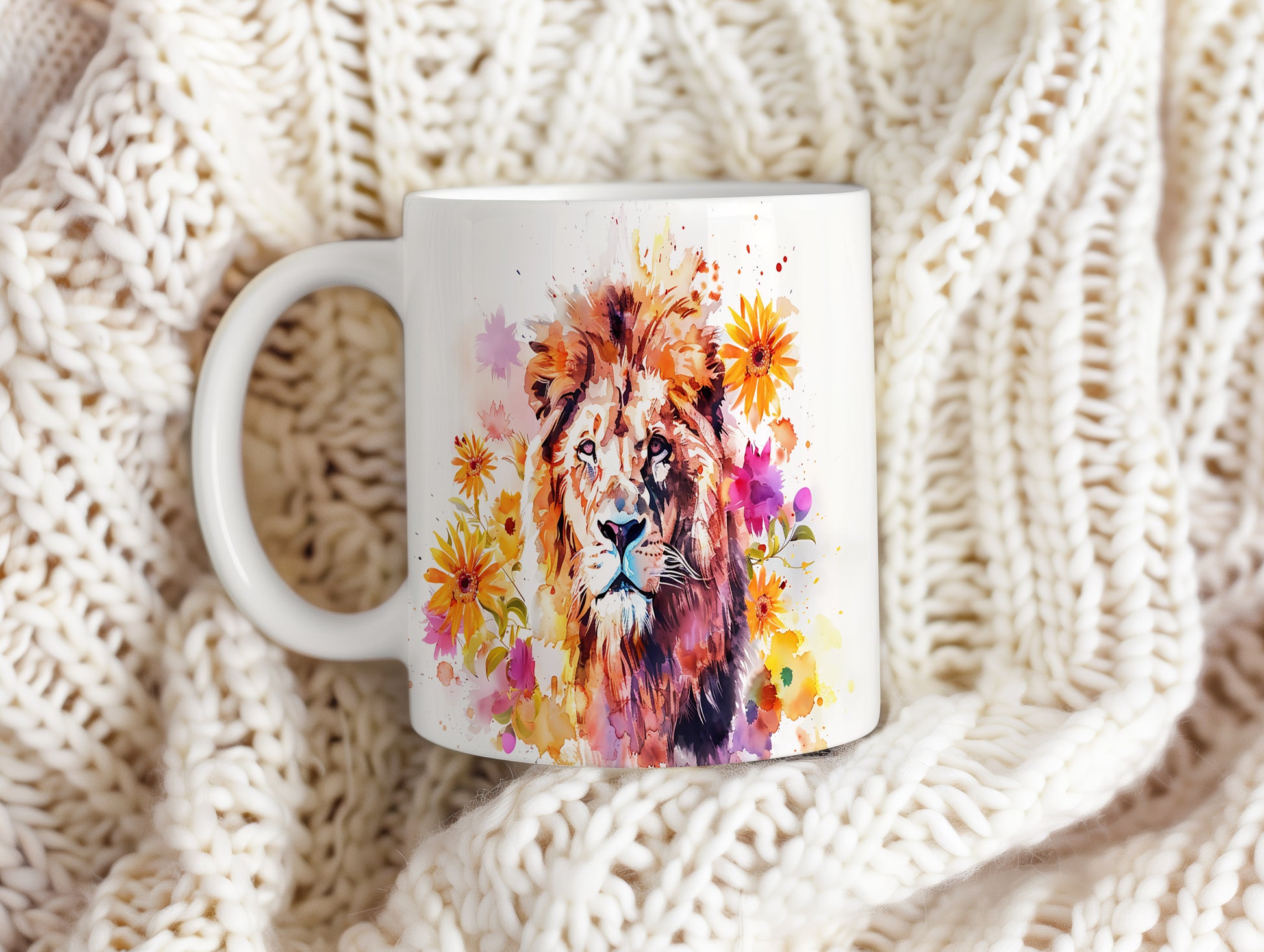 Tento hrnek zobrazuje majestátního lva v kombinaci s barevnými květinami. Je ideální pro milovníky přírody a zvířat, skvělý tip na dárek pro přátele nebo rodinu. Materiál: keramika. Objem: 330 ml. Vhodné do myčky i mikrovlnky. Používání tohoto hrnku přináší radost a styl do každodenního pití.