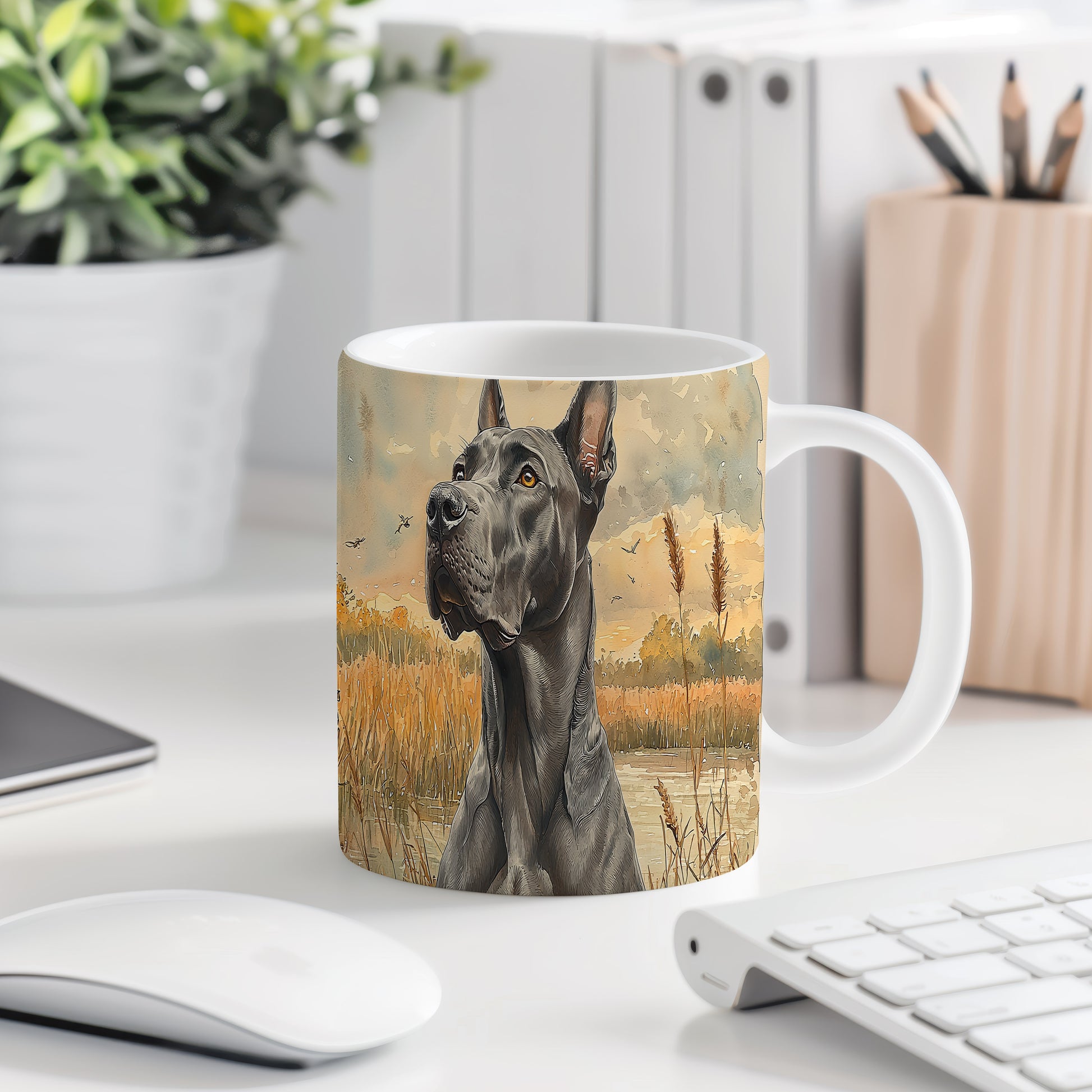 Tento keramický hrnek zobrazuje majestátní plemeno psa v přírodním prostředí. Je ideální pro milovníky psů a skvělým dárkem pro každého, kdo má rád zvířata. Materiál: keramika. Objem: 330 ml. Vhodné do myčky i mikrovlnky. Díky svému designu přináší do každodenního pití radost a styl.