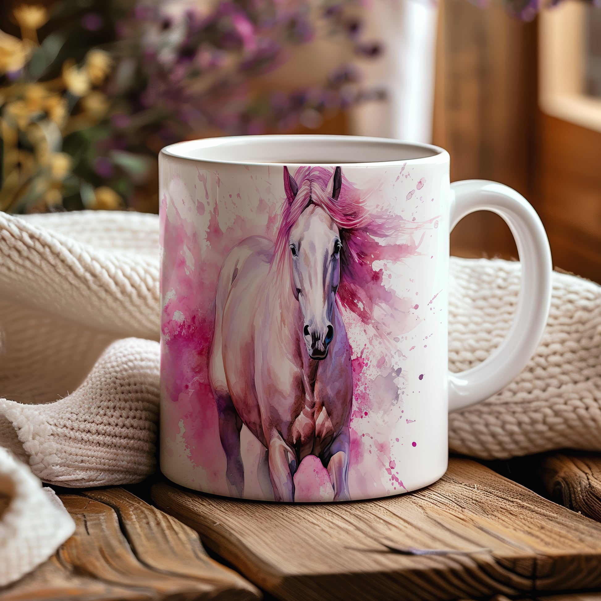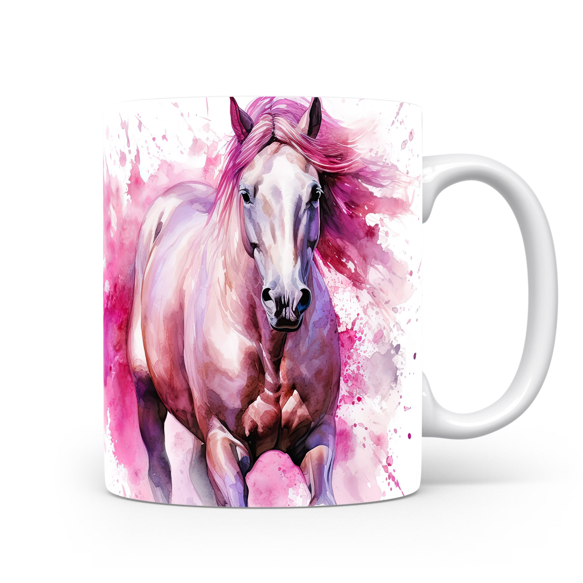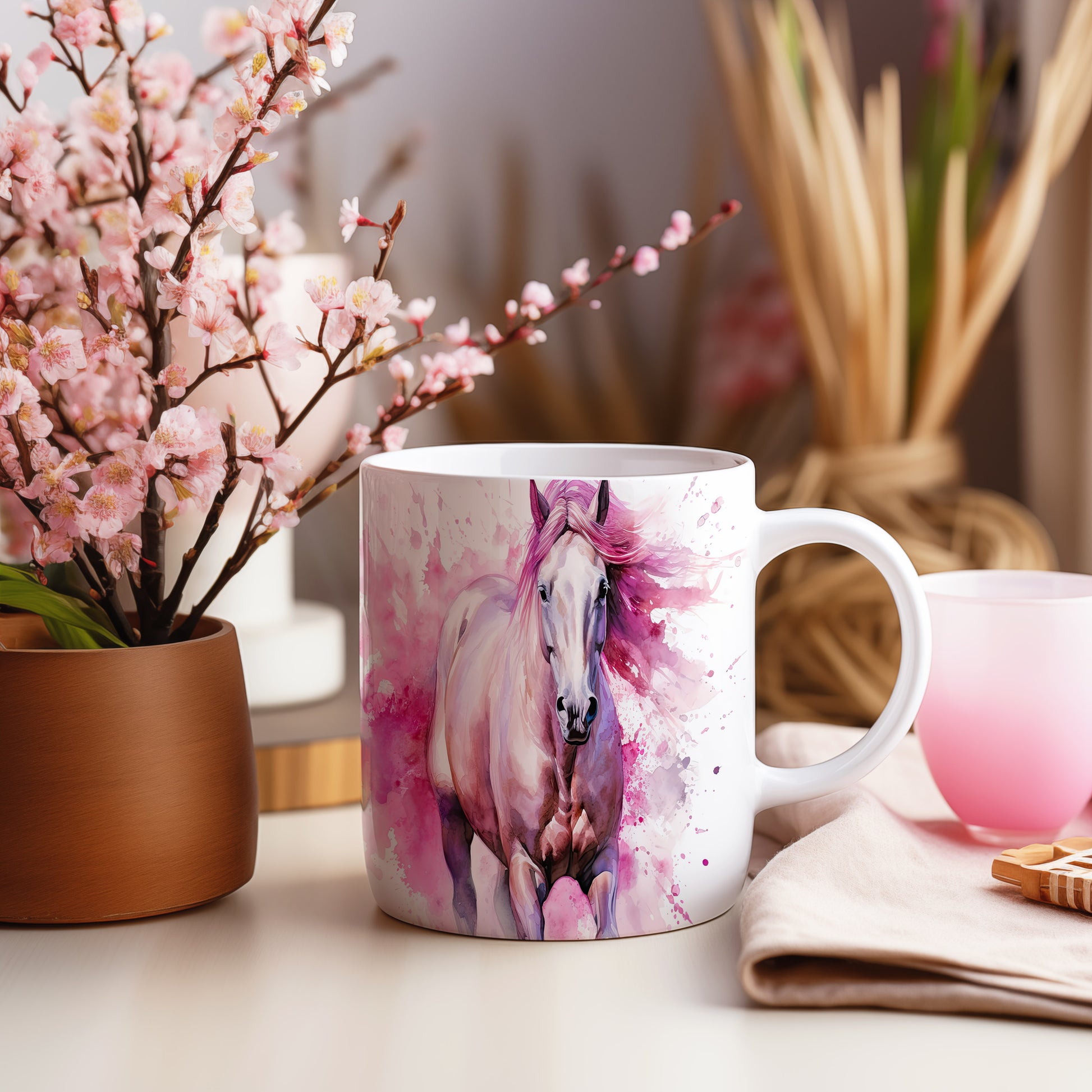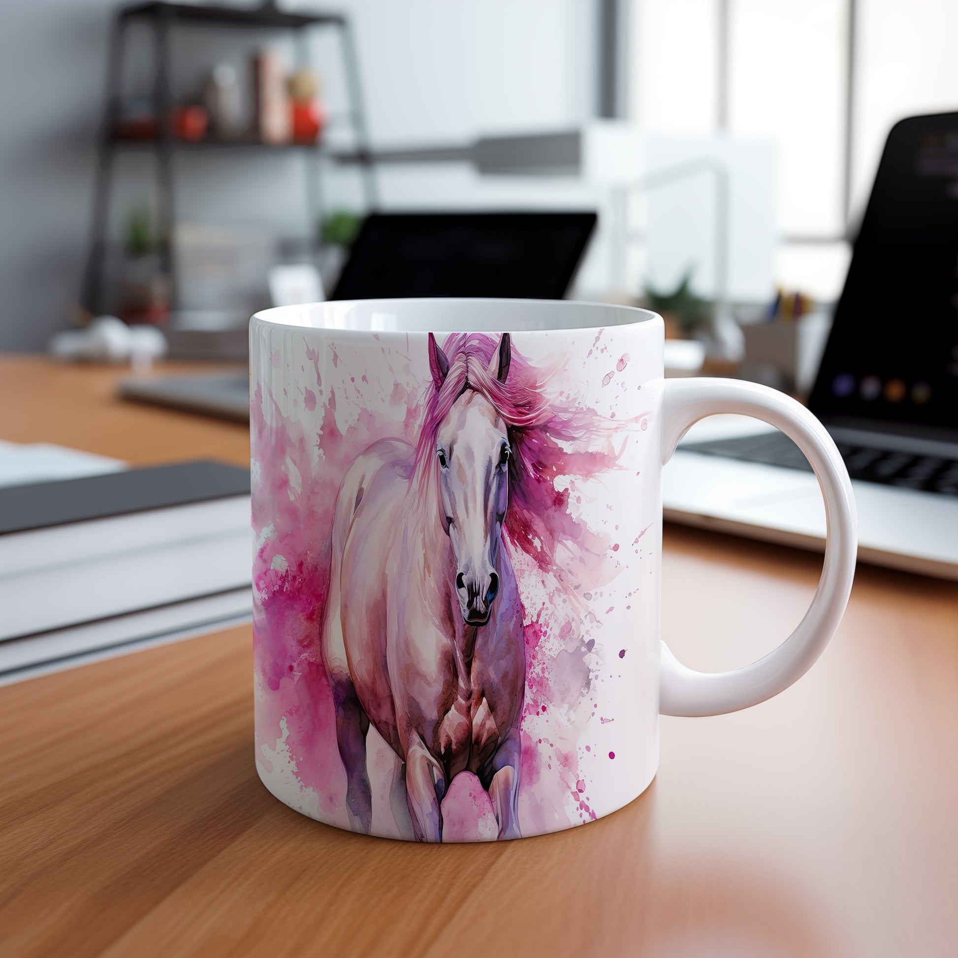 Tento hrnek zobrazuje nádherný motiv růžového koně na barevném pozadí. Je ideální pro milovníky koní a skvělým dárkem pro přátele či rodinu. Materiál: keramika. Objem: 330 ml. Vhodné do myčky i mikrovlnky. Díky svému designu přináší do každodenního pití radost a styl.