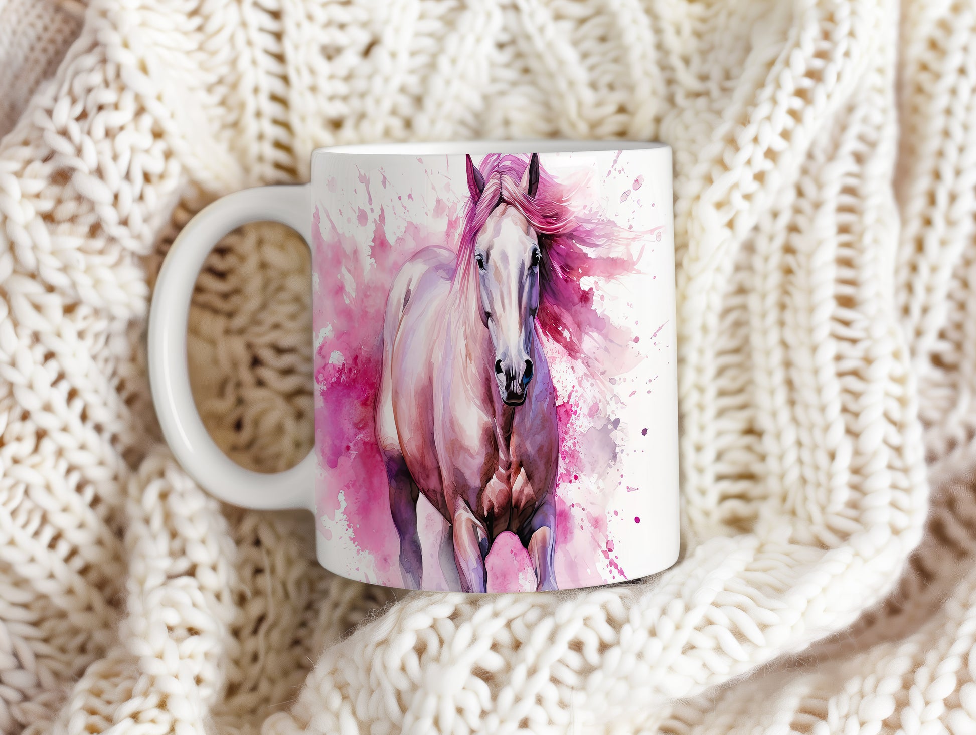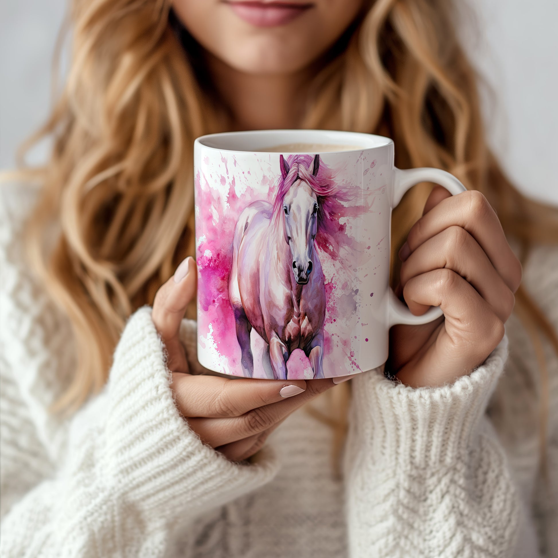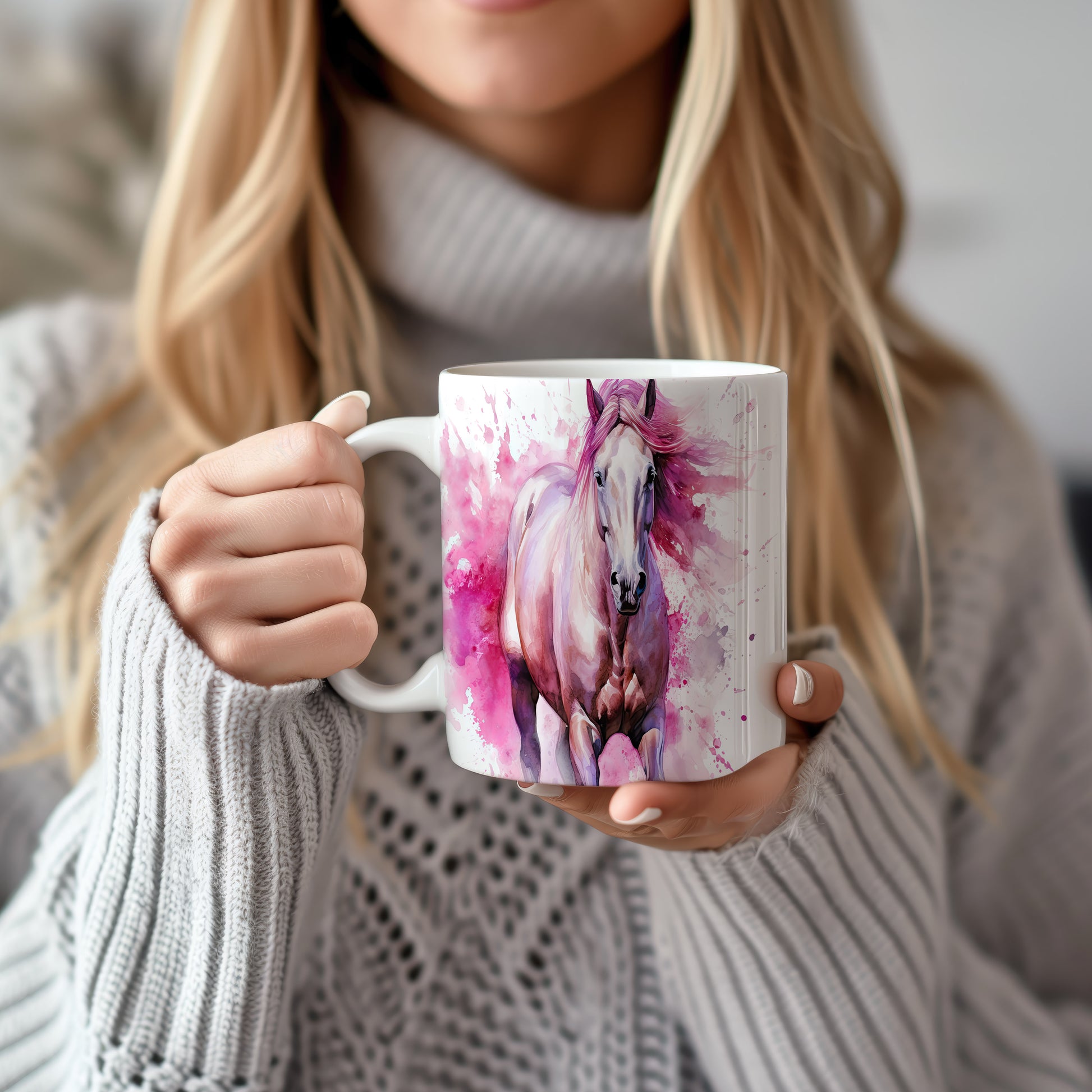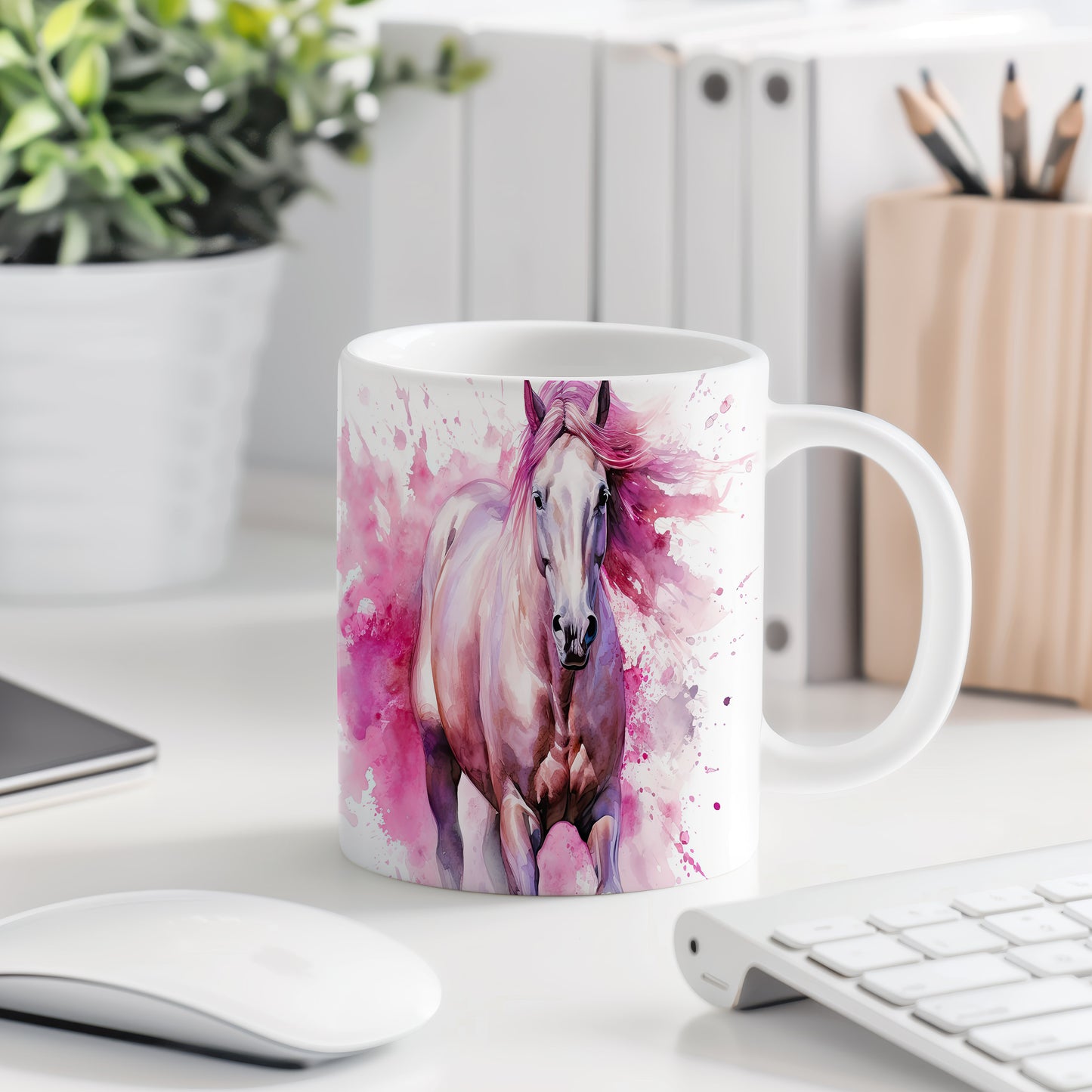 Tento hrnek zobrazuje nádherný motiv růžového koně na barevném pozadí. Je ideální pro milovníky koní a skvělým dárkem pro přátele či rodinu. Materiál: keramika. Objem: 330 ml. Vhodné do myčky i mikrovlnky. Díky svému designu přináší do každodenního pití radost a styl.