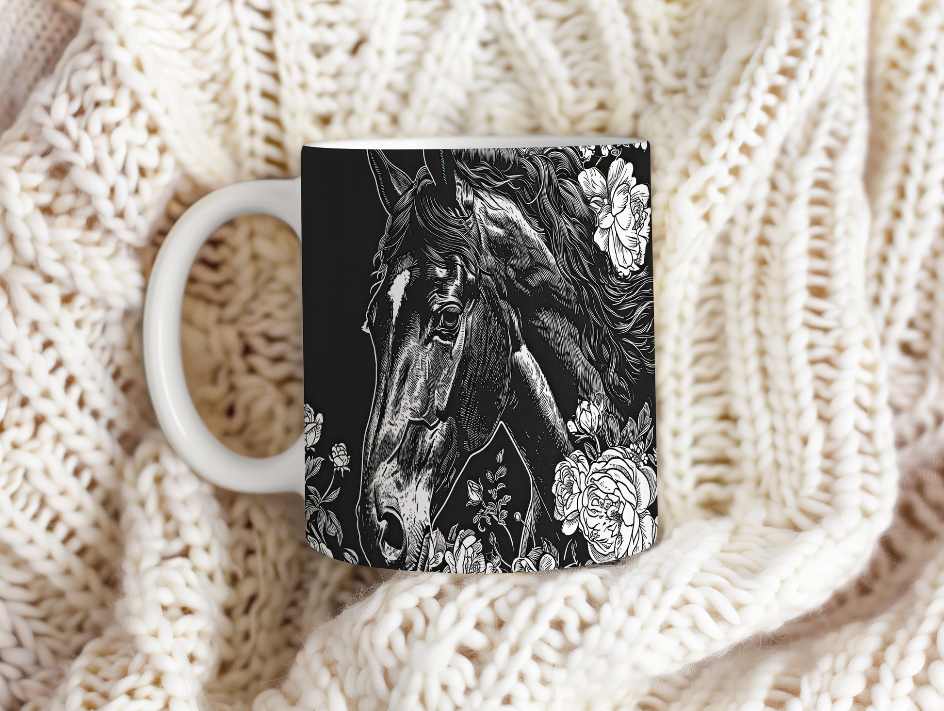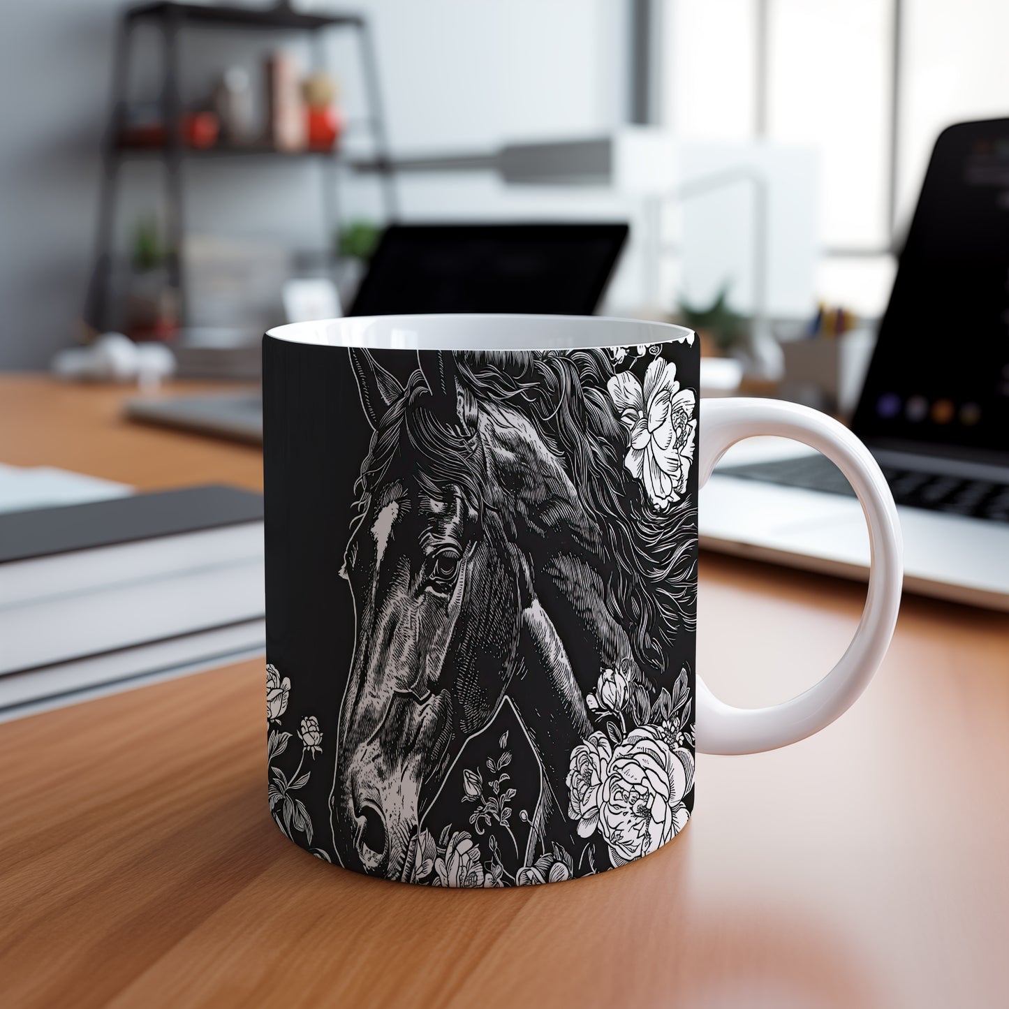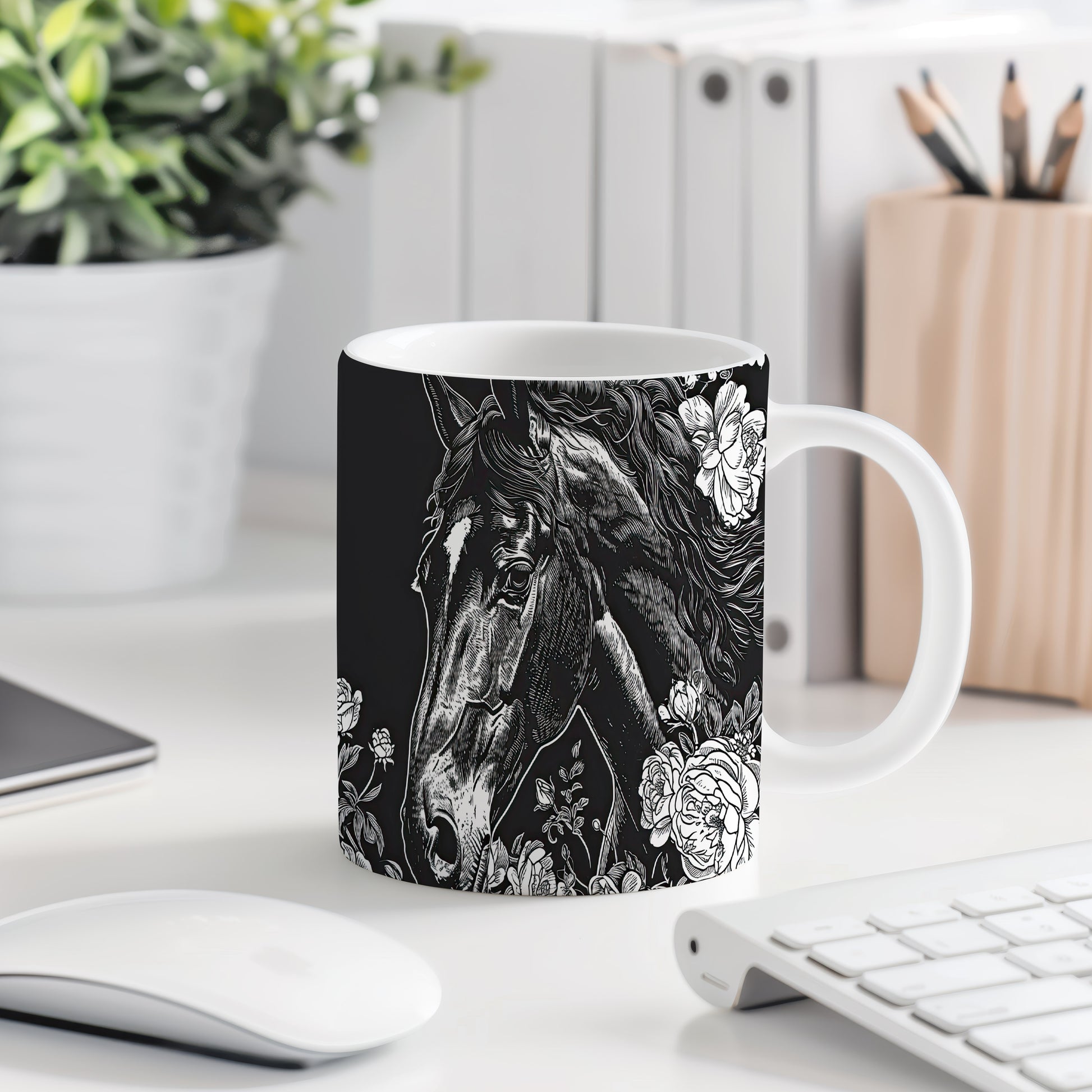Tento hrnek s motivem koně a květin je ideální pro milovníky přírody a zvířat. Skvělý tip na dárek pro přátele nebo rodinu, kteří ocení originální design. Materiál: keramika. Objem: 330 ml. Vhodné do myčky i mikrovlnky. Užijte si svůj oblíbený nápoj s tímto stylovým hrnkem, který přináší radost do každého dne.