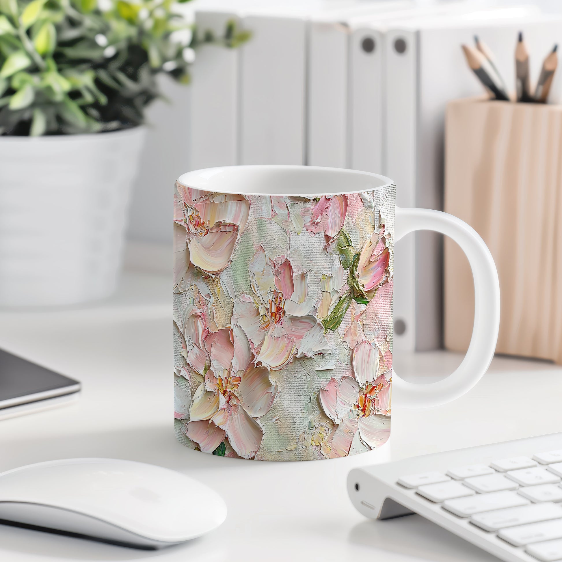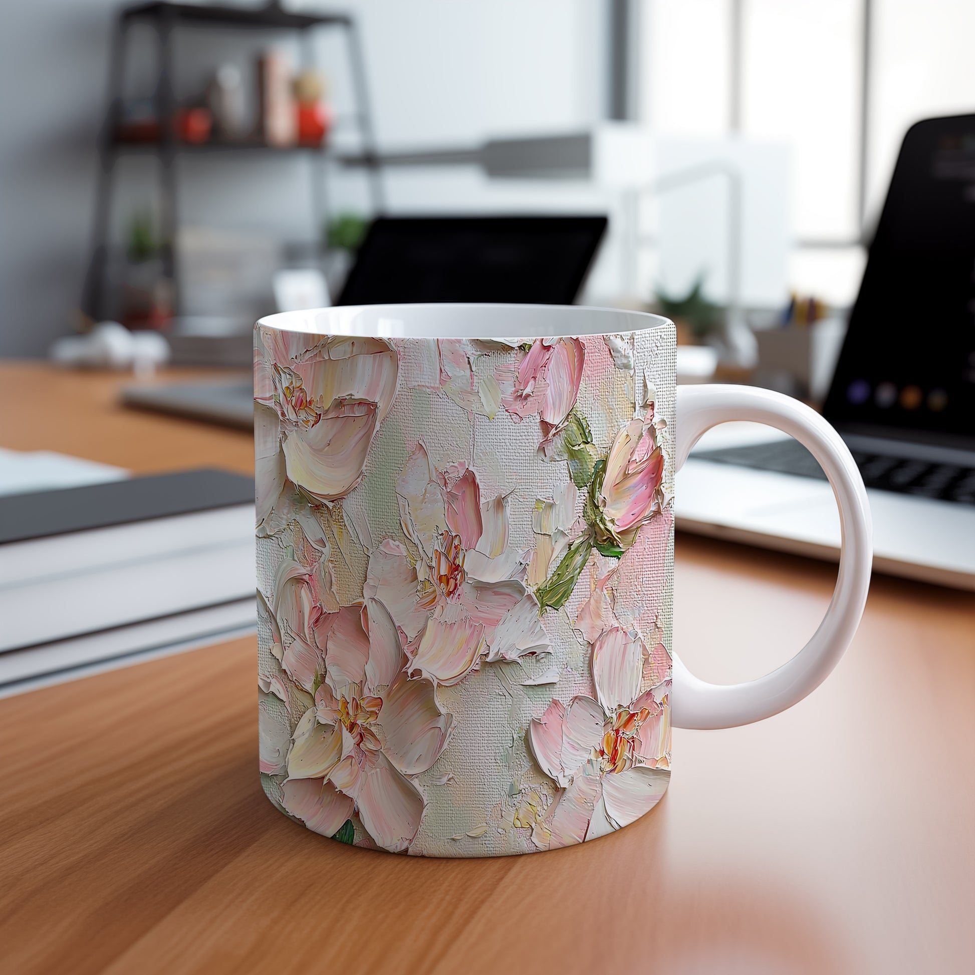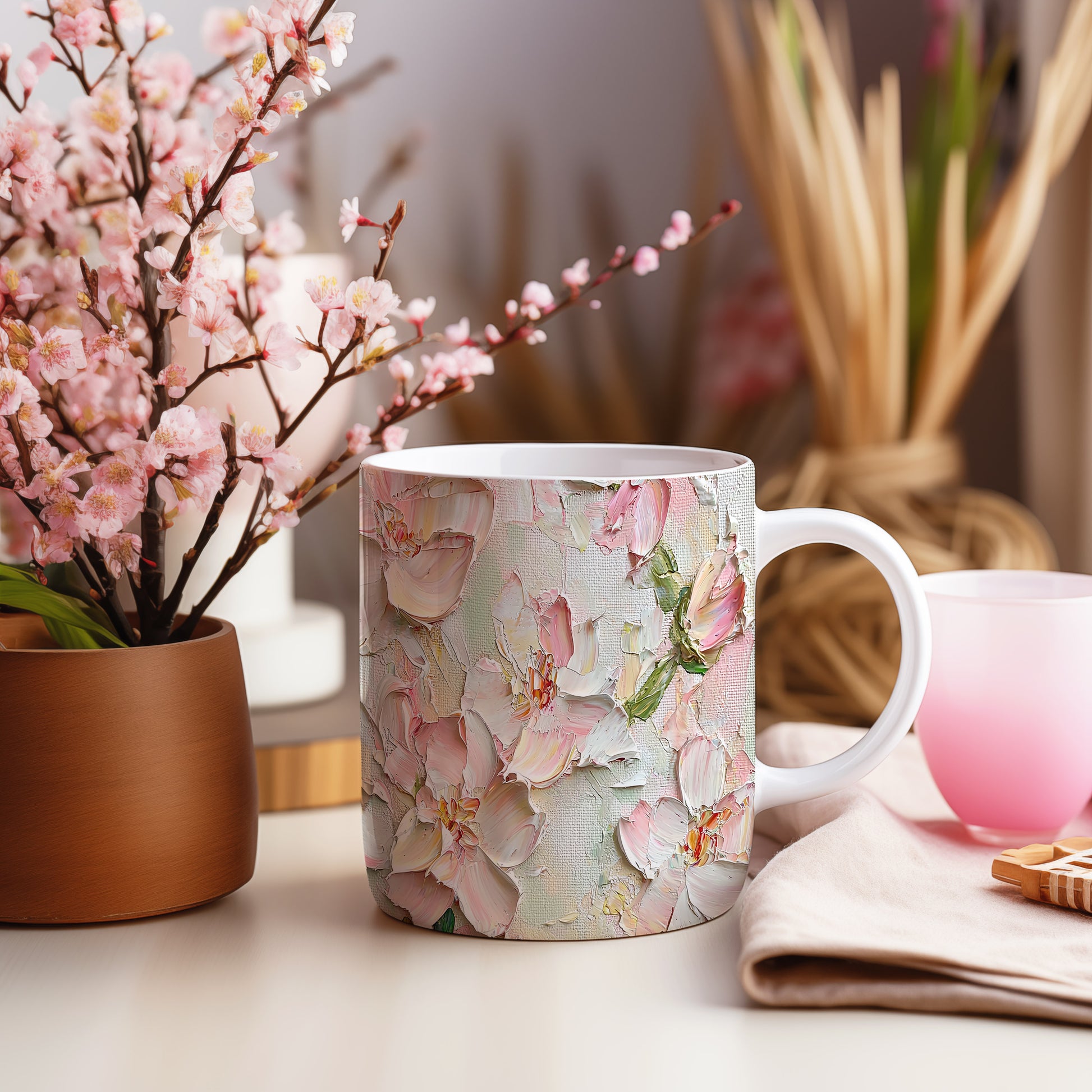 Hrnek s krásnými růžovými květy