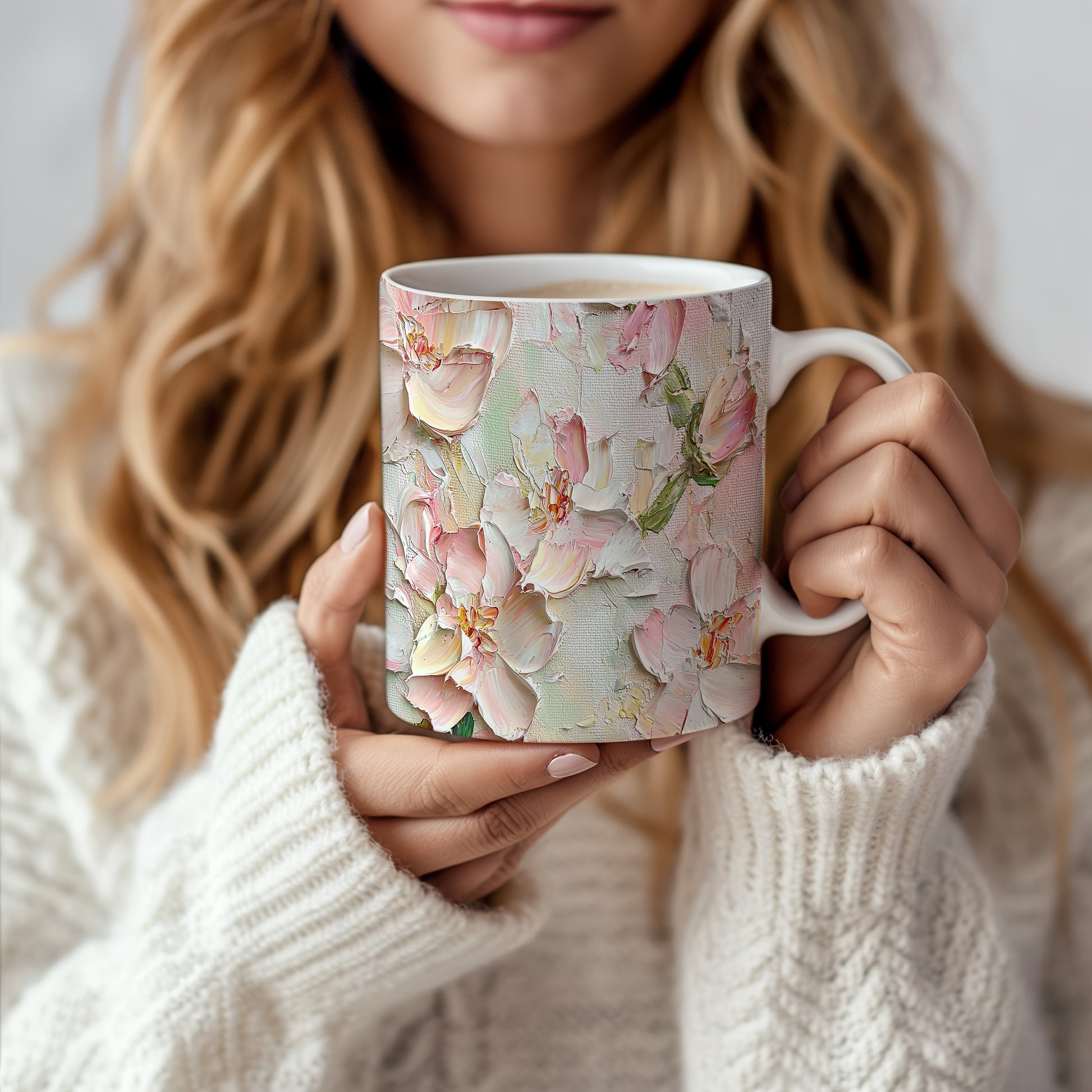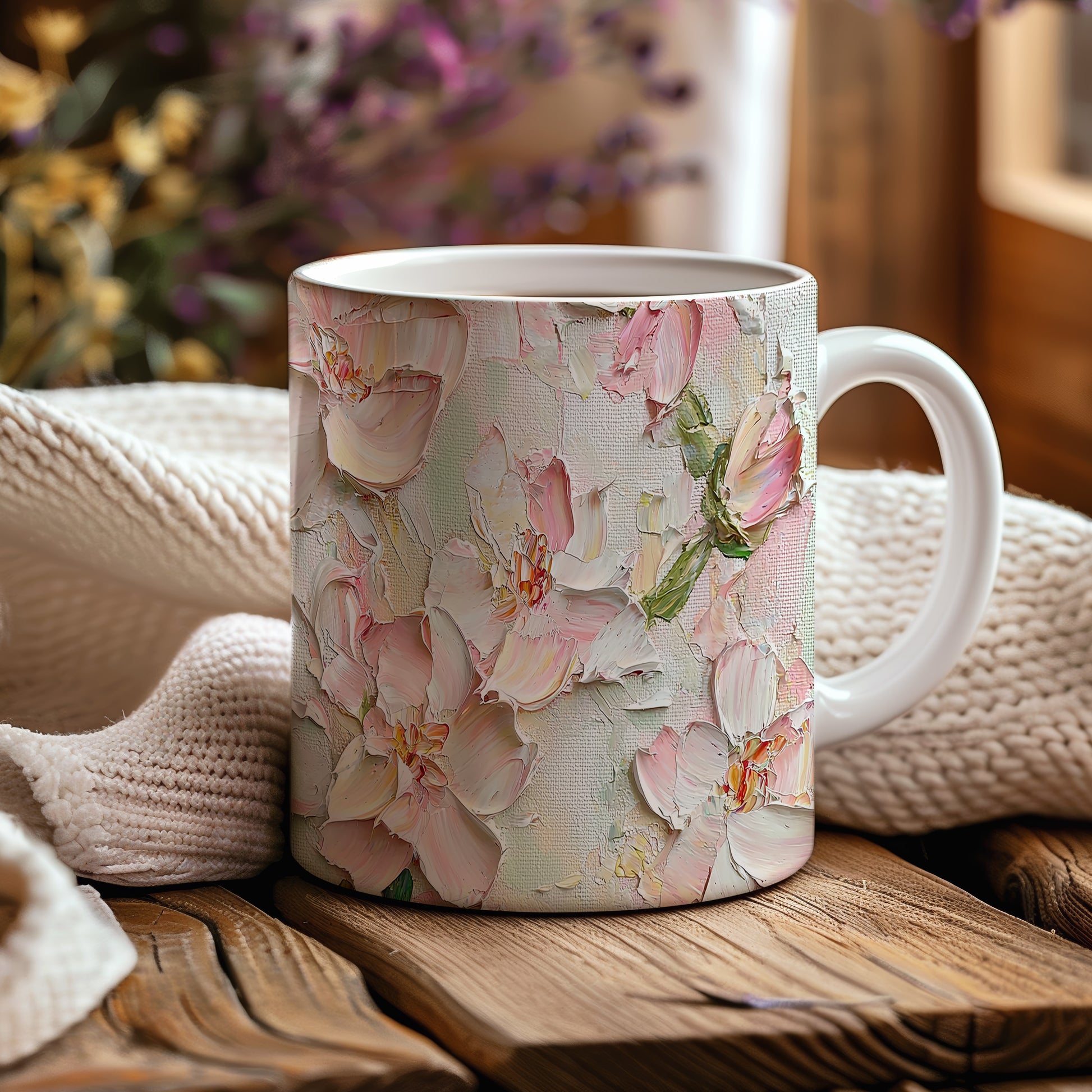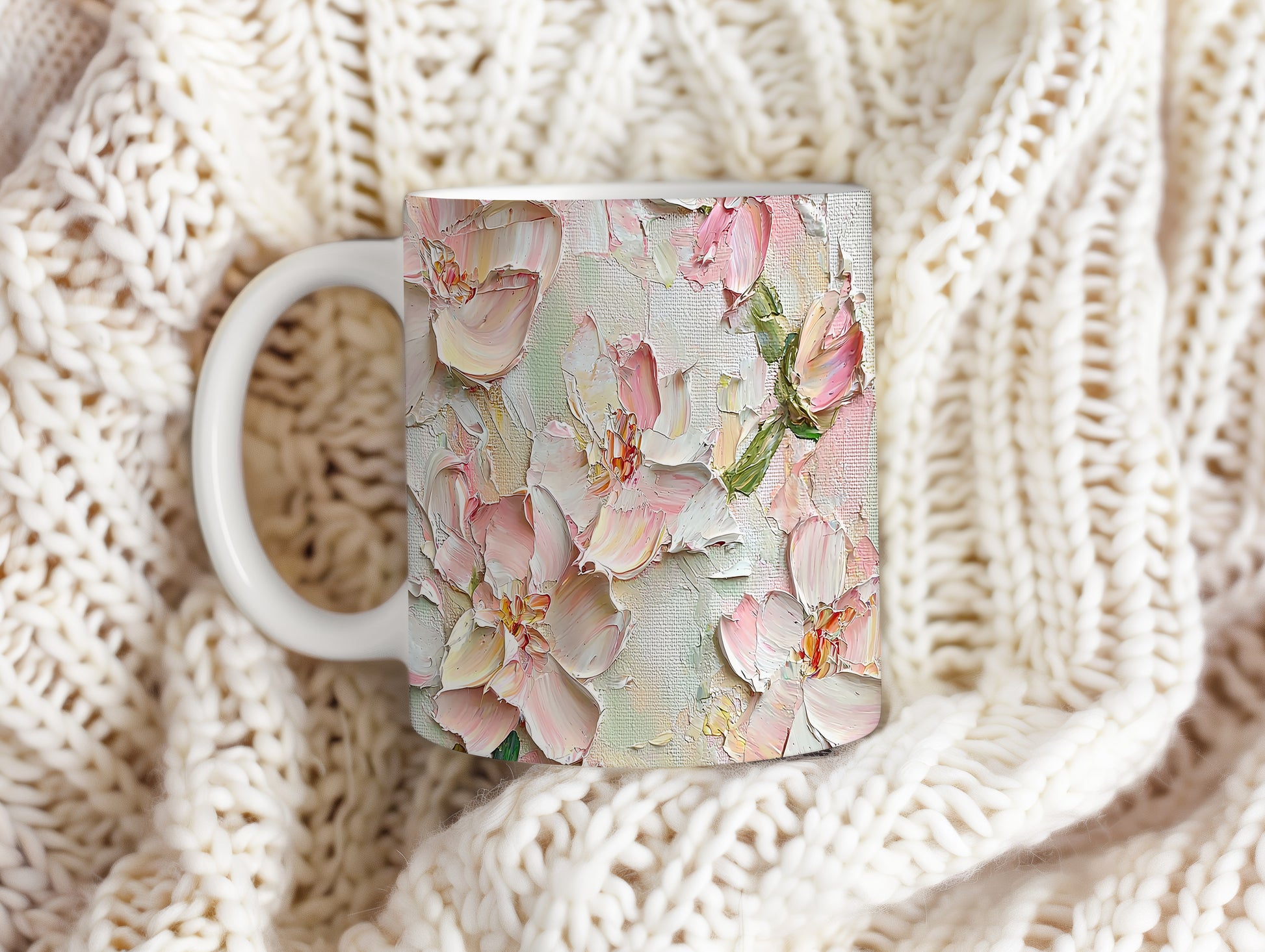 Hrnek s krásnými růžovými květy