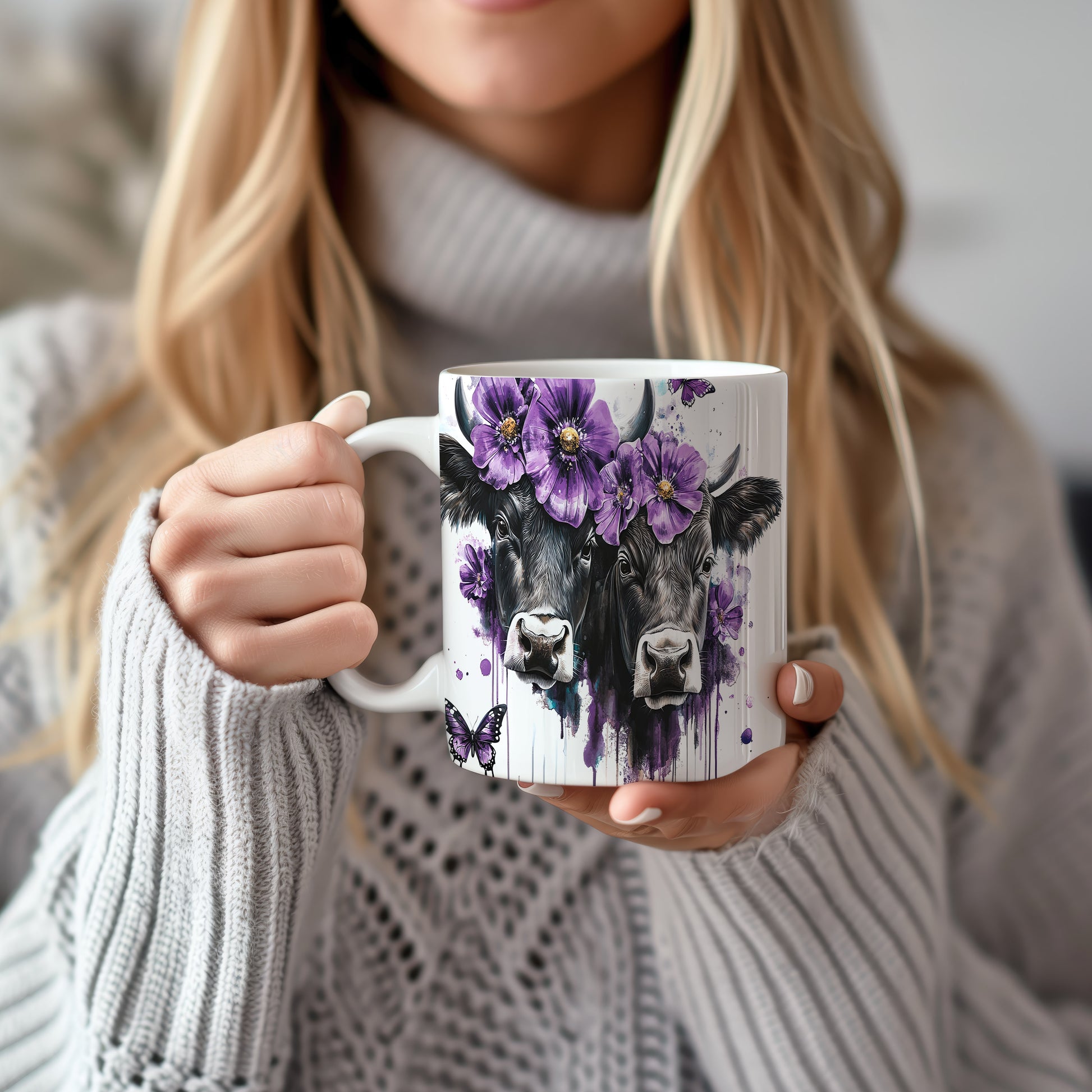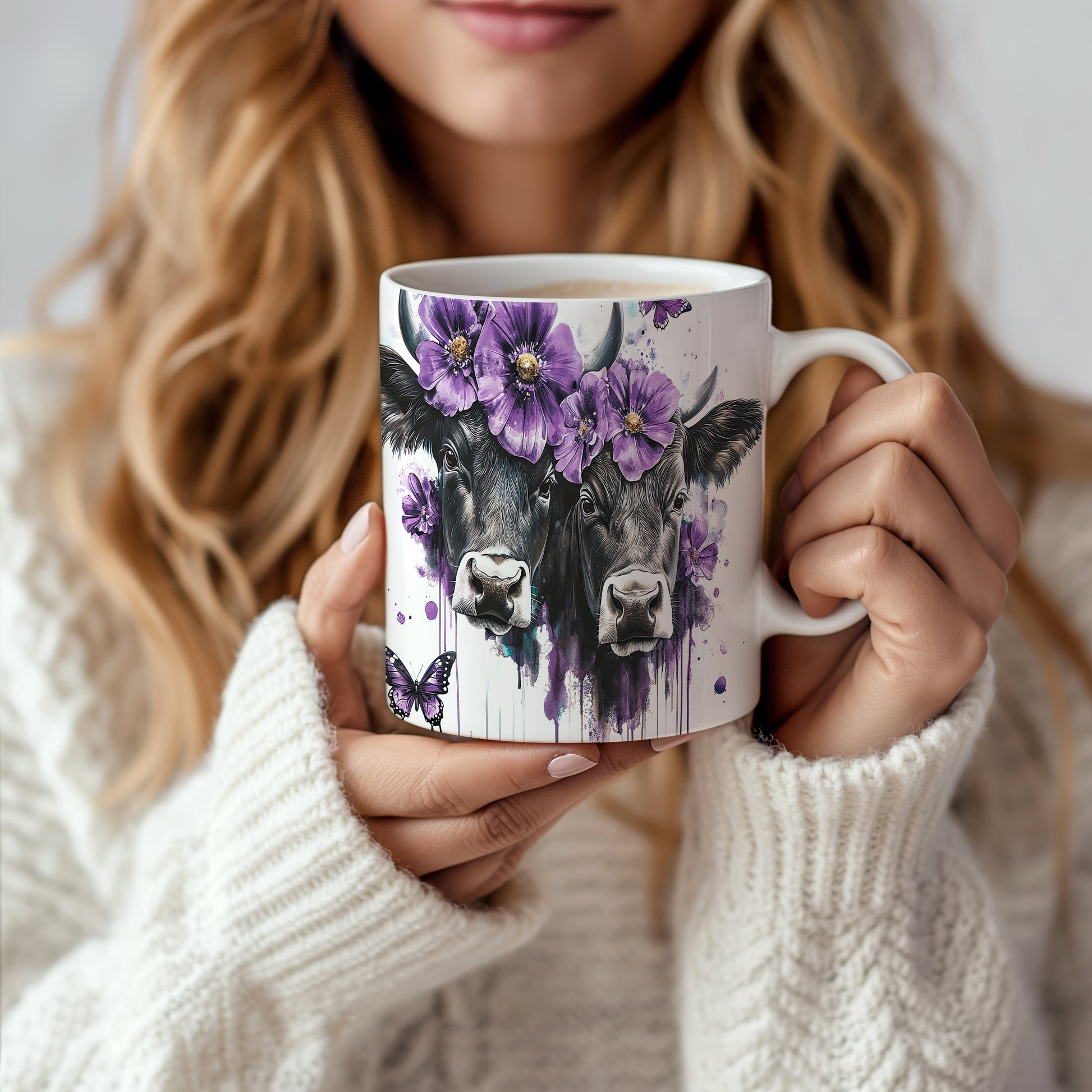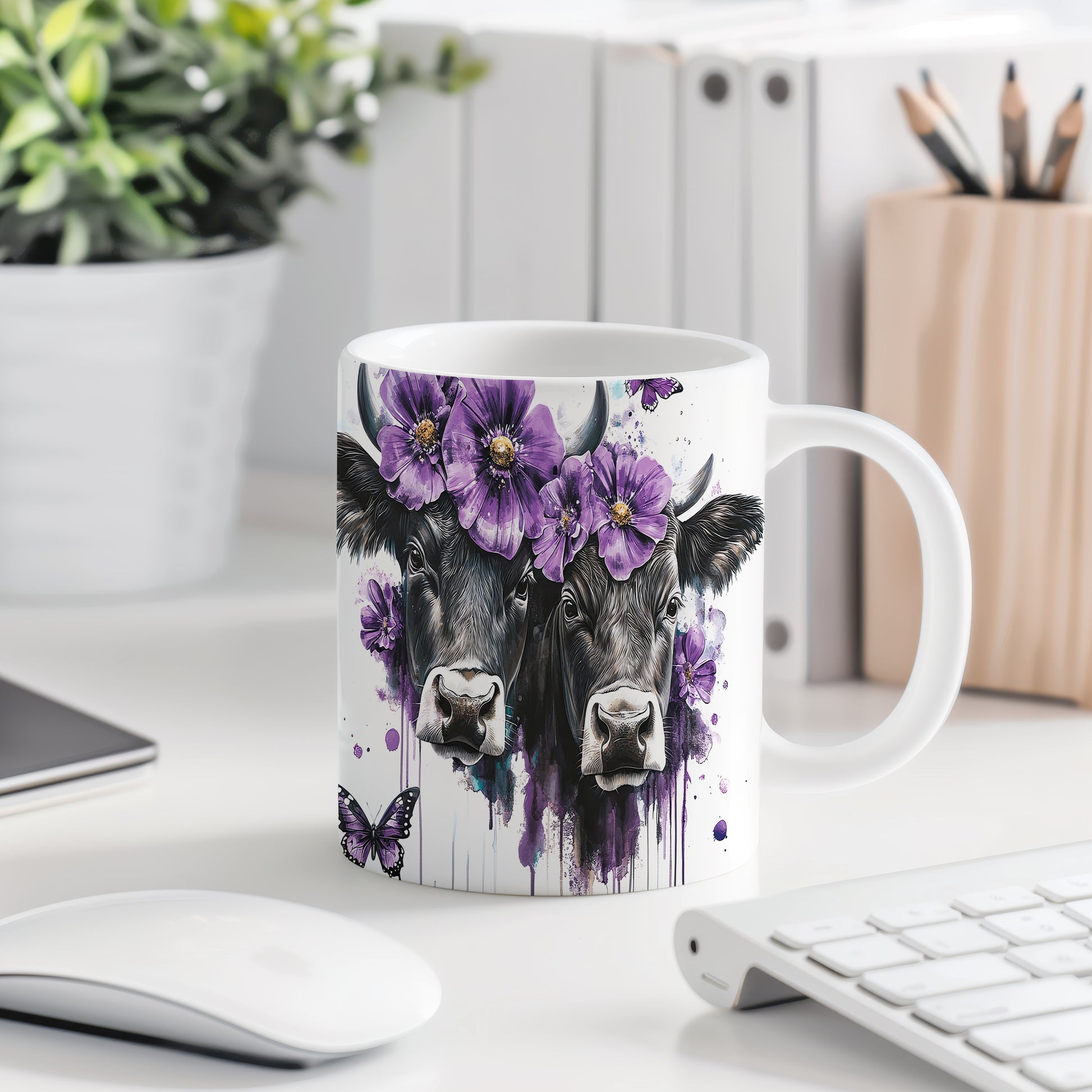 Tento hrnek zobrazuje krávy s květinami, které dodávají nádech přírody a veselí. Je ideální pro milovníky zvířat a přírody, skvělý tip na dárek pro přátele nebo rodinu. Materiál: keramika. Objem: 330 ml. Vhodné do myčky i mikrovlnky. Používání tohoto hrnku přináší radost a pozitivní energii do každého dne.