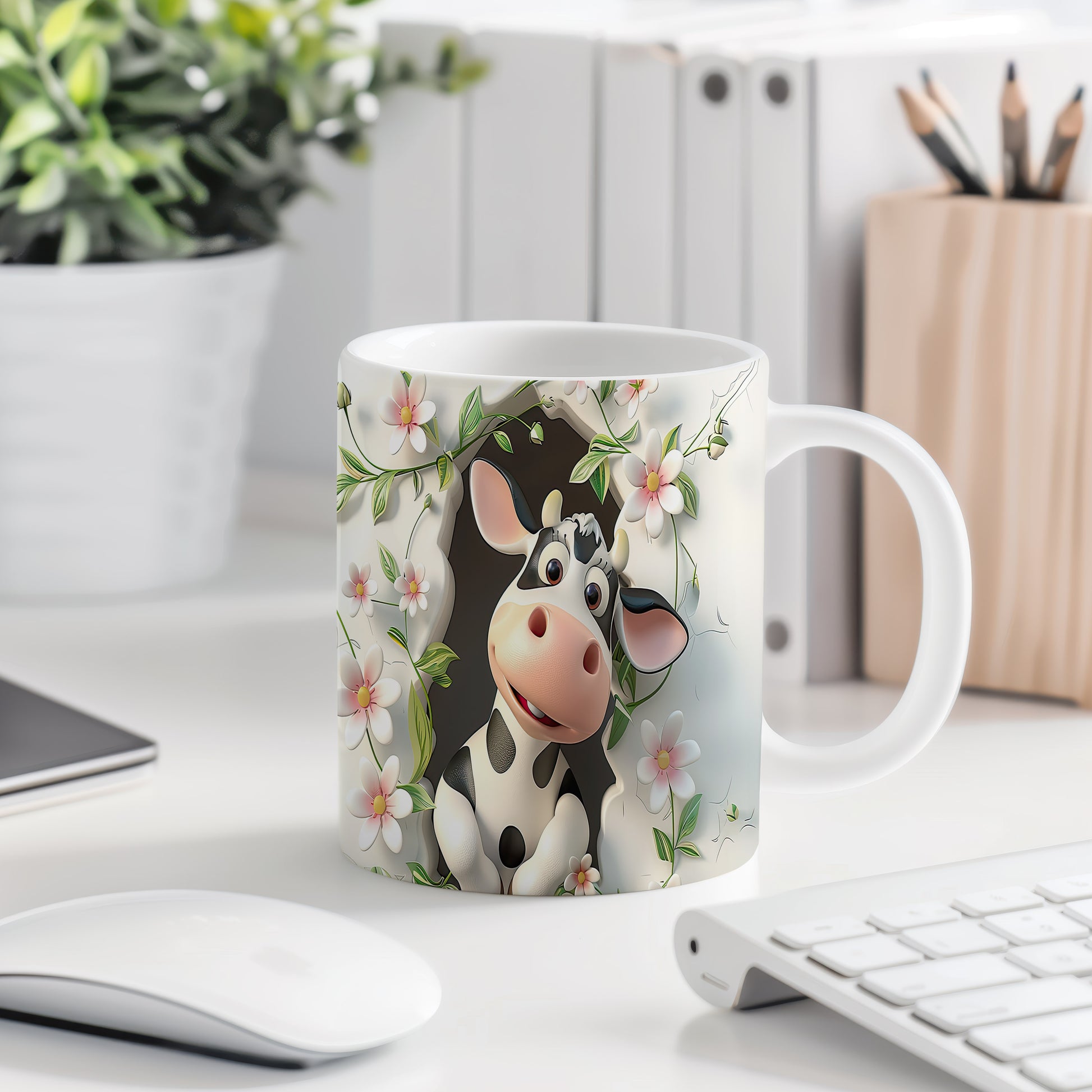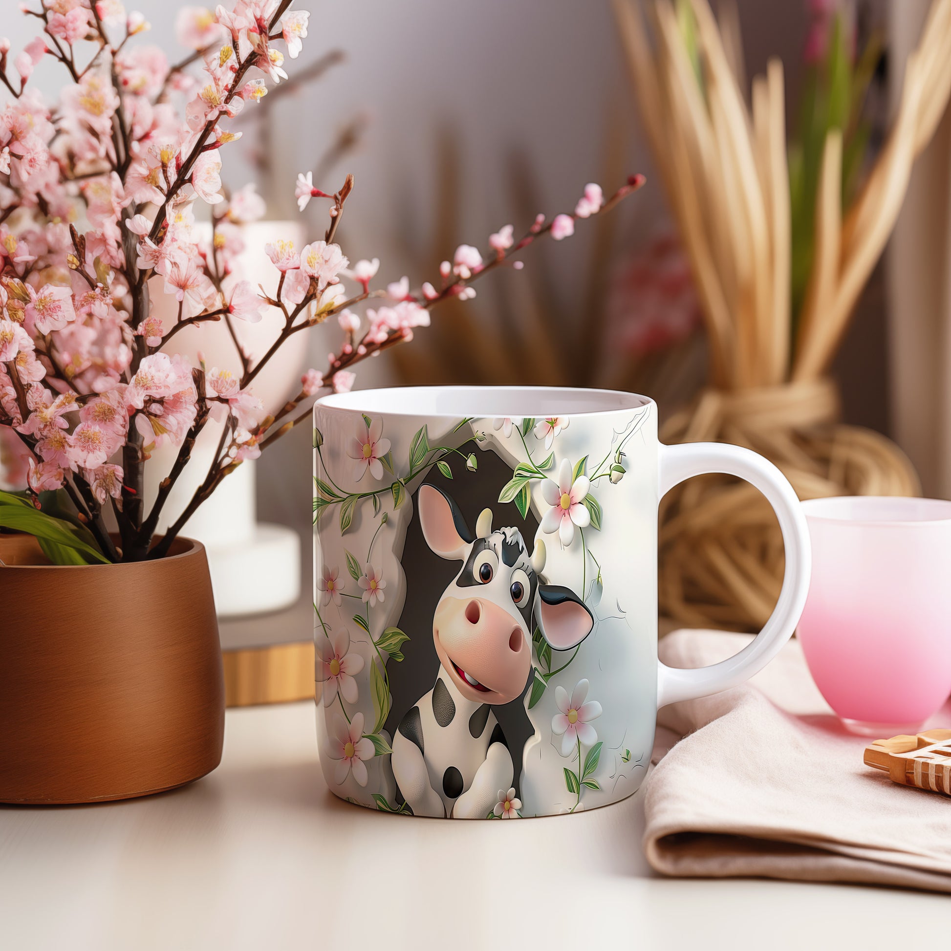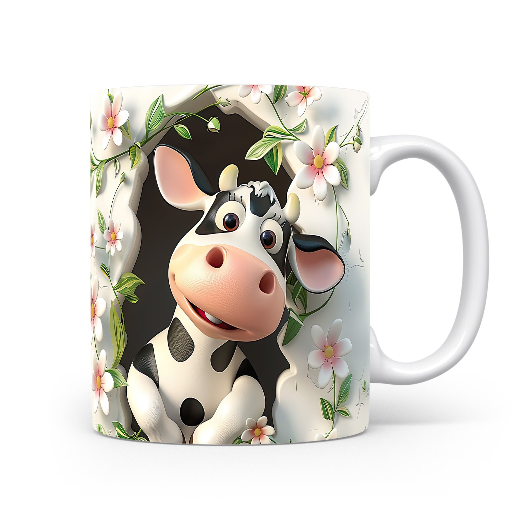 Tento keramický hrnek s motivem usměvavé kravičky a květin je skvělým doplňkem pro každého milovníka zvířat. Je ideální jako dárek pro přátele nebo rodinu, kteří ocení hravý design. Materiál: keramika. Objem: 330 ml. Vhodné do myčky i mikrovlnky. Používání tohoto hrnku vám přinese radost při každém doušku vašeho oblíbeného nápoje.