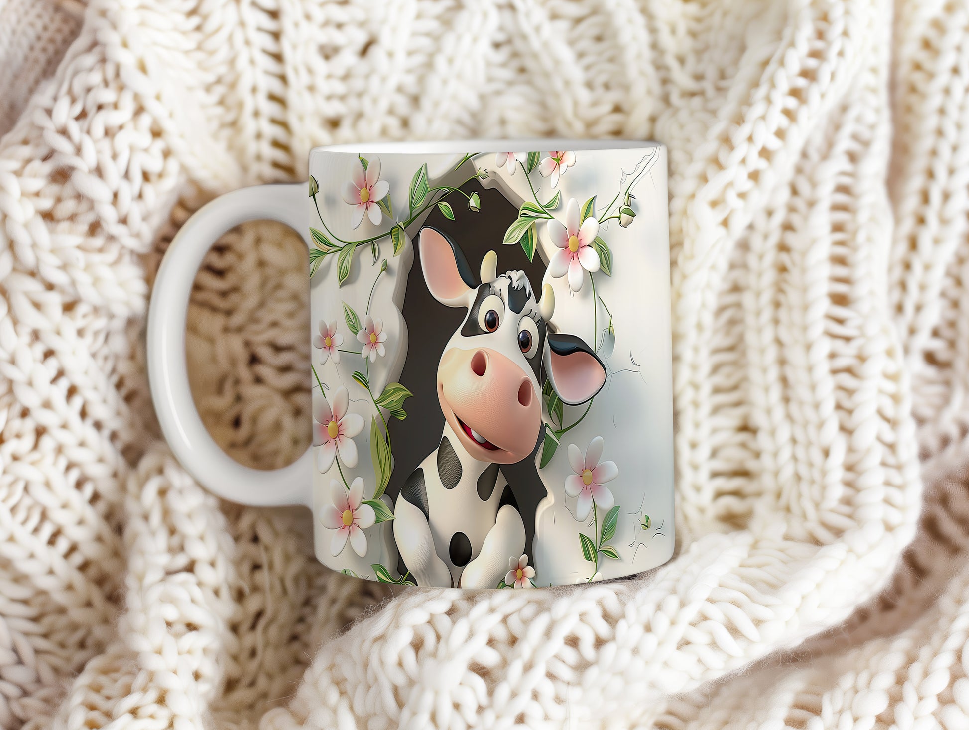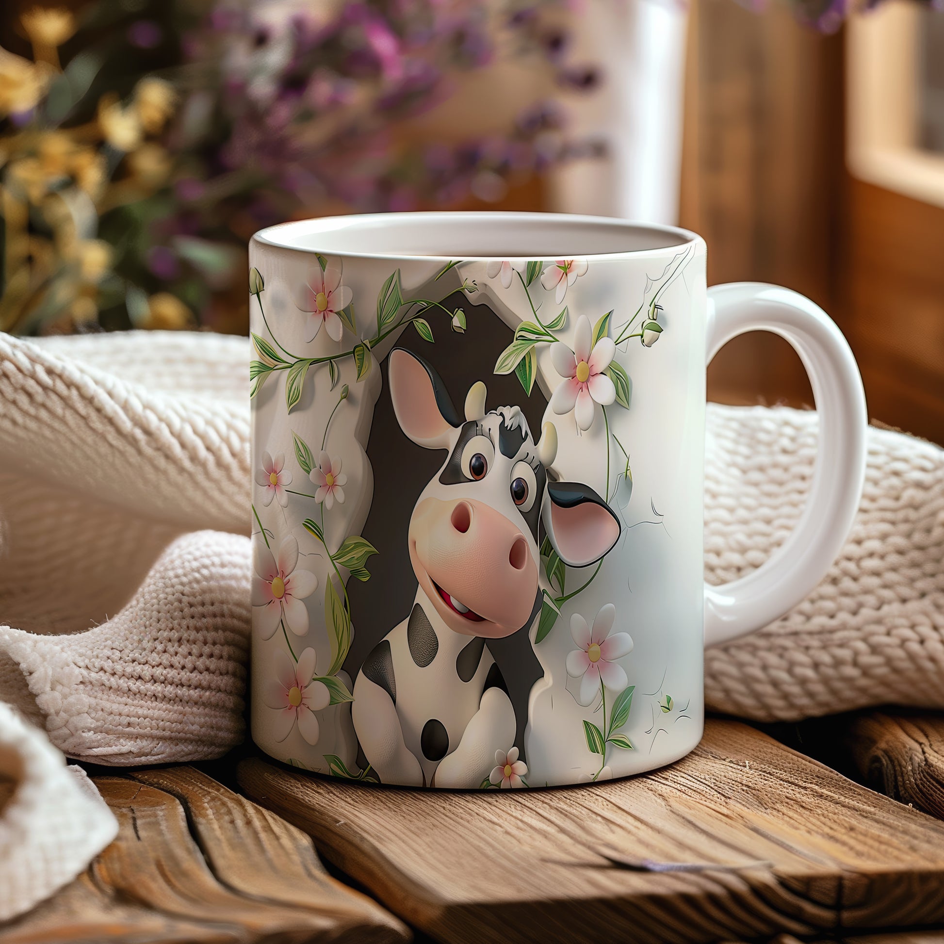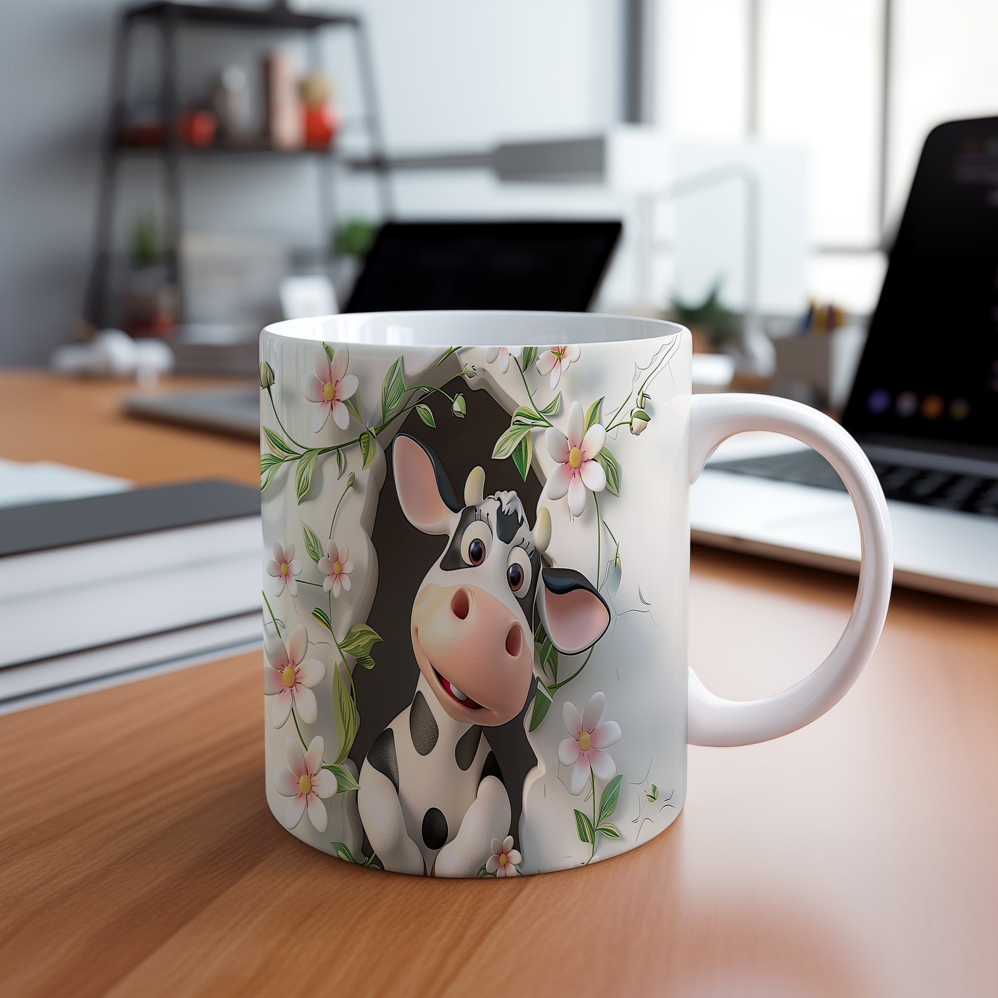 Tento keramický hrnek s motivem usměvavé kravičky a květin je skvělým doplňkem pro každého milovníka zvířat. Je ideální jako dárek pro přátele nebo rodinu, kteří ocení hravý design. Materiál: keramika. Objem: 330 ml. Vhodné do myčky i mikrovlnky. Používání tohoto hrnku vám přinese radost při každém doušku vašeho oblíbeného nápoje.