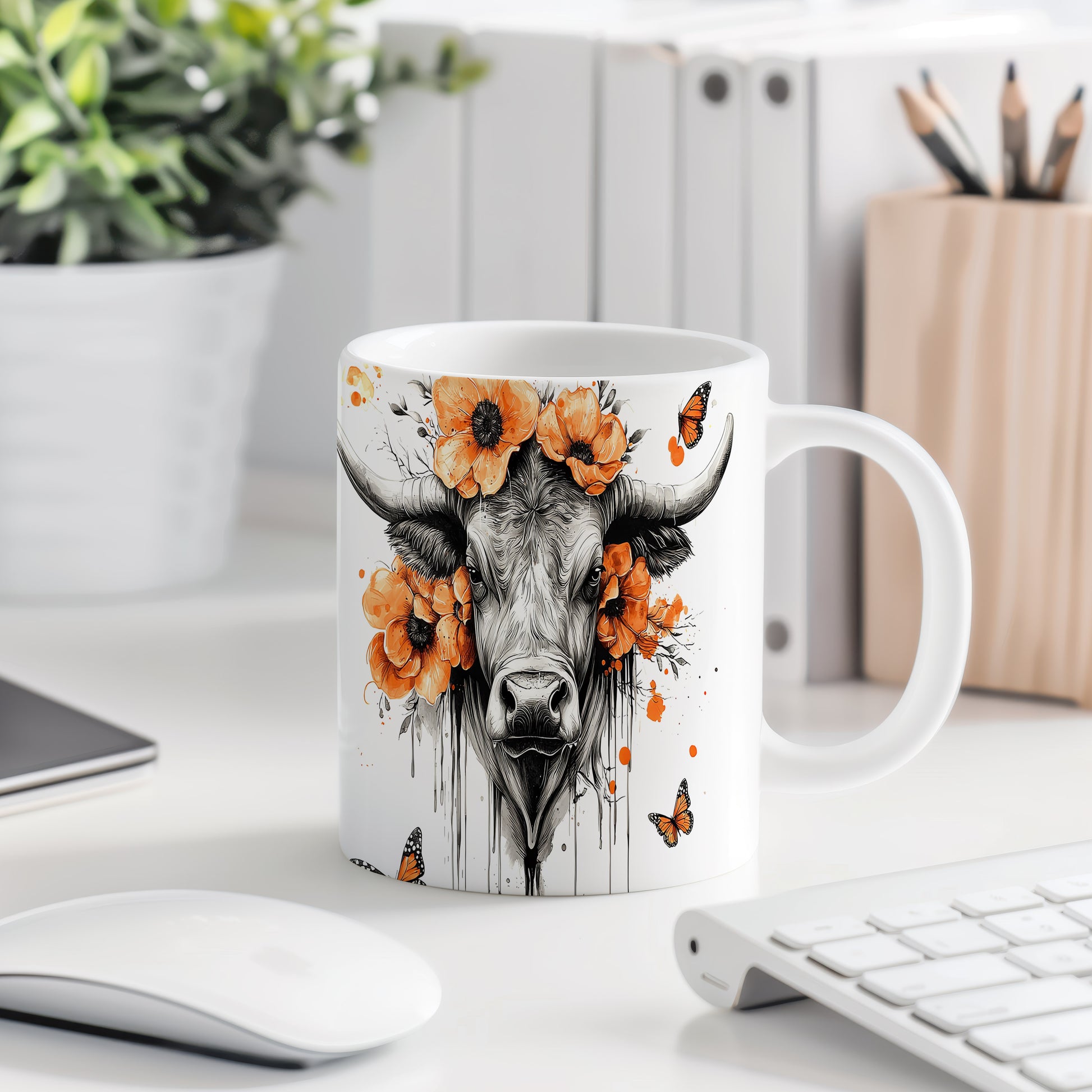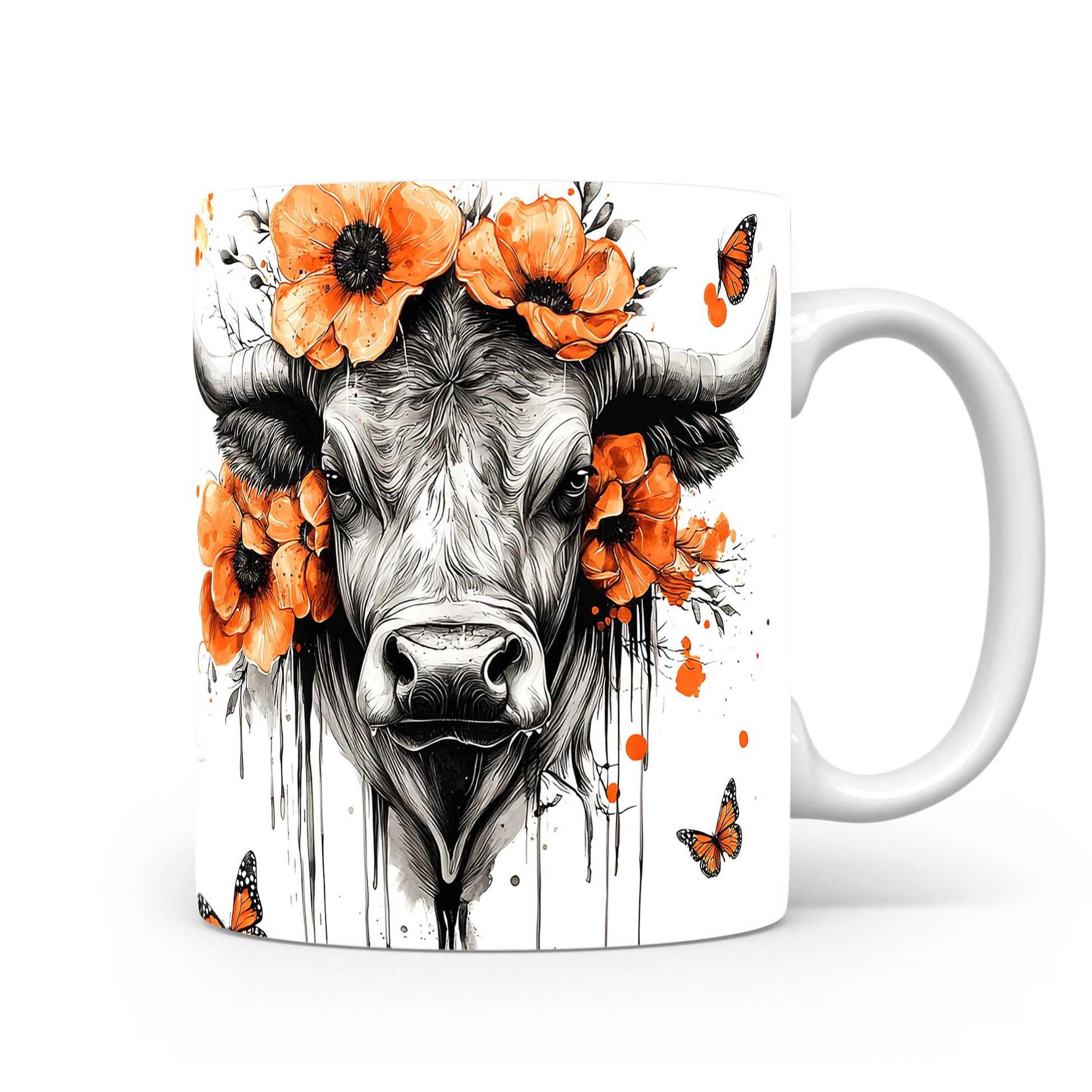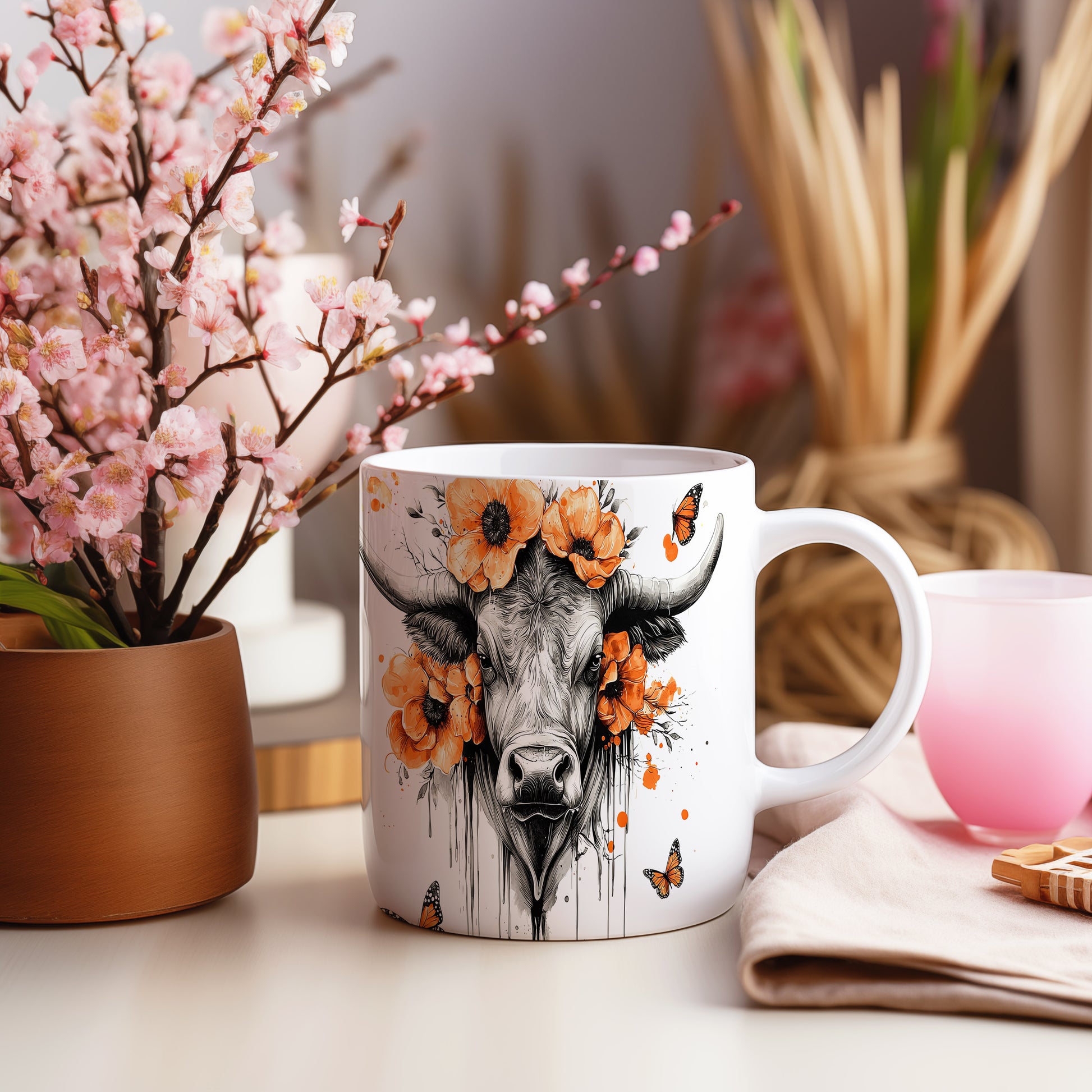 Tento hrnek zobrazuje krávu obklopenou květinami, což vytváří veselou atmosféru. Je ideální pro milovníky přírody a zvířat, skvělý tip na dárek pro přátele nebo rodinu. Materiál: keramika. Objem: 330 ml. Vhodné do myčky i mikrovlnky. Používání tohoto hrnku přináší radost a oživí každodenní pití.