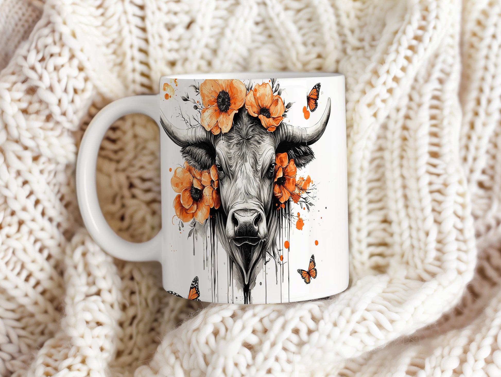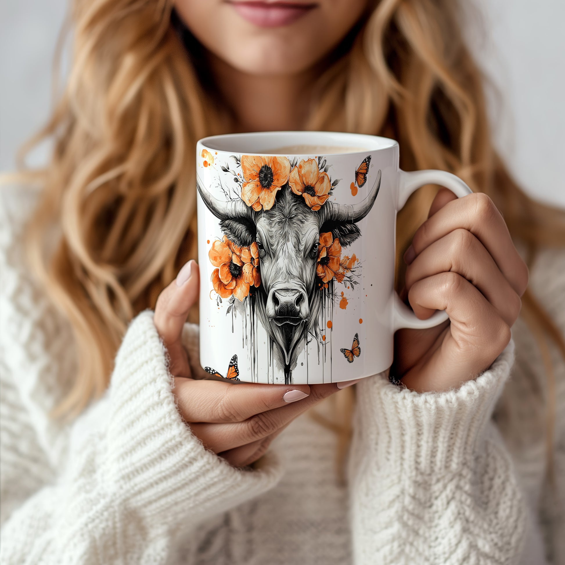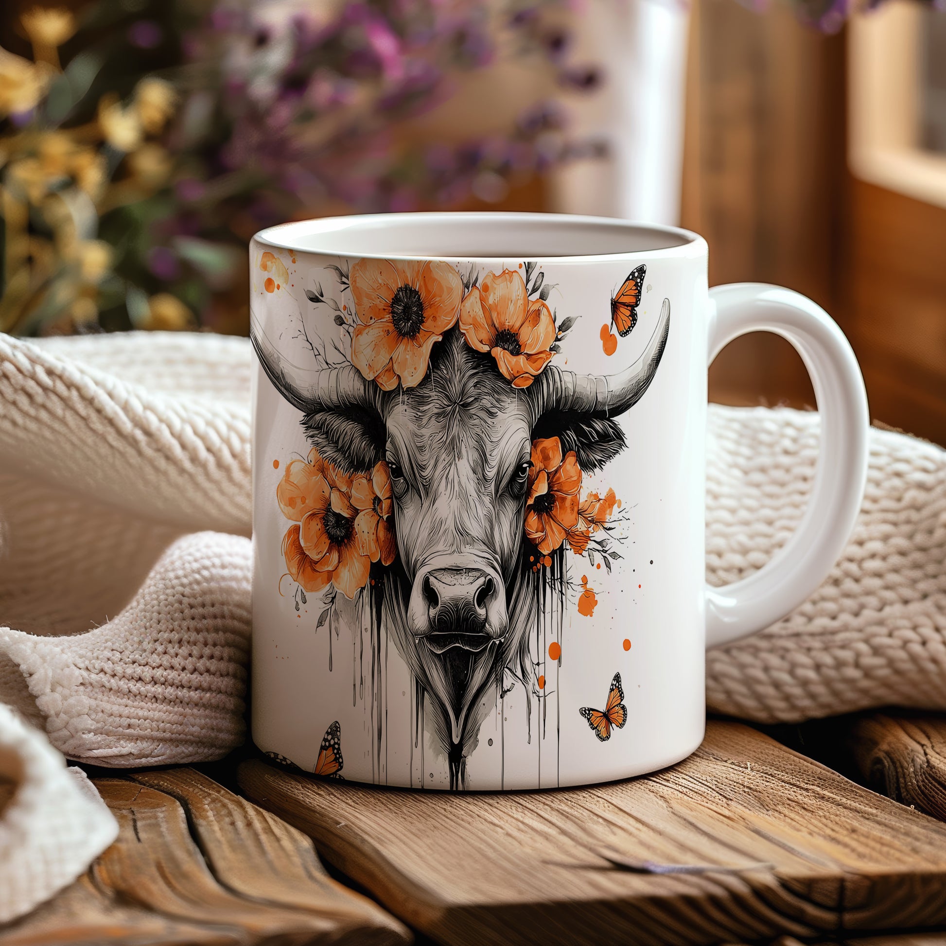 Tento hrnek zobrazuje krávu obklopenou květinami, což vytváří veselou atmosféru. Je ideální pro milovníky přírody a zvířat, skvělý tip na dárek pro přátele nebo rodinu. Materiál: keramika. Objem: 330 ml. Vhodné do myčky i mikrovlnky. Používání tohoto hrnku přináší radost a oživí každodenní pití.