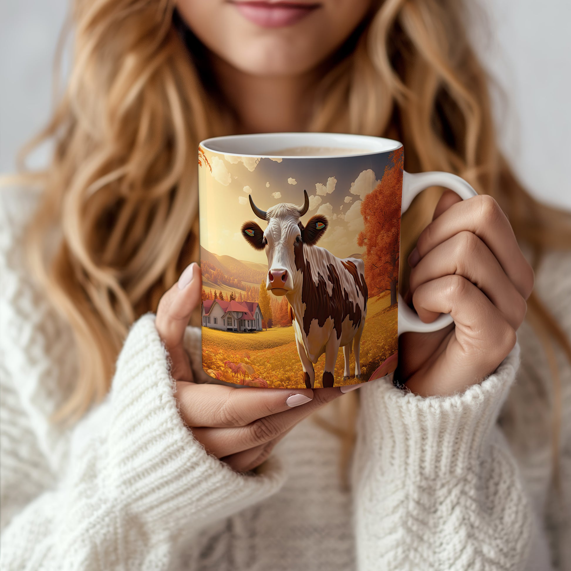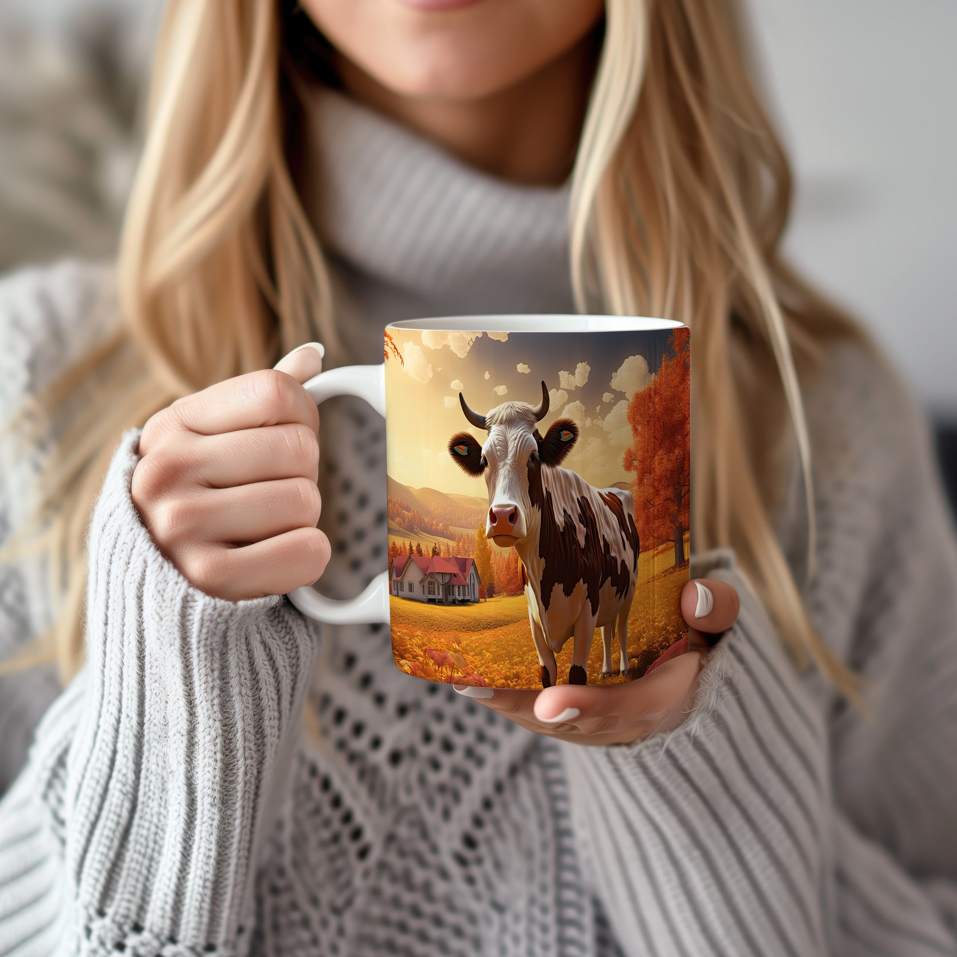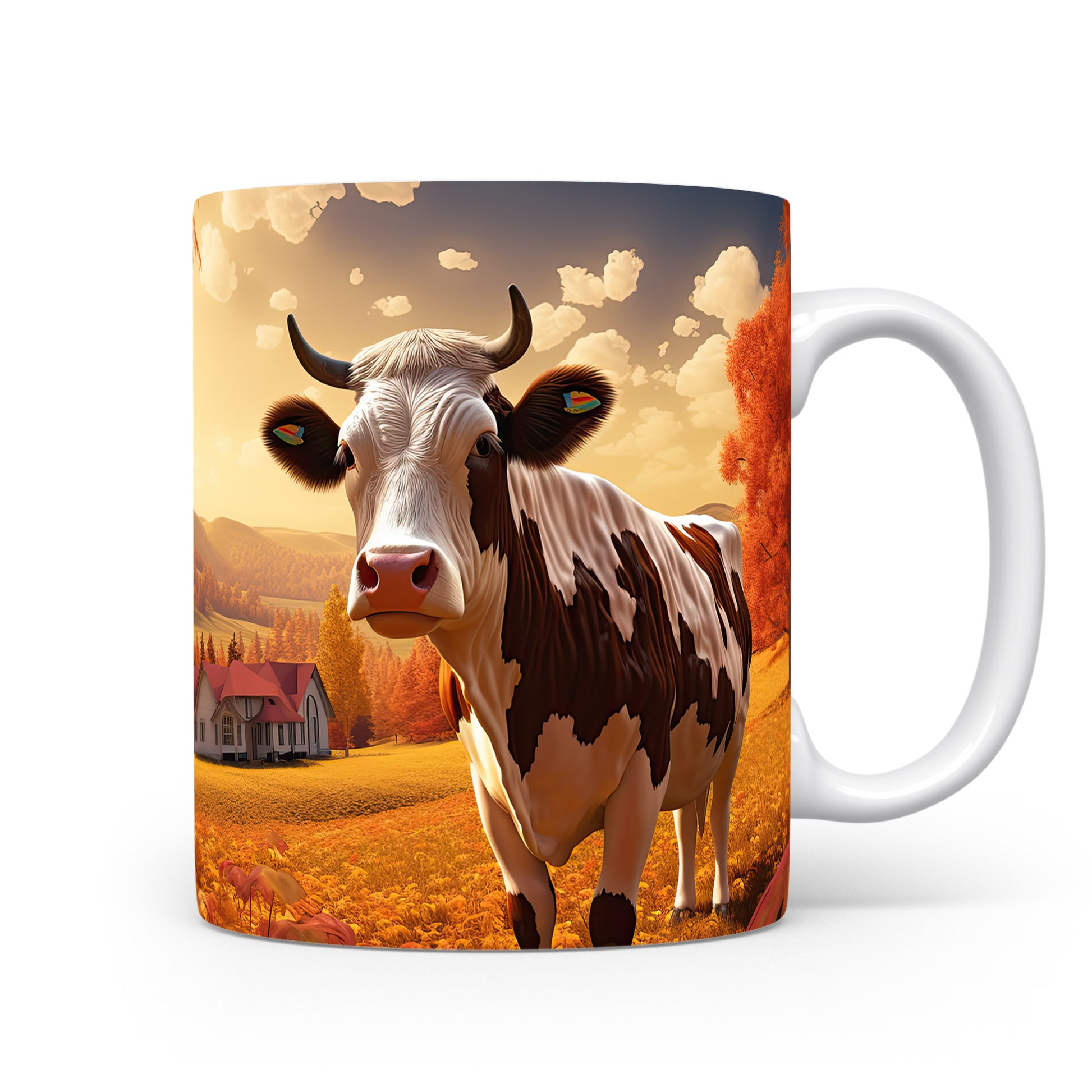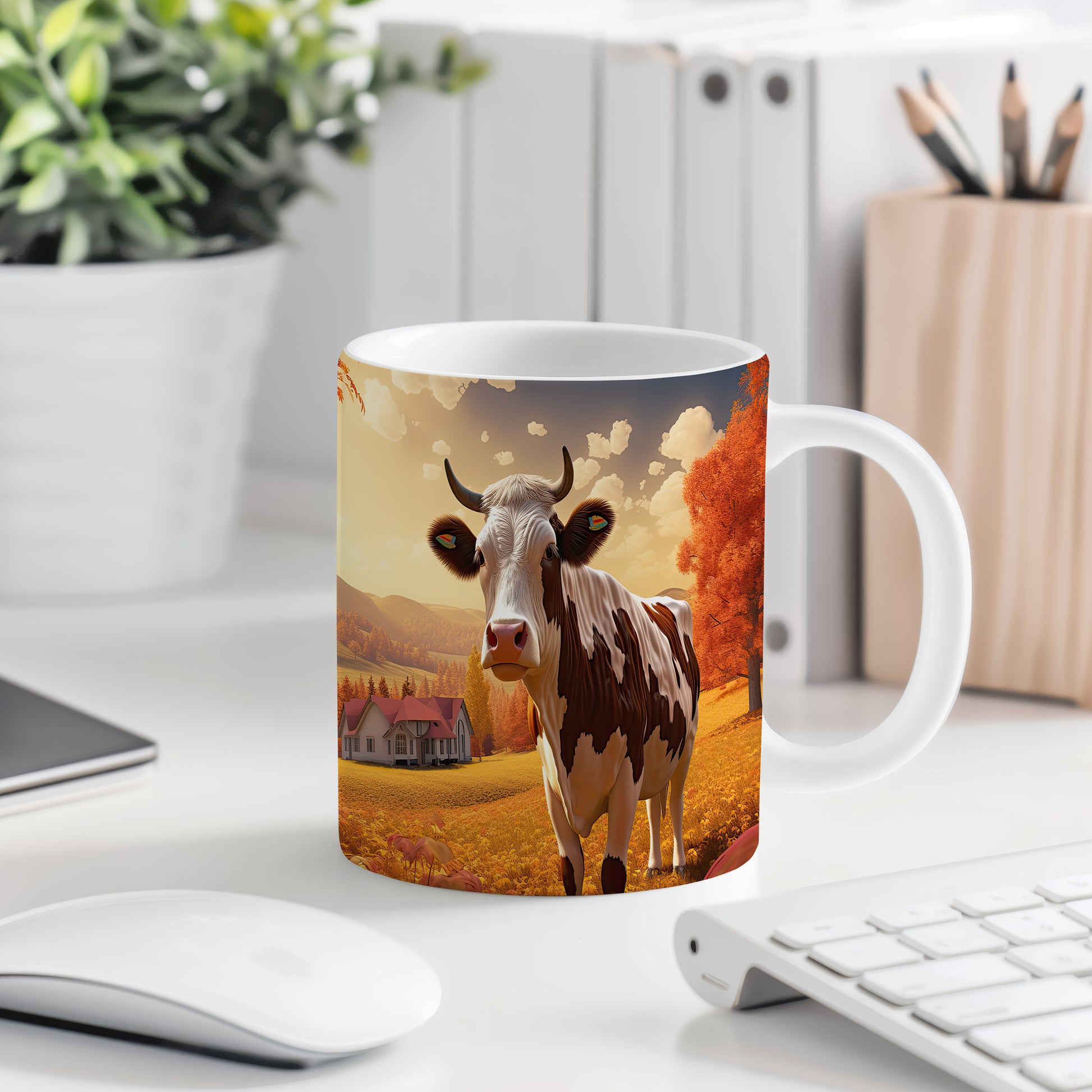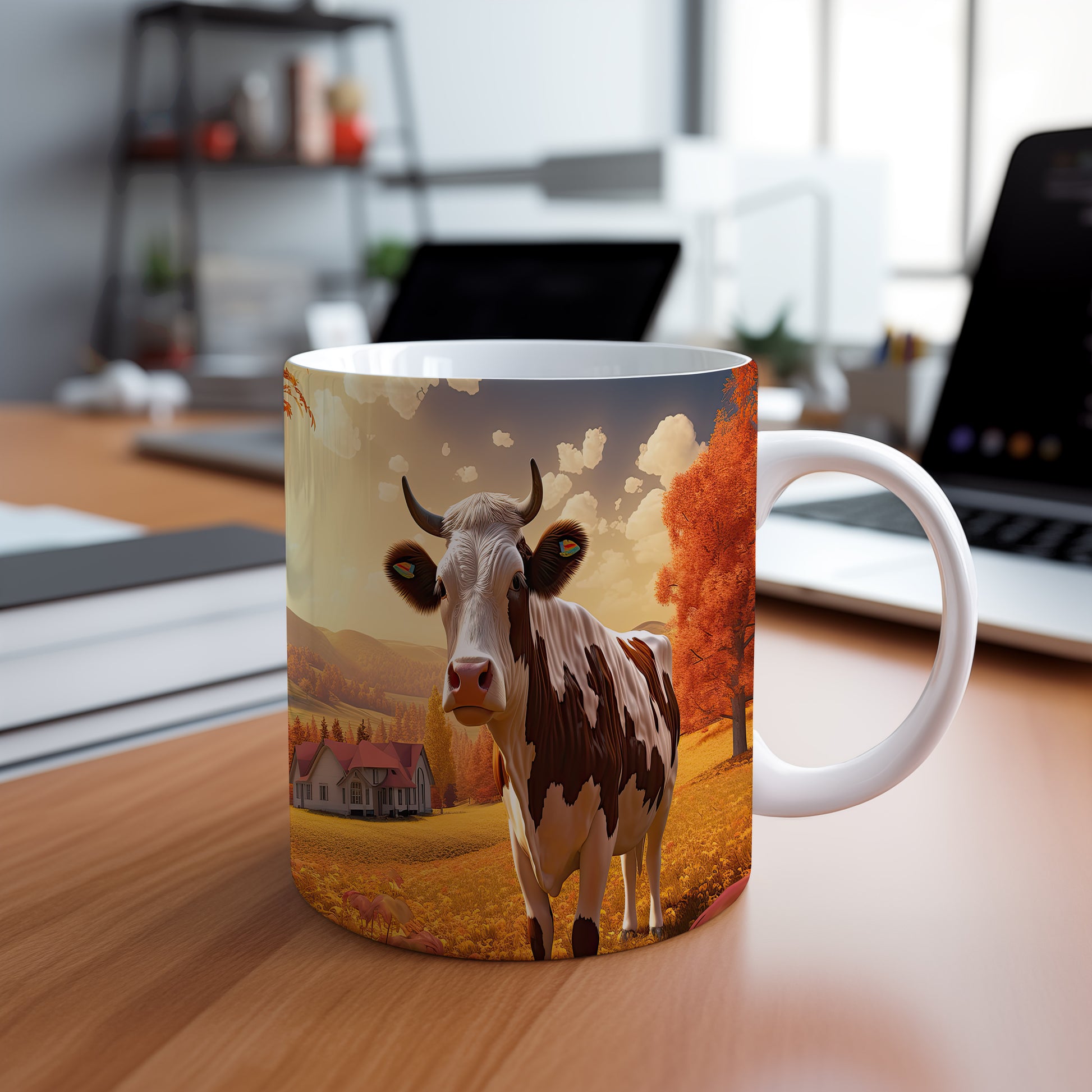 Tento hrnek zobrazuje krávu v malebné podzimní krajině, ideální pro milovníky zvířat a přírody. Skvělý tip na dárek pro přátele nebo rodinu, kteří ocení přírodní motivy. Materiál: keramika. Objem: 330 ml. Vhodné do myčky i mikrovlnky. Používání tohoto hrnku přináší radost z každého doušku.