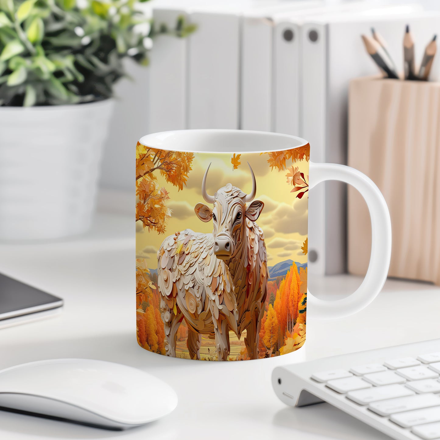 Hrnek s krásnou stylizovanou krávou v podzimních barvách, která přináší přírodní atmosféru. Tento hrnek je ideální pro milovníky zvířat a podzimní přírody, skvělý tip na dárek pro přátele nebo rodinu. Materiál: keramika. Objem: 330 ml. Vhodné do myčky i mikrovlnky. Užívejte si kávu nebo čaj s tímto originálním hrnkem, který potěší každého.