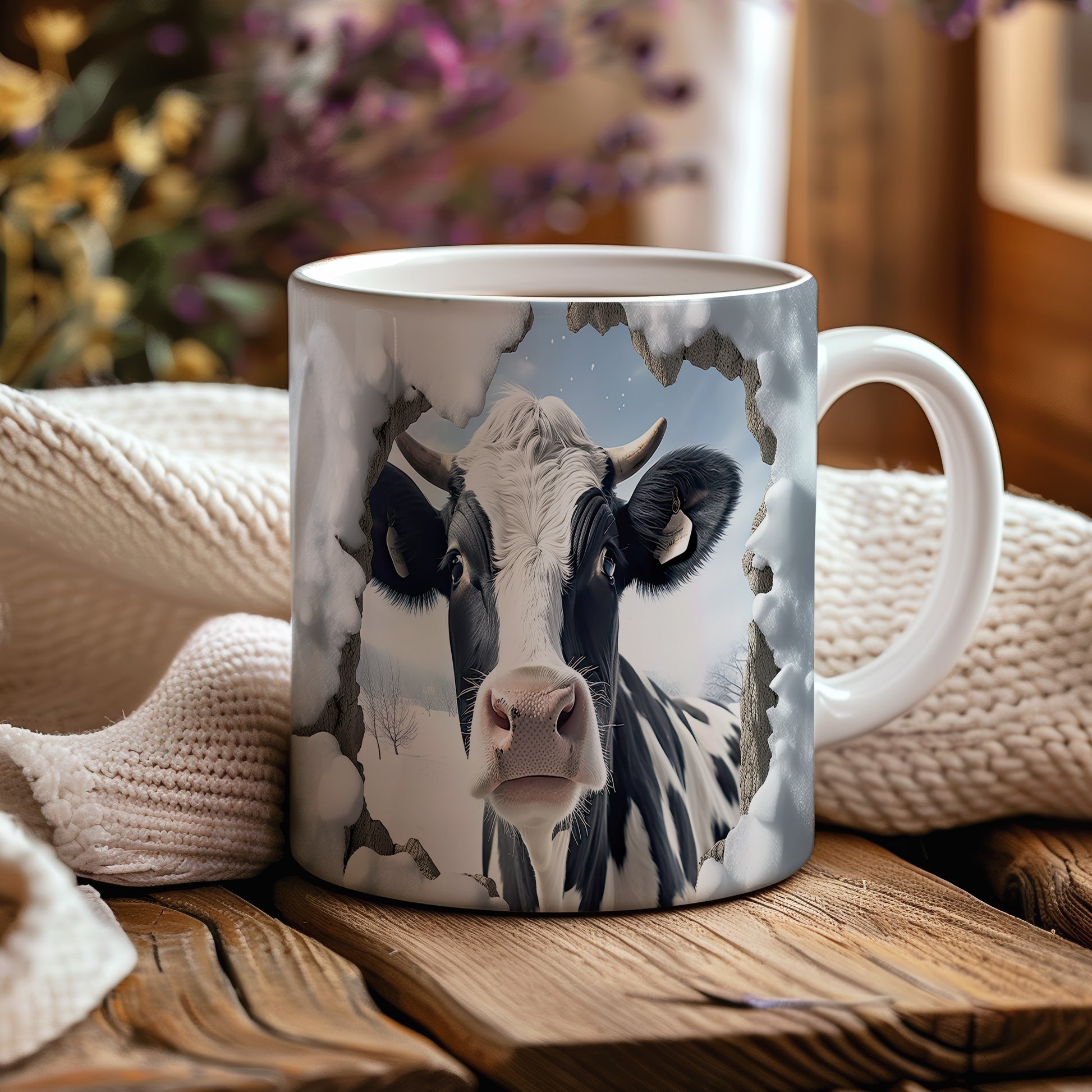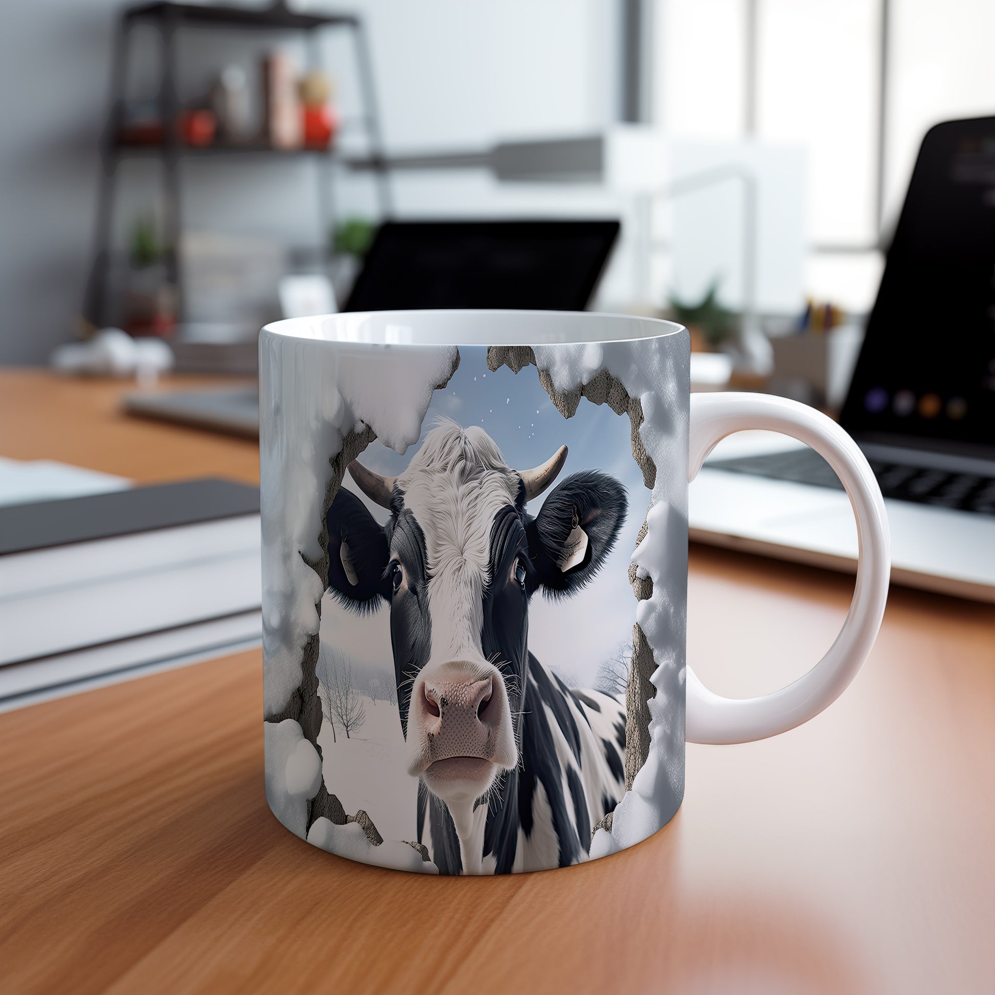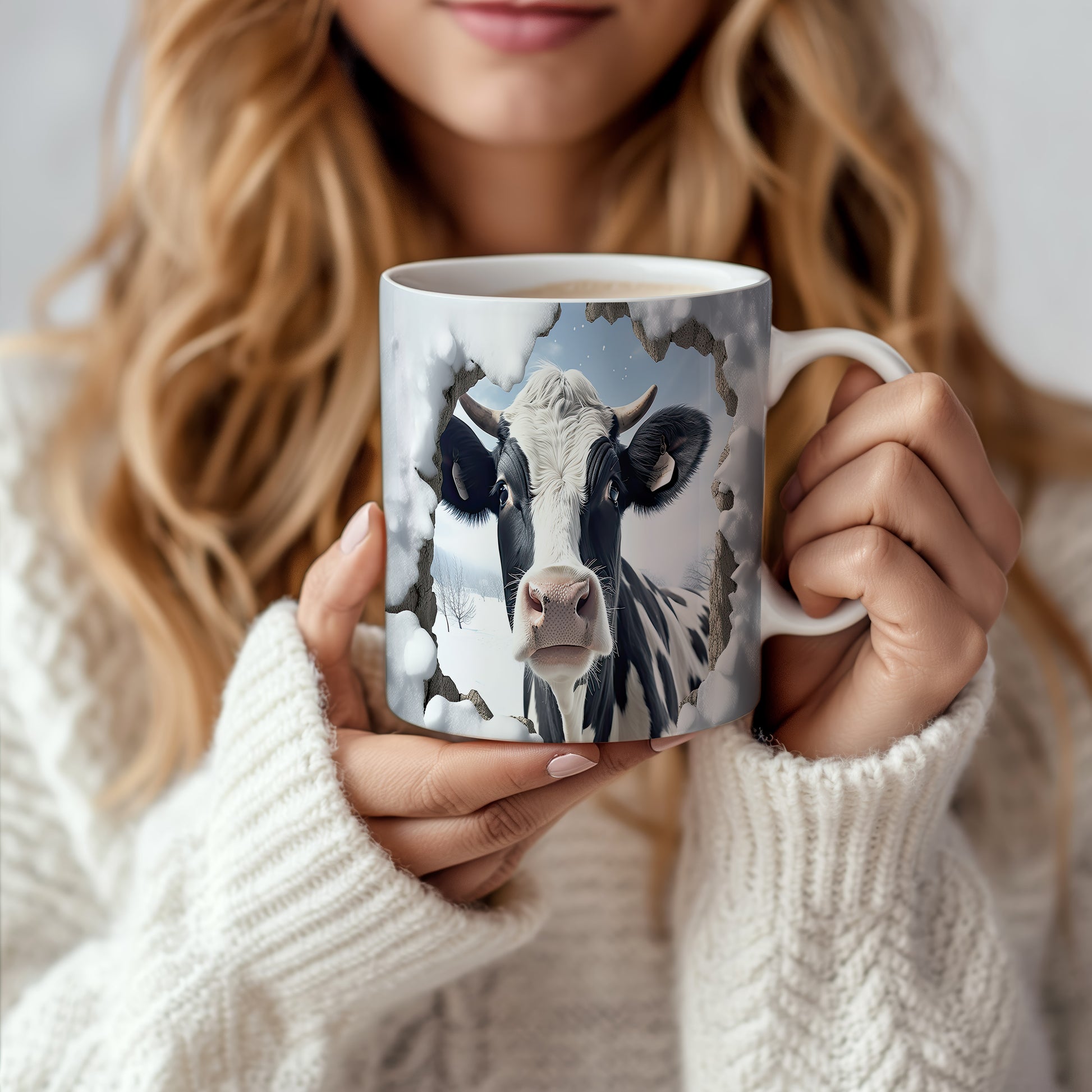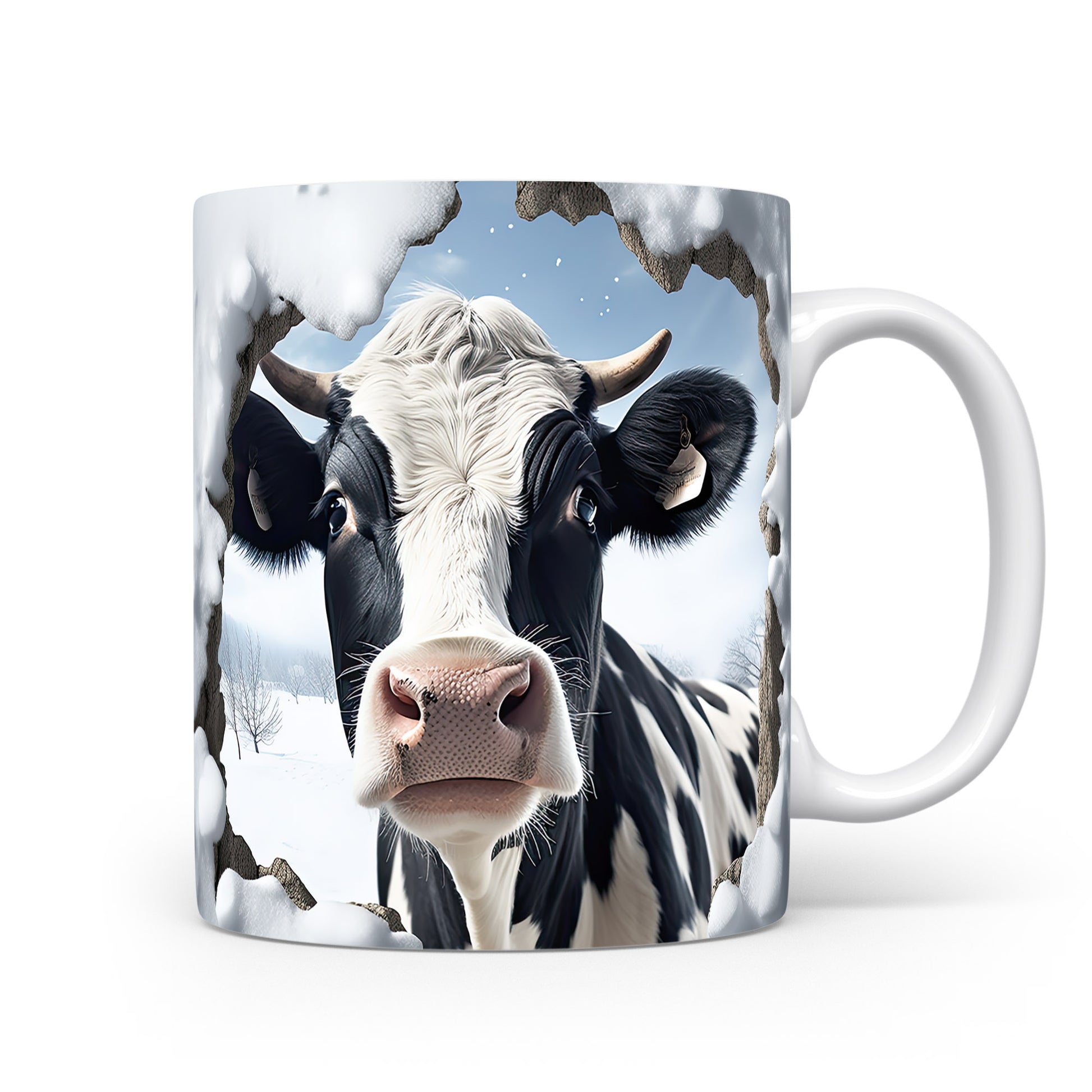 Tento originální hrnek zobrazuje realistickou krávu v zimní krajině, ideální pro milovníky zvířat a venkovského stylu. Skvělý tip na dárek pro přátele nebo rodinu, kteří ocení přírodu. Materiál: keramika. Objem: 330 ml. Vhodné do myčky i mikrovlnky. Používání tohoto hrnku přináší radost z každého doušku.